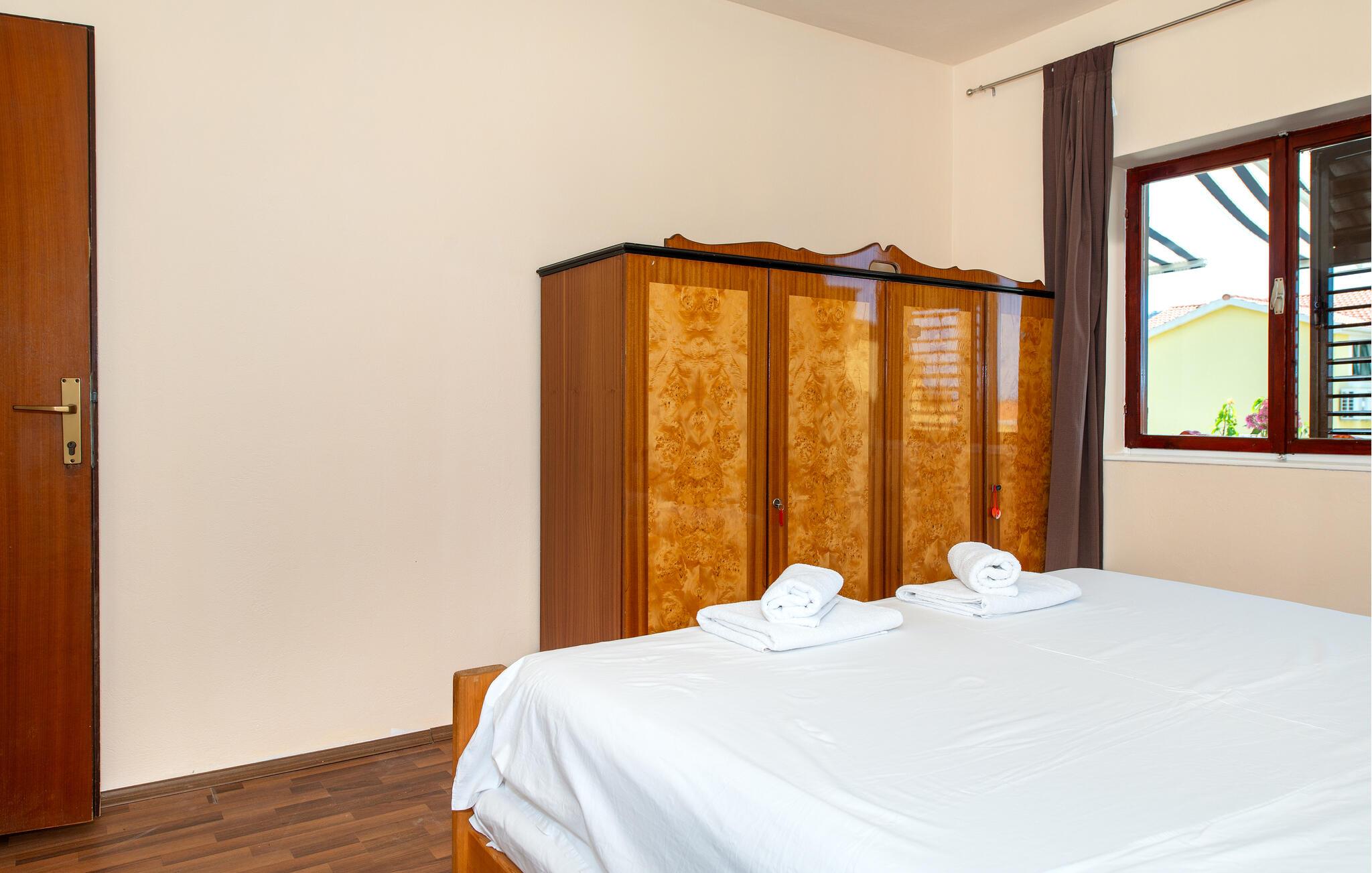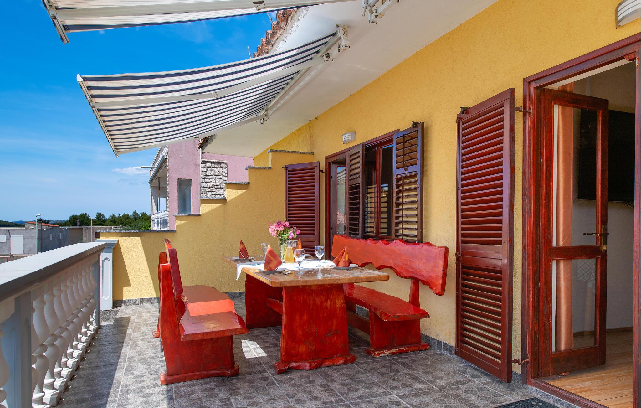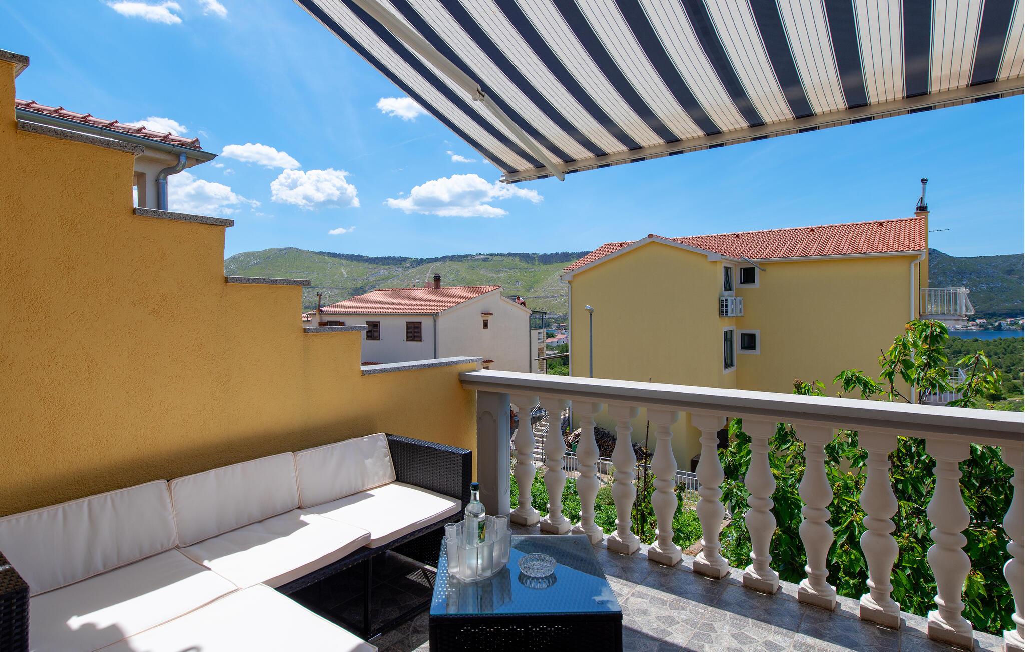 Diese einfach und funktionell eingerichtete Ferienwohnung befindet sich im Ort Grebaštica, einem schönen Touristenort mit geschützter Bucht, zwischen Šibenik i Primošten. Es ist die einzige Ferienwohnung im Angebot dieses Einfamilienhauses. Von der komfortablen Terrasse bietet sich eine schöne Aussicht auf das Meer, während Sport- und Naturliebhaber auf den Wander- und Radwegen die Umgebung erkunden können. Der kleine Ferienort ist die richtige Wahl für Ruhesuchende, wobei interessante Ausflugsziele die nahe gelegenen Nationalparks Krka und Kornati sind.