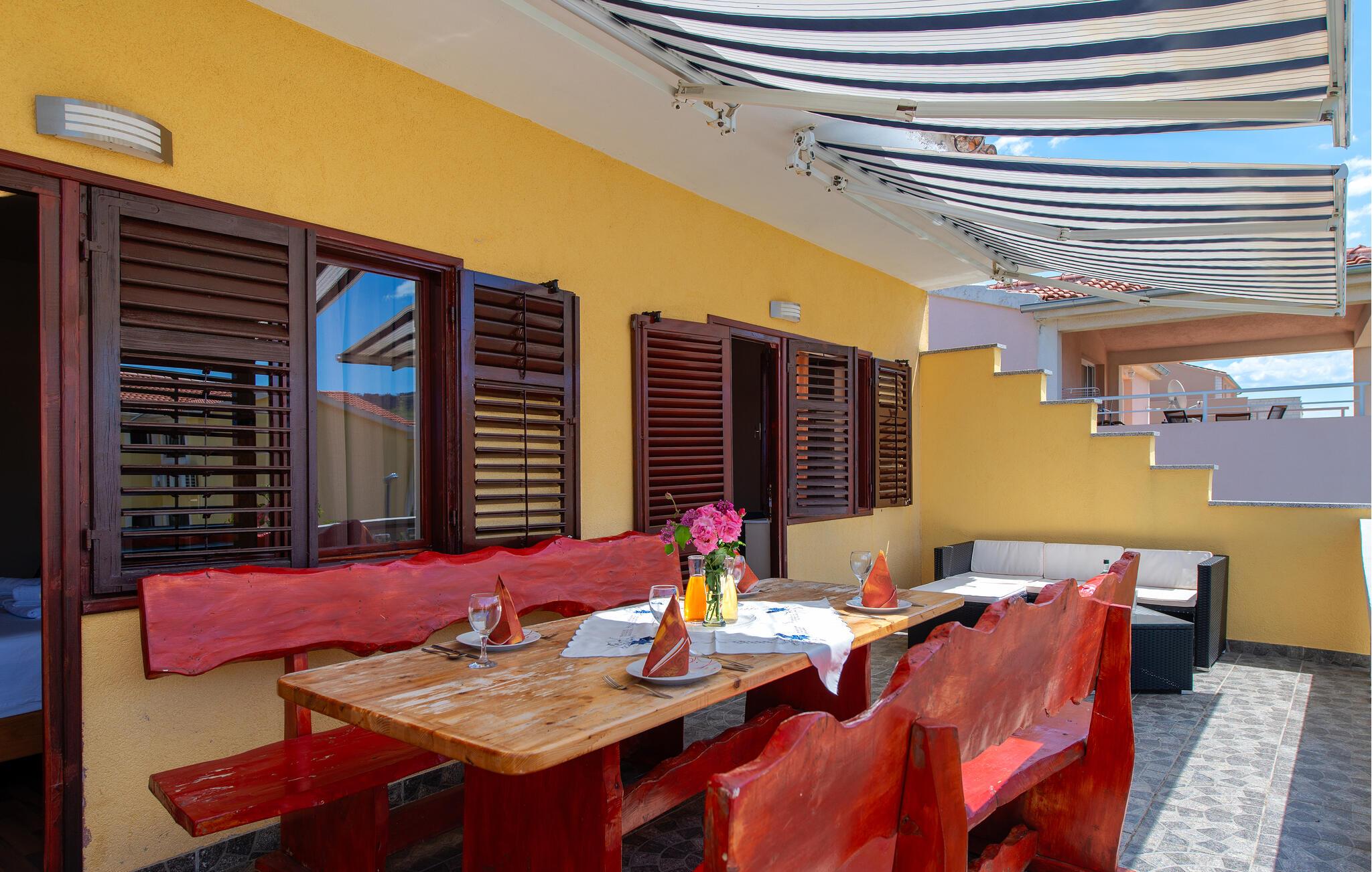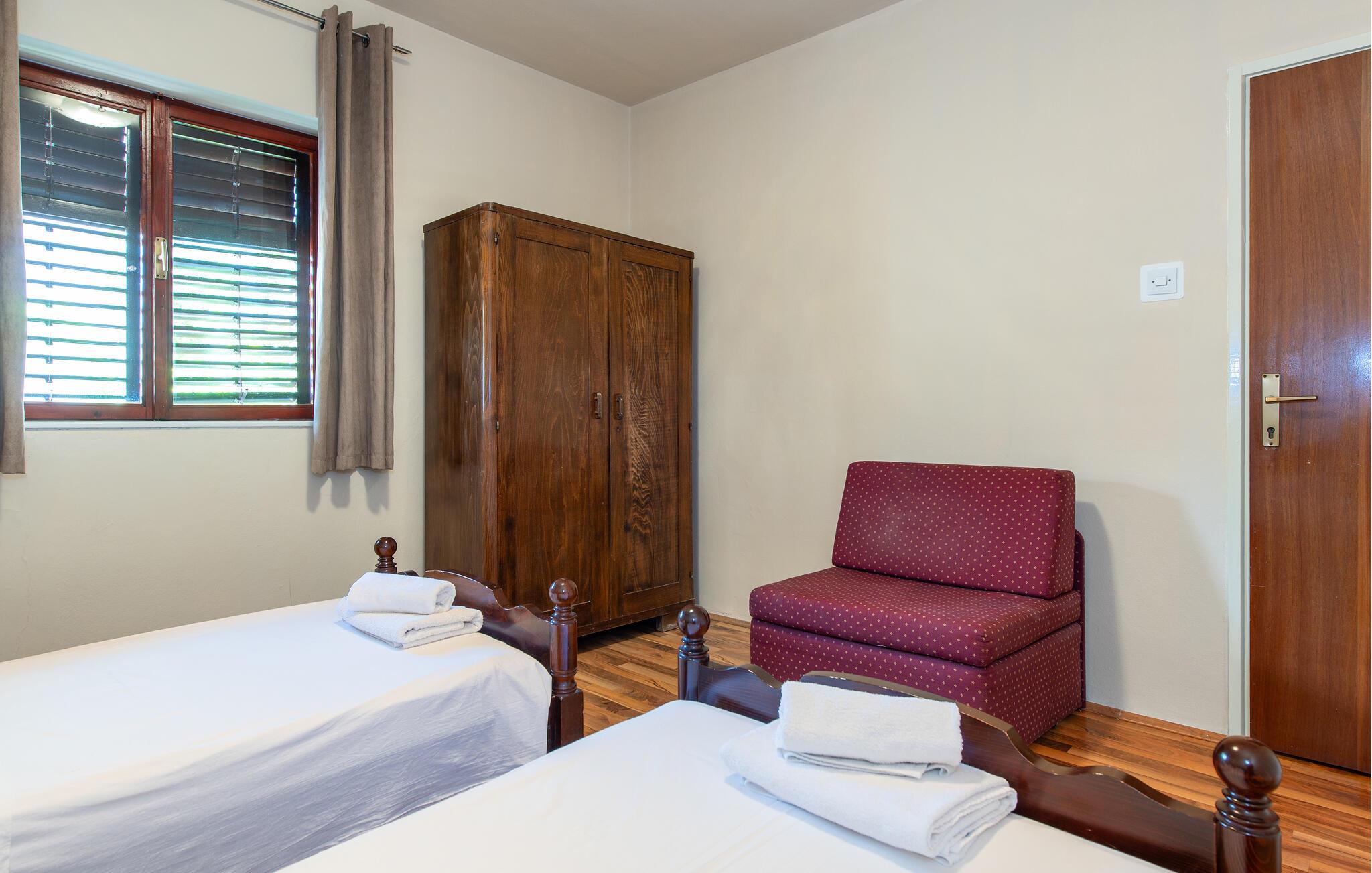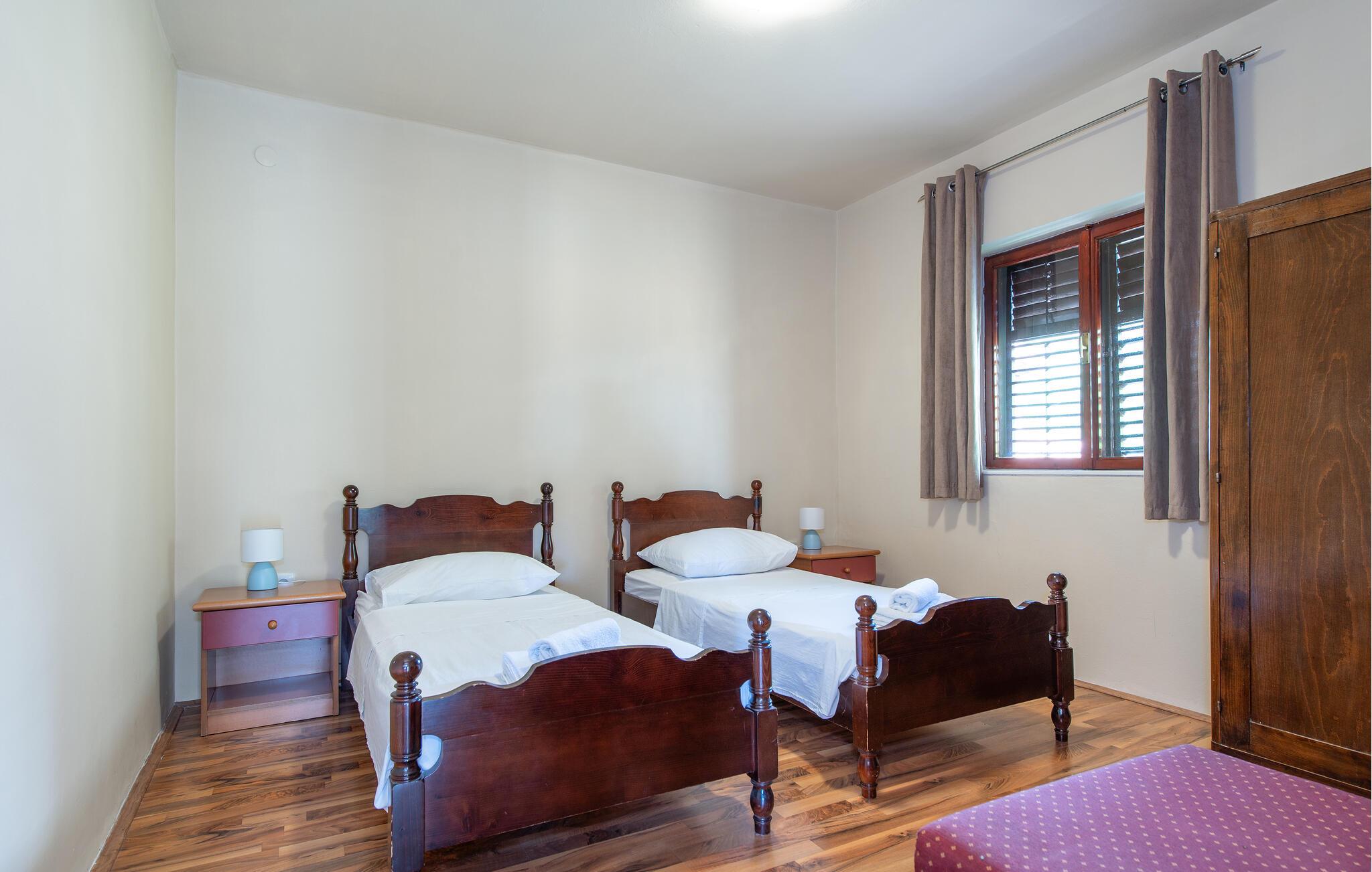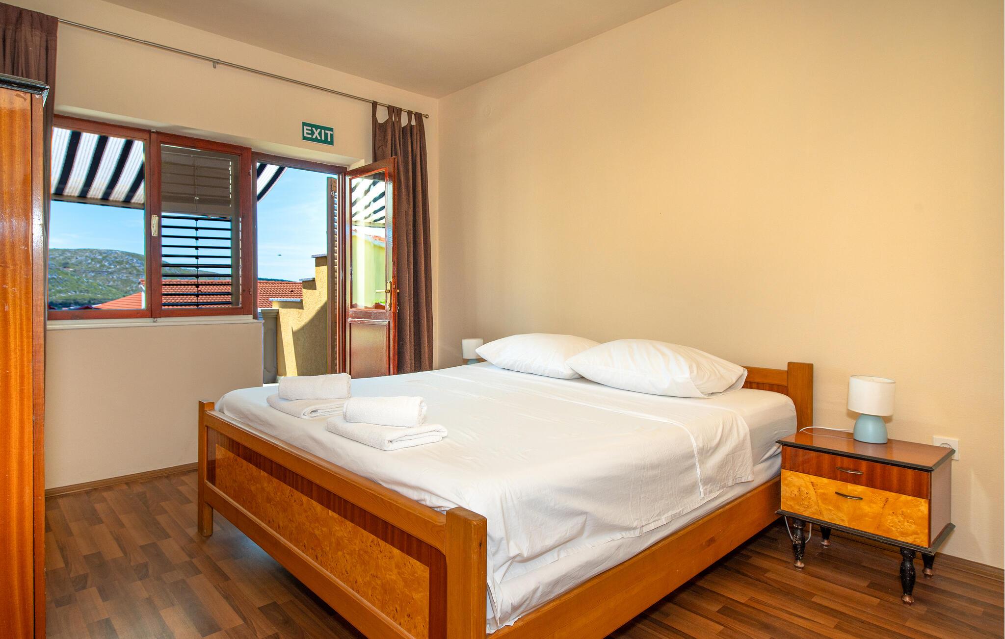 Diese einfach und funktionell eingerichtete Ferienwohnung befindet sich im Ort Grebaštica, einem schönen Touristenort mit geschützter Bucht, zwischen Šibenik i Primošten. Es ist die einzige Ferienwohnung im Angebot dieses Einfamilienhauses. Von der komfortablen Terrasse bietet sich eine schöne Aussicht auf das Meer, während Sport- und Naturliebhaber auf den Wander- und Radwegen die Umgebung erkunden können. Der kleine Ferienort ist die richtige Wahl für Ruhesuchende, wobei interessante Ausflugsziele die nahe gelegenen Nationalparks Krka und Kornati sind.