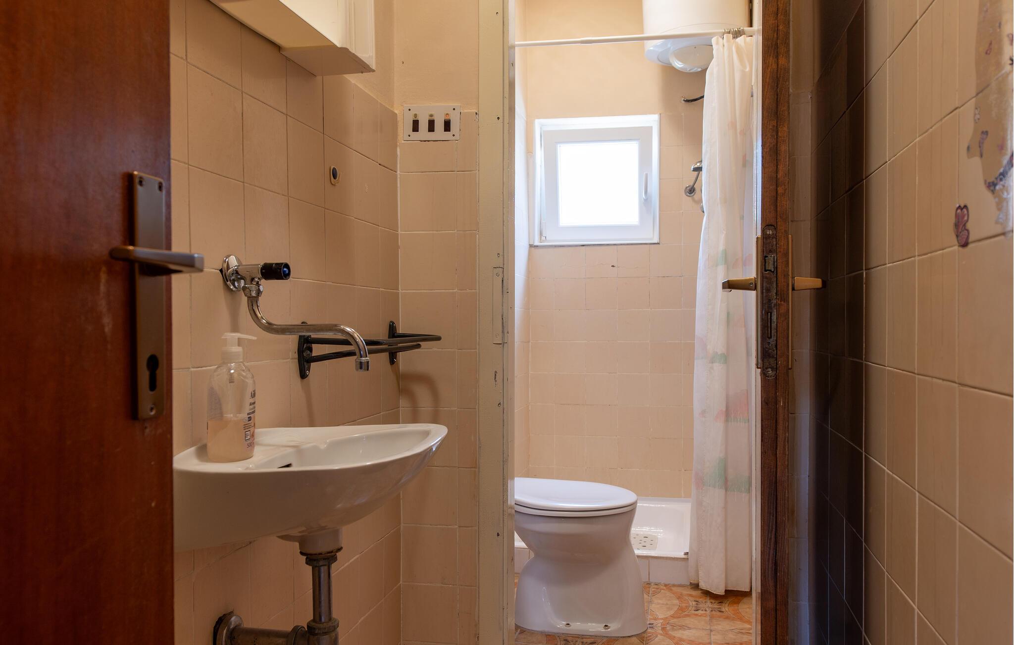 - WC mit warmem und kaltem Wasser, Dusche