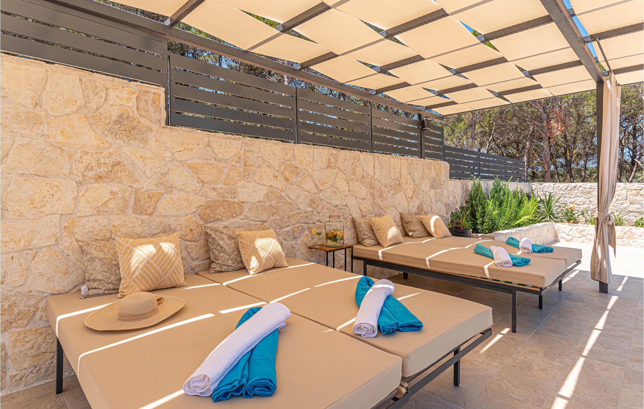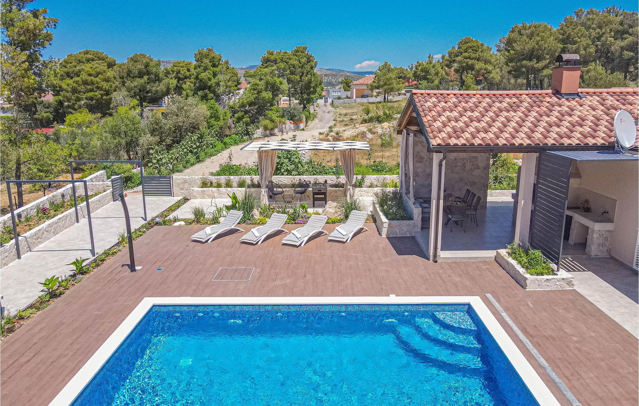 Das modern eingerichtete Haus mit viel Platz für die größere Gruppe, die riesige Terrasse mit integriertem Pool, auf der Sie in der Sonne liegen und Ihren Kindern beim Plantschen zusehen können. Die überdachten Terrassen, auf denen Sie sich von der Sonne erholen und Ihre Mahlzeiten genießen können. Der gemauerte Grill, der Ihnen abends Wärme und Licht spendet während Sie darauf warten, dass Ihr Essen fertig gegrillt ist.