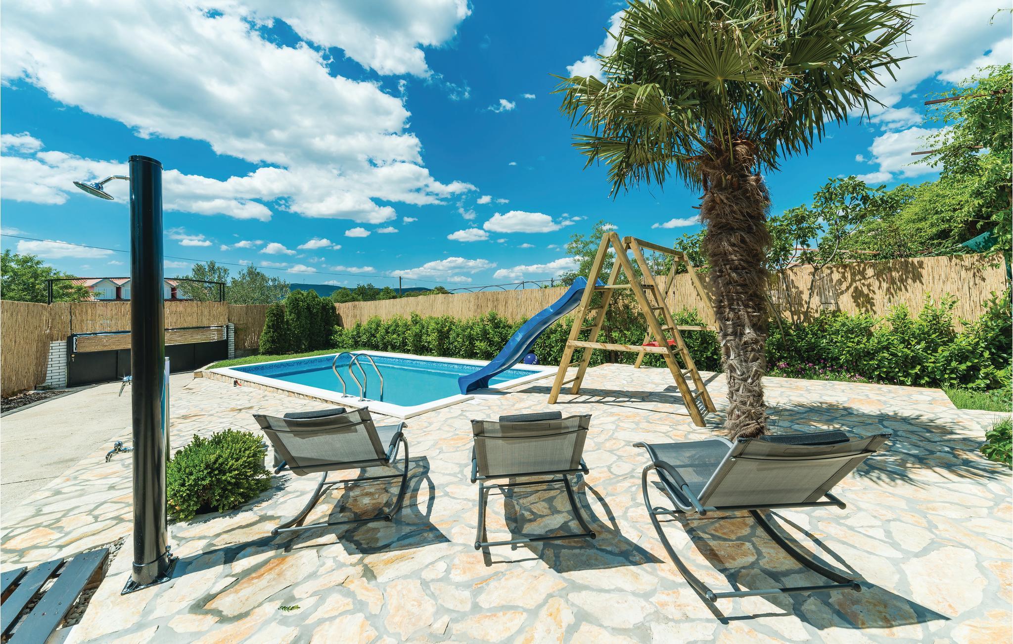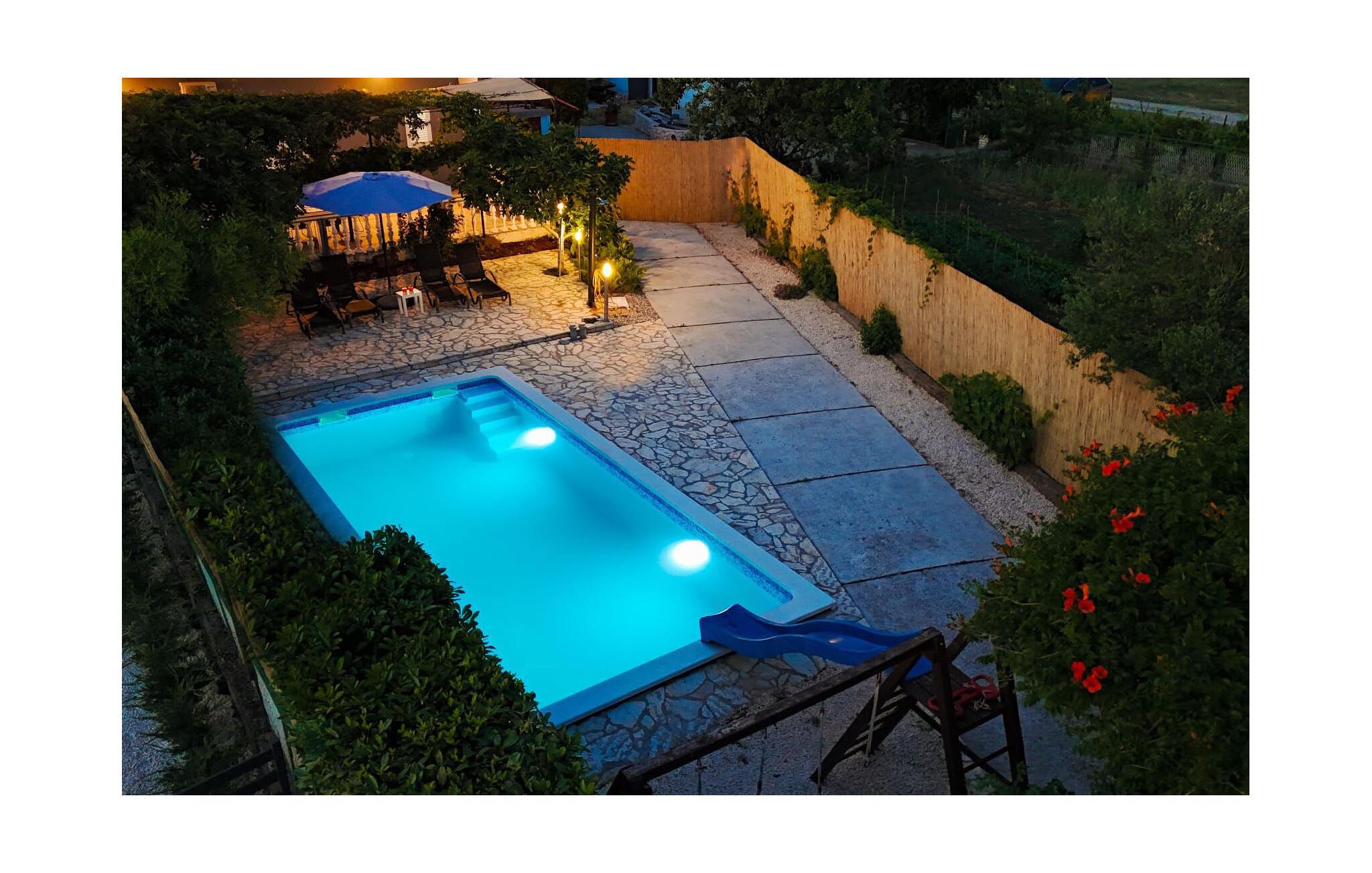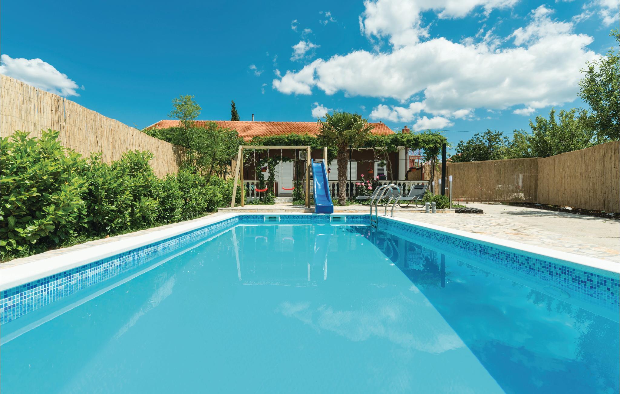Dieses schöne und funktionell eingerichtete Doppelhaus- Ferienwohnung befindet sich in dem kleinen und ruhigen Ort Konjevrate. In den heißen Sommermonaten erfrischen Sie sich im Swimmingpool. Zur Verfügung steht ein Grill, wo Sie leckere Gerichte zubereiten, während sich Ihre Kinder die Zeit auf der Schaukel oder auf der Rutsche vertreiben. Verpassen Sie nicht, einen Ausflug zum nahegelegenen Nationalpark Krka zu unternehmen. Sehenswert ist außerdem die ca. 17 km entfernt gelegene Stadt Šibenik mit ihren vielen historischen und kulturellen Sehenswürdigkeiten und dem UNESCO-Welterbe (Kathedrale Sv. Jakov).