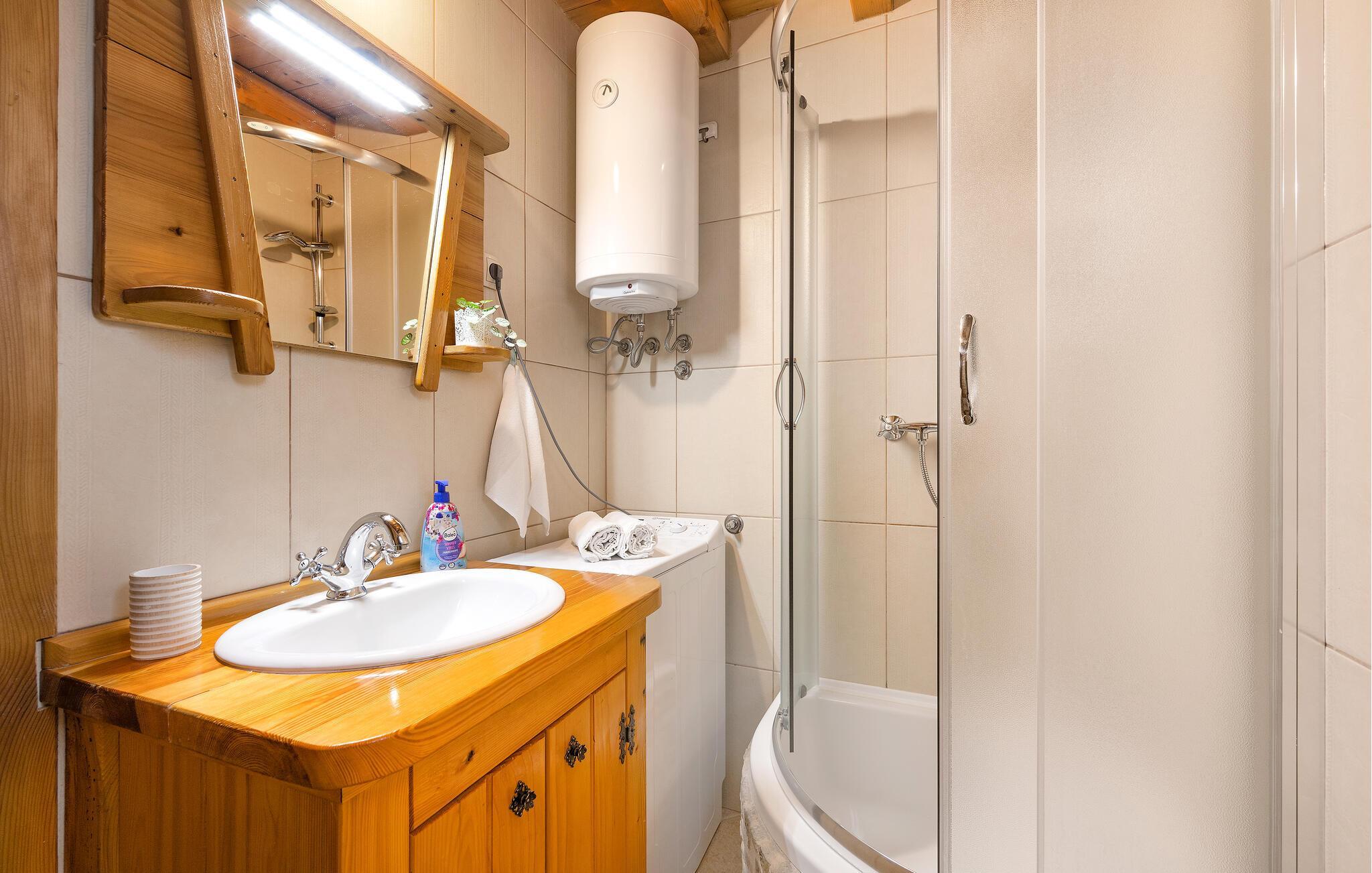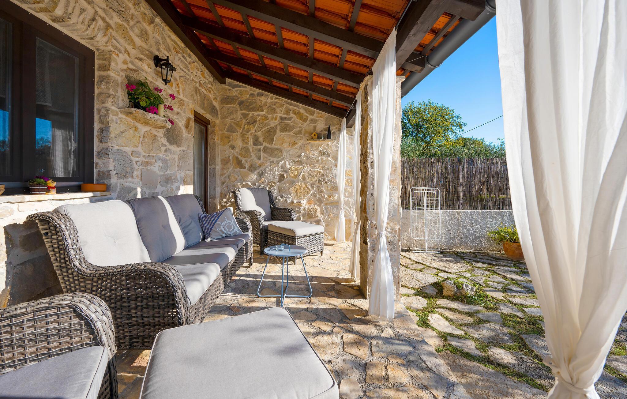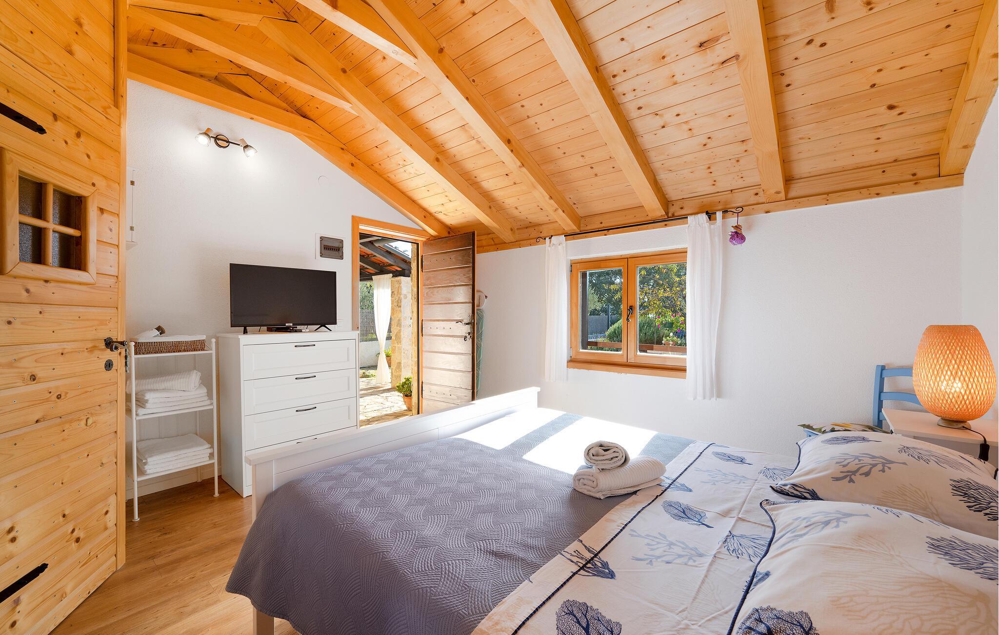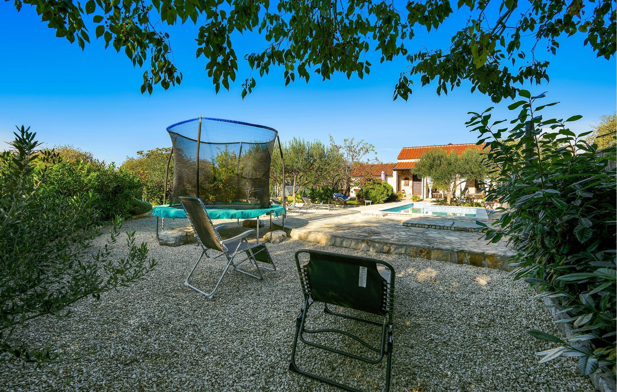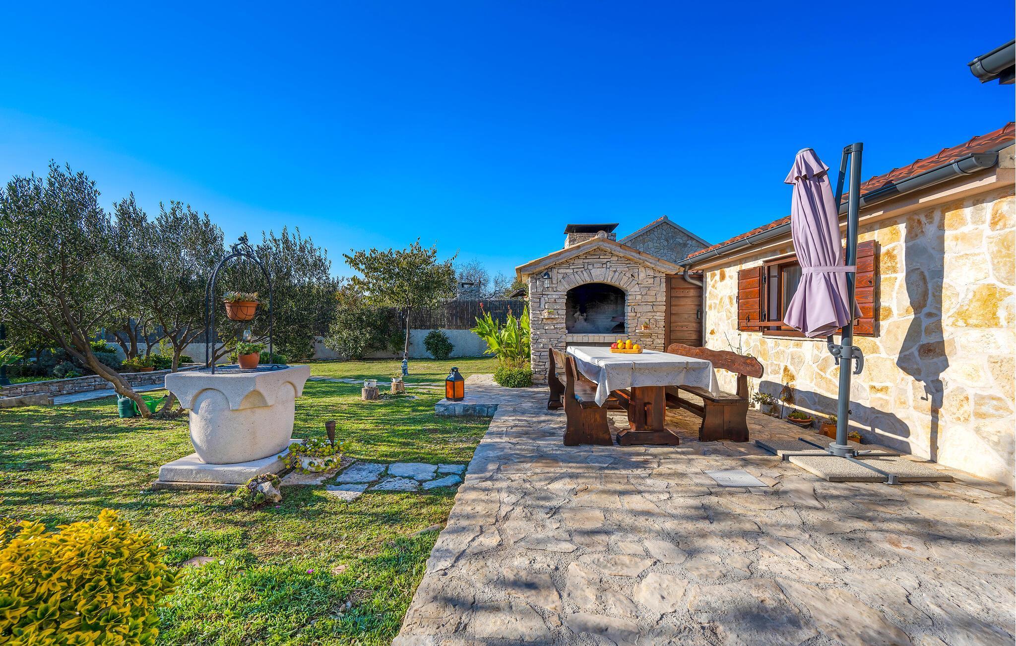 Dieses charmante Ferienhaus aus Stein befindet sich in einem kleinen, ruhigen Dorf in der Nähe von Šibenik, im Krka Nationalpark.Die Galerie ist über eine steile Treppe erreichbar und das Schlafzimmer mit Bad hat einen separaten Eingang auf der überdachten Terrasse. Sie können angenehme Sommermomente am Pool verbringen oder sich mit den Annehmlichkeiten für Kinder vergnügen. Machen Sie einen gemütlichen Spaziergang zu den wunderschönen Krka Wasserfällen, die nicht weit vom Ferienhaus entfernt sind. Es gibt auch die historische Stadt Skradin und das antike Scardona, ein hübscher Ort mit einem reichhaltigen gastronomischen Angebot. Der erste Strand und das Meer sind ca. 10 km entfernt.