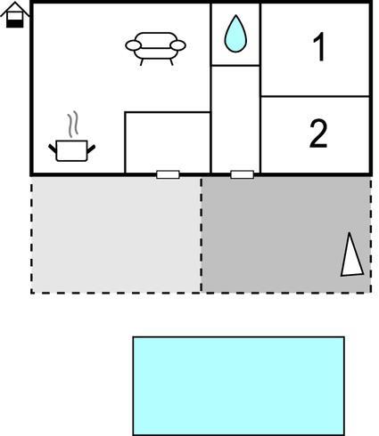 Badezimmer (nr. 2) - WC. Warmes und kaltes Wasser. Dusche
