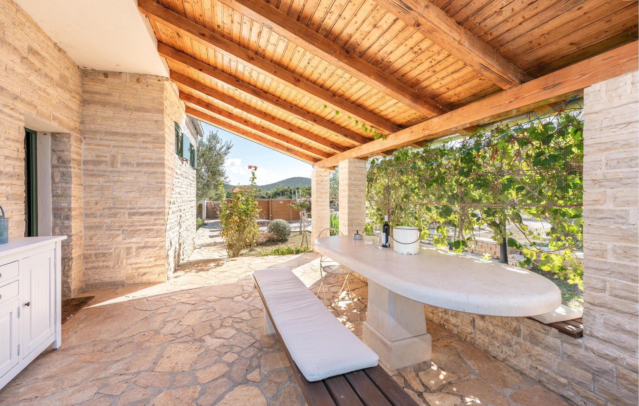Starten Sie Ihren Tag in Ihrem Ferienhaus am See Vransko Jezero mit einem gemütlichen Frühstück auf der überdachten Terrasse, umgeben von Bäumen und frischer Luft. Der Blick auf die umliegende Landschaft und den See ist einfach sagenhaft und lädt dazu ein, diese Momente in aller Ruhe zu genießen. Planen Sie Ihre Tagesaktivitäten bei einer Tasse Kaffee, während Sie die friedliche Atmosphäre auf sich wirken lassen. Das Ferienhaus selbst ist charmant im rustikalen Stil gestaltet und bietet eine einladende Kombination aus traditionellem Komfort und modernem Flair. Im hellen Wohnzimmer mit gemütlicher Sitzecke können Sie entspannte Stunden verbringen. Hier finden Sie auch einen Essbereich, der Platz für gemeinsame Mahlzeiten mit Familie oder Freunden bietet.