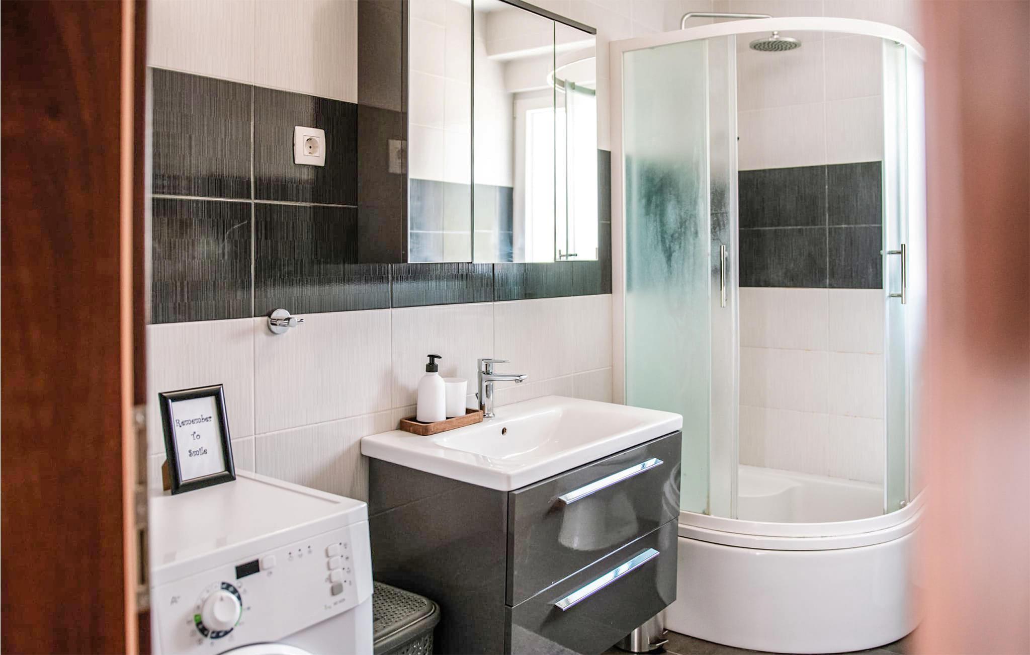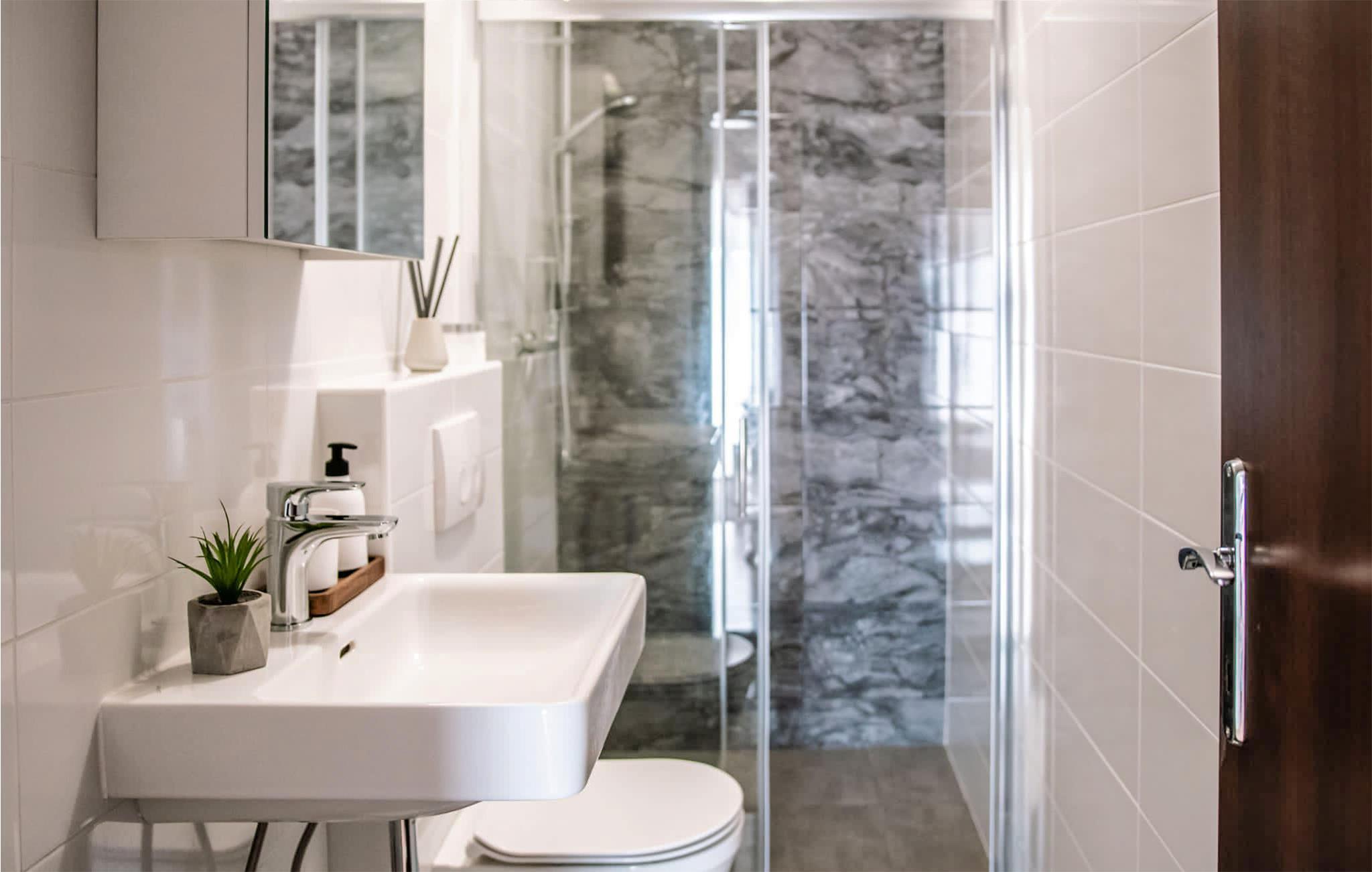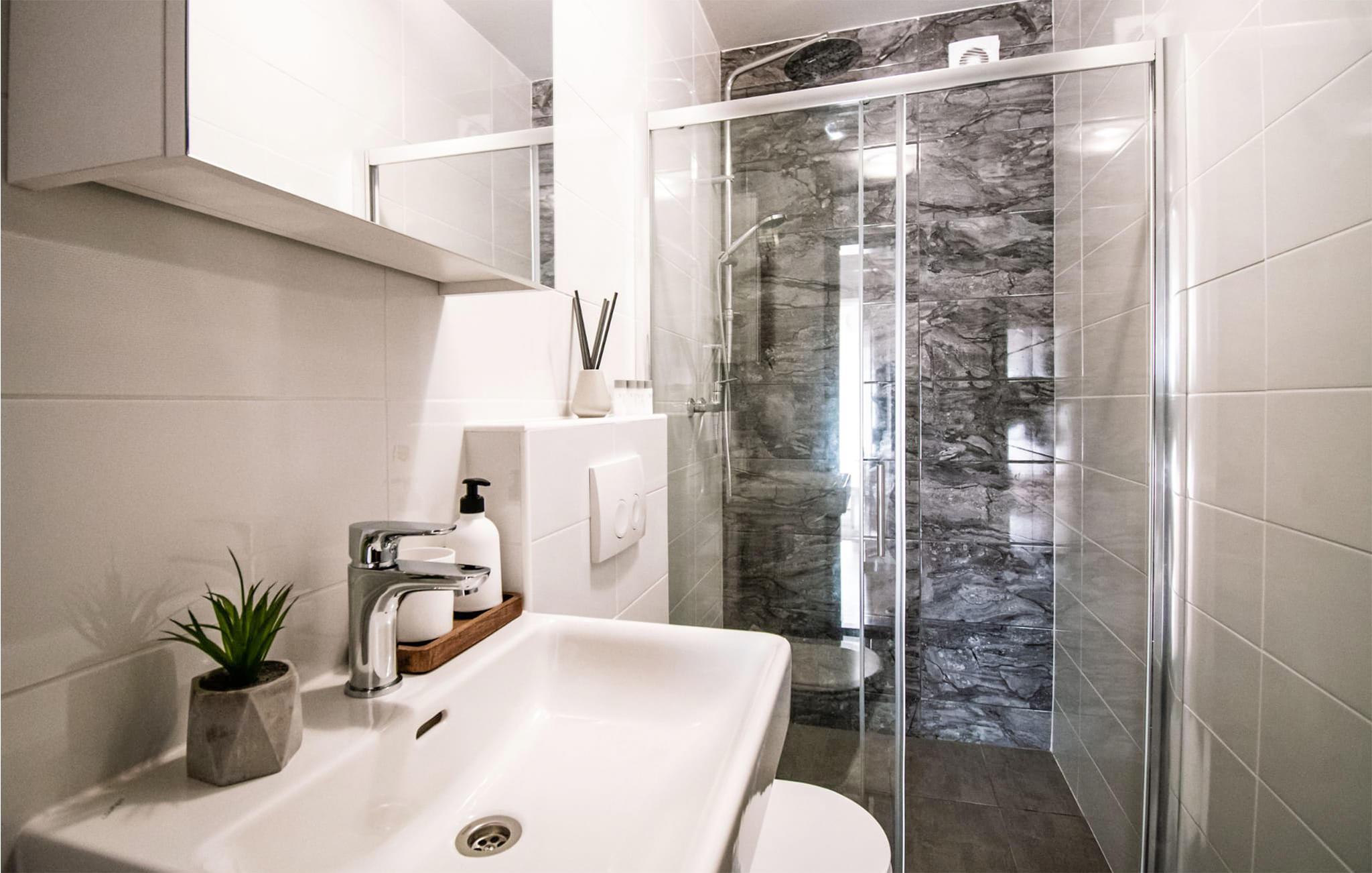 Badezimmer (nr. 2) - WC. Warmes und kaltes Wasser. Dusche
