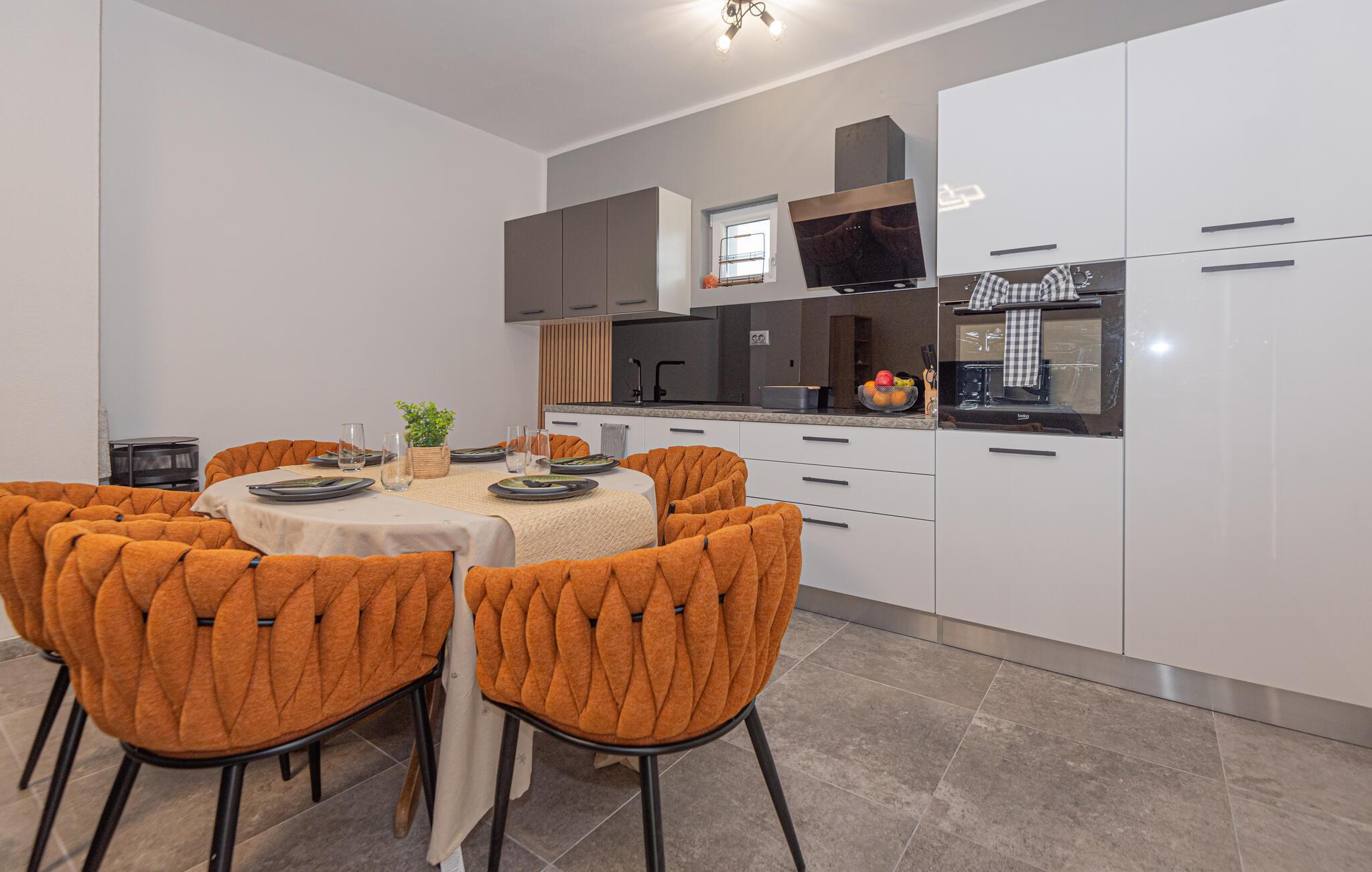 Willkommen in diesem schönen Ferienhaus! Endlich sind Sie im Urlaub angekommen und können sich im schönen Haus entspannen und es zu Ihrem zweiten zuhause machen. Das moderne Design und der Komfort werden Sie gerne in der Küche kochen, auf dem Sofa entspannen und im Garten relaxen lassen.