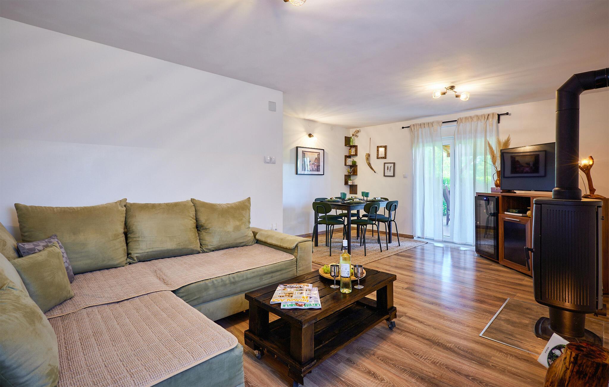 Dieses Ferienhaus erwartet Sie unweit von Pokupski, in idyllischer Lage direkt am Fluss Kupa und ist ideal geeignet für einen Familienaufenthalt. Das komplett ausgestattete Haus ermöglicht Ihnen einen unbeschwerten Urlaub in einer natürlichen Umgebung. Die stilvolle Einrichtung und gepflegte Holzböden machen es Ihnen leicht, hier zu entspannen. Machen Sie es sich abends auf dem einladenden Sofa am prasselnden Feuer im Kaminofen gemütlich.