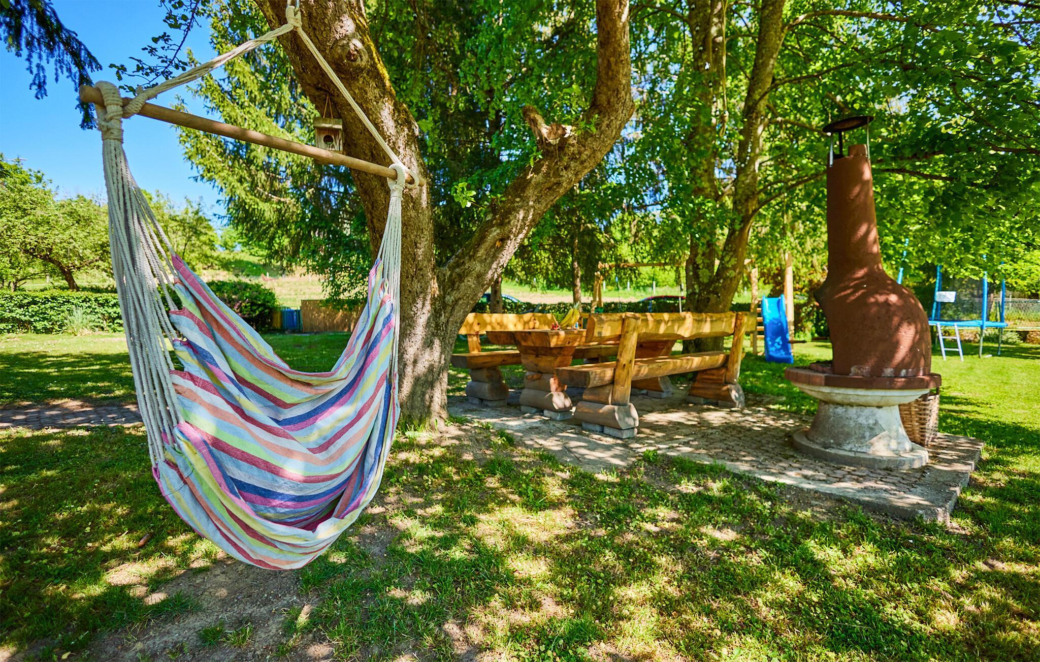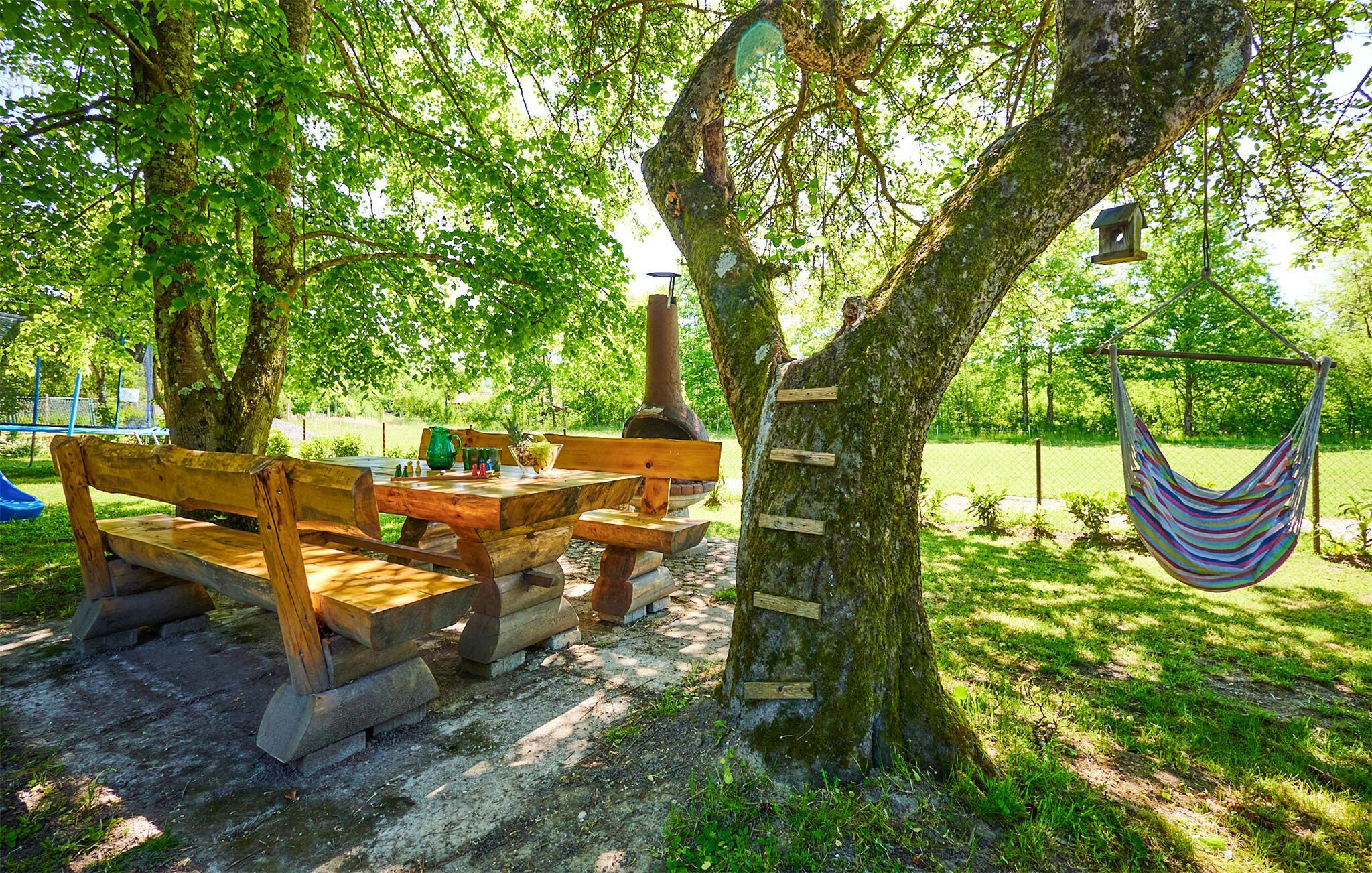 Ein absolutes Highlight ist der Whirlpool auf der Terrasse, wo Sie herrlich im Freien entspannen können. Sehen Sie den Kindern beim ausgelassenen Spiel zu, während Sie alles für ein Abendessen unter freiem Himmel vorbereiten. Entspannen Sie abends in den Schaukeln und Netzen am Baum oder an der Feuerstelle im Freien.