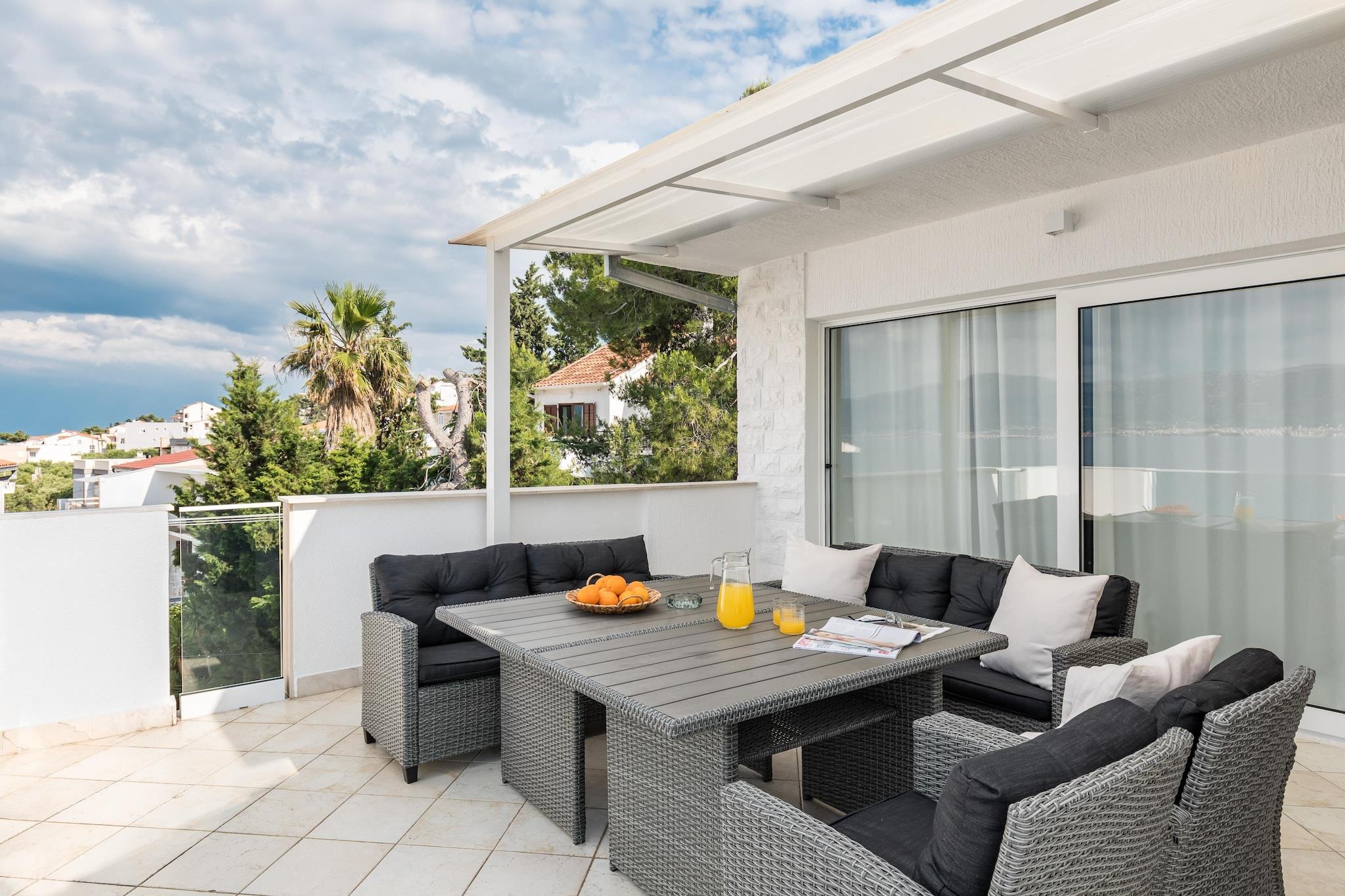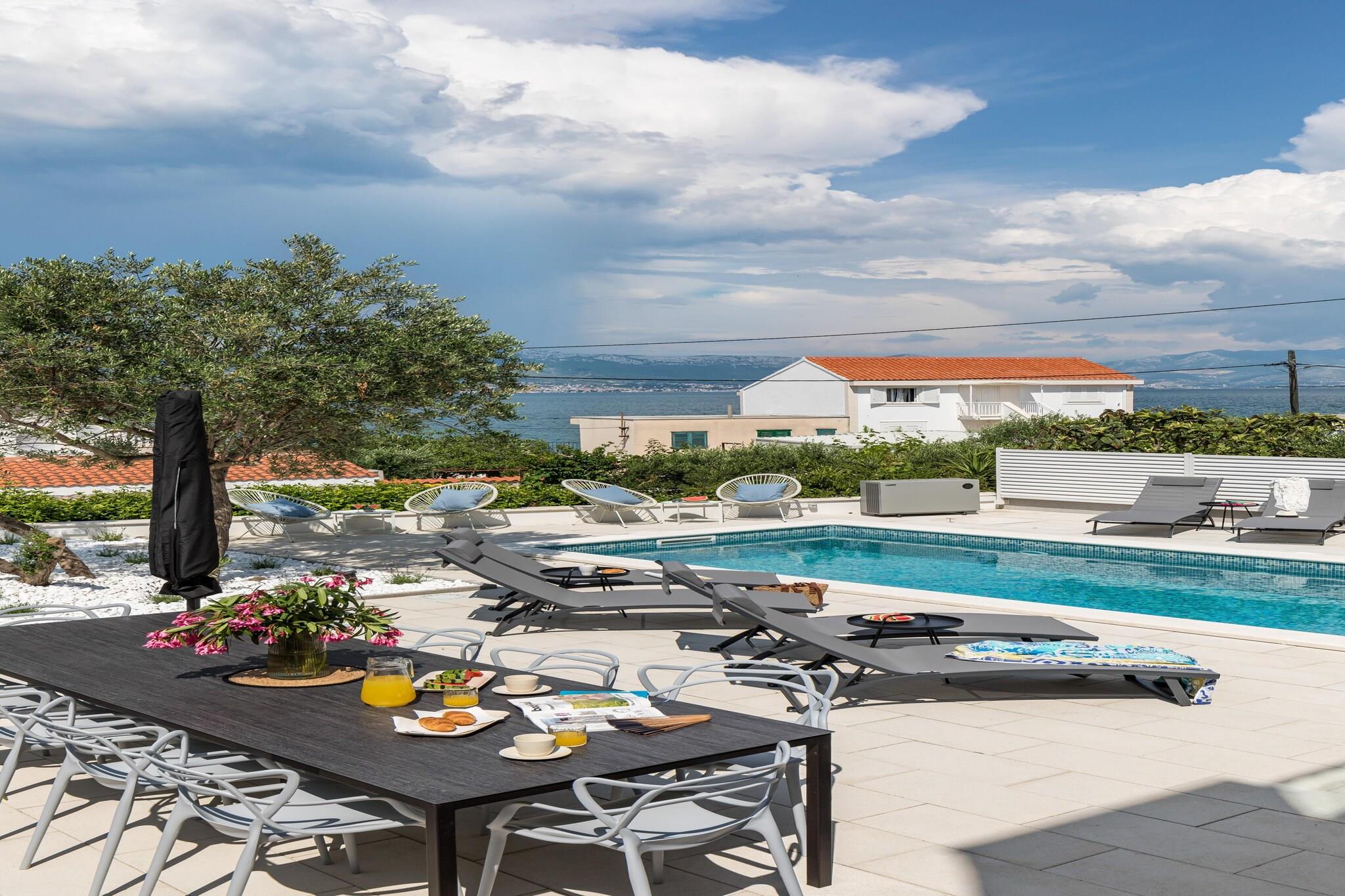 Located in the peaceful coastal village of Slatine, just 70 meters from the Adriatic Sea, Apartment E offers a comfortable, pet-friendly retreat for up to six guests. Set on the second floor of a charming house, the apartment features a fully equipped kitchen, a cozy living and dining area with satellite TV, air conditioning, and a fireplace, along with three bedrooms—two with double beds and one with twin beds. Guests can enjoy a private terrace, access to a shared pool, a garden with sun loungers, and a barbecue area perfect for outdoor dining. The beach, local shops, restaurants, and public transport are all within walking distance, and the UNESCO-listed town of Trogir is just 5 km away. Check-in is simple and secure with a coded main entrance (2367#), and guests can park either in front of the house (4 spaces) or behind, where there is a larger lot for 6 cars. The apartment includes a white folder with the Wi-Fi code (MARINA2, password Marina123) and a QR code for self check-in via e-Visitor. Alternatively, our friendly housekeeping lady, Alicia—located in the small white house near the upper parking—can handle your check-in if you provide your passports. A refundable EURO100 cash deposit is required upon arrival and will be returned after departure if everything is in order. Marina, your host, is available on WhatsApp or Viber for any questions or assistance during your stay. Airport transfers and car rentals can be arranged upon request. Whether you’re here to explore nearby Split and Trogir or simply relax by the sea, Apartment E offers a warm and welcoming base for your Croatian getaway.