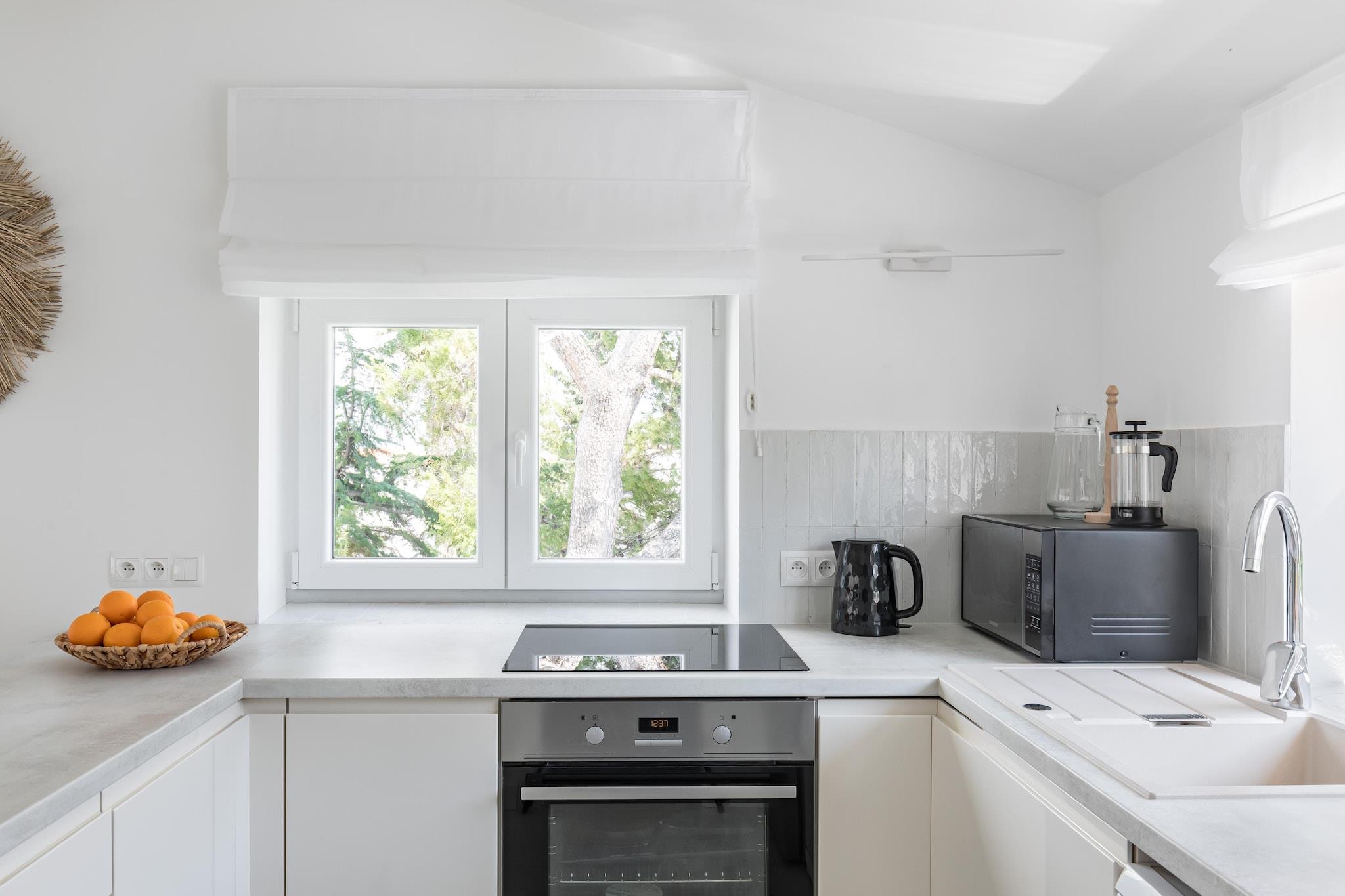 On the 2nd floor: (Kitchen(electric kettle, cooker(electric), oven, microwave, dishwasher, fridge-freezer), Living/diningroom(TV(flatscreen, satellite), fireplace, air conditioning), bedroom(double bed), bedroom(2x single bed), bedroom(double bed), bathroom(shower, washbasin, toilet, washing machine), toilet, terrace(private, 25 m2)) outdoor kitchen(shared with other guests), air conditioning, terrace(shared with other guests), garden(shared with other guests), garden furniture, sun loungers, BBQ(shared with other guests), parking, parasol, swimming pool(shared with other guests), lounge set
