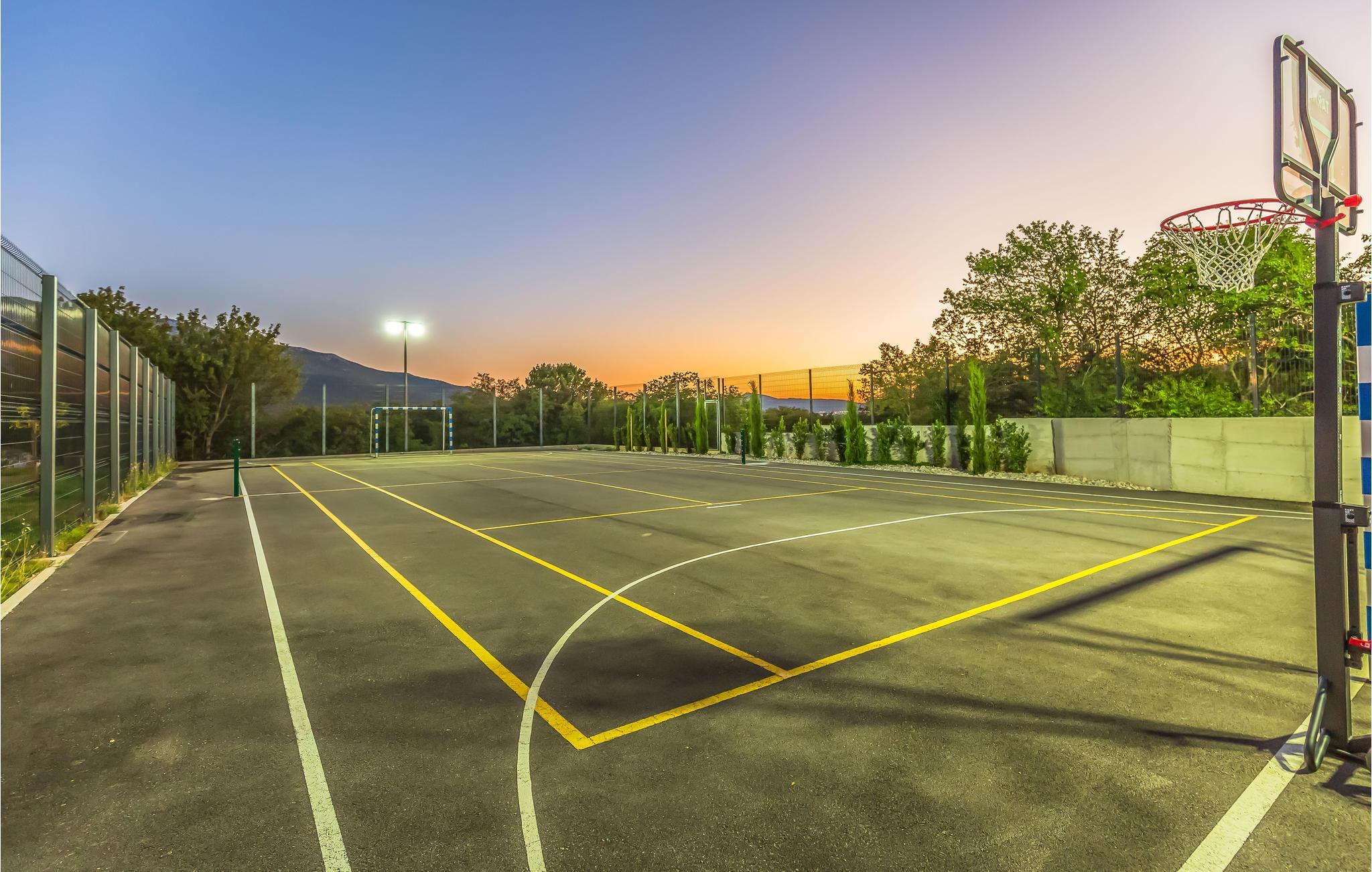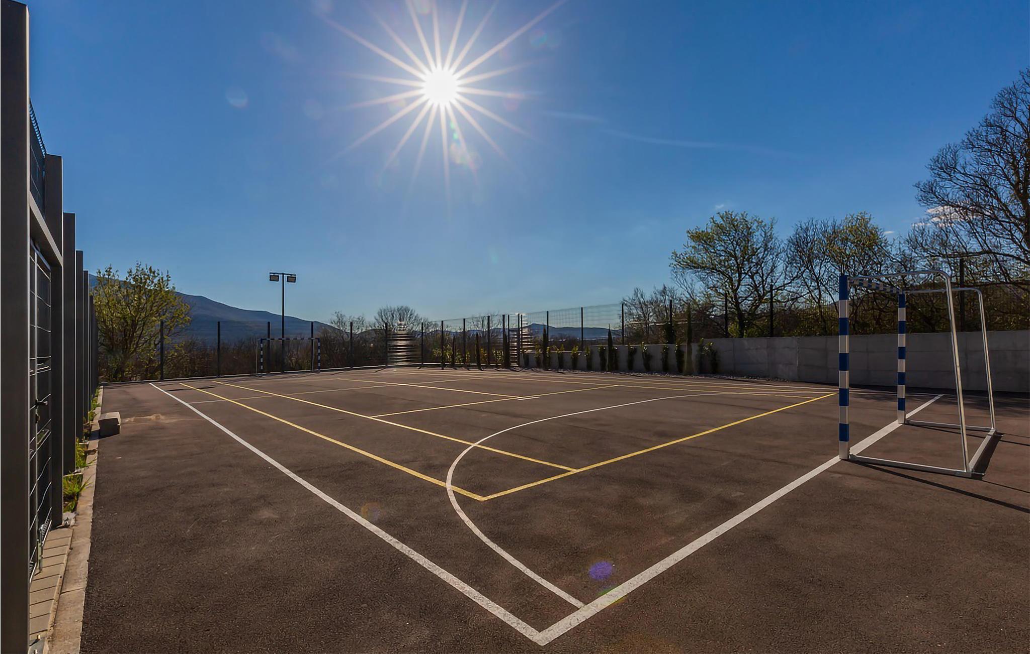 Ein mit Flutlicht ausgestatteter Sportplatz, auf dem Anwesen, gibt Ihnen die Flexibilität mehrere Sportarten auszuüben.