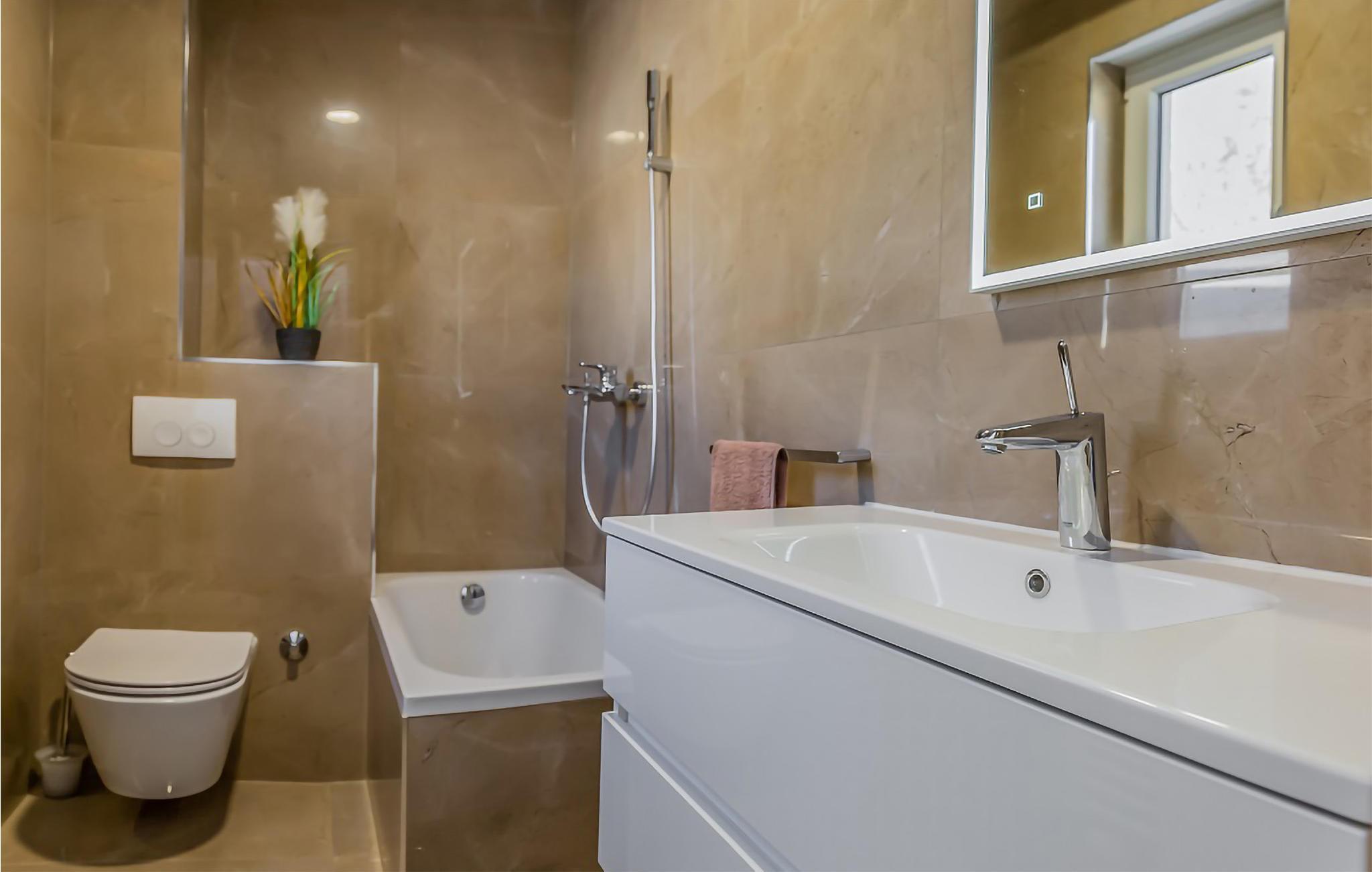 Badezimmer 4m2 (nr. 5) - WC. Warmes und kaltes Wasser. Badewanne