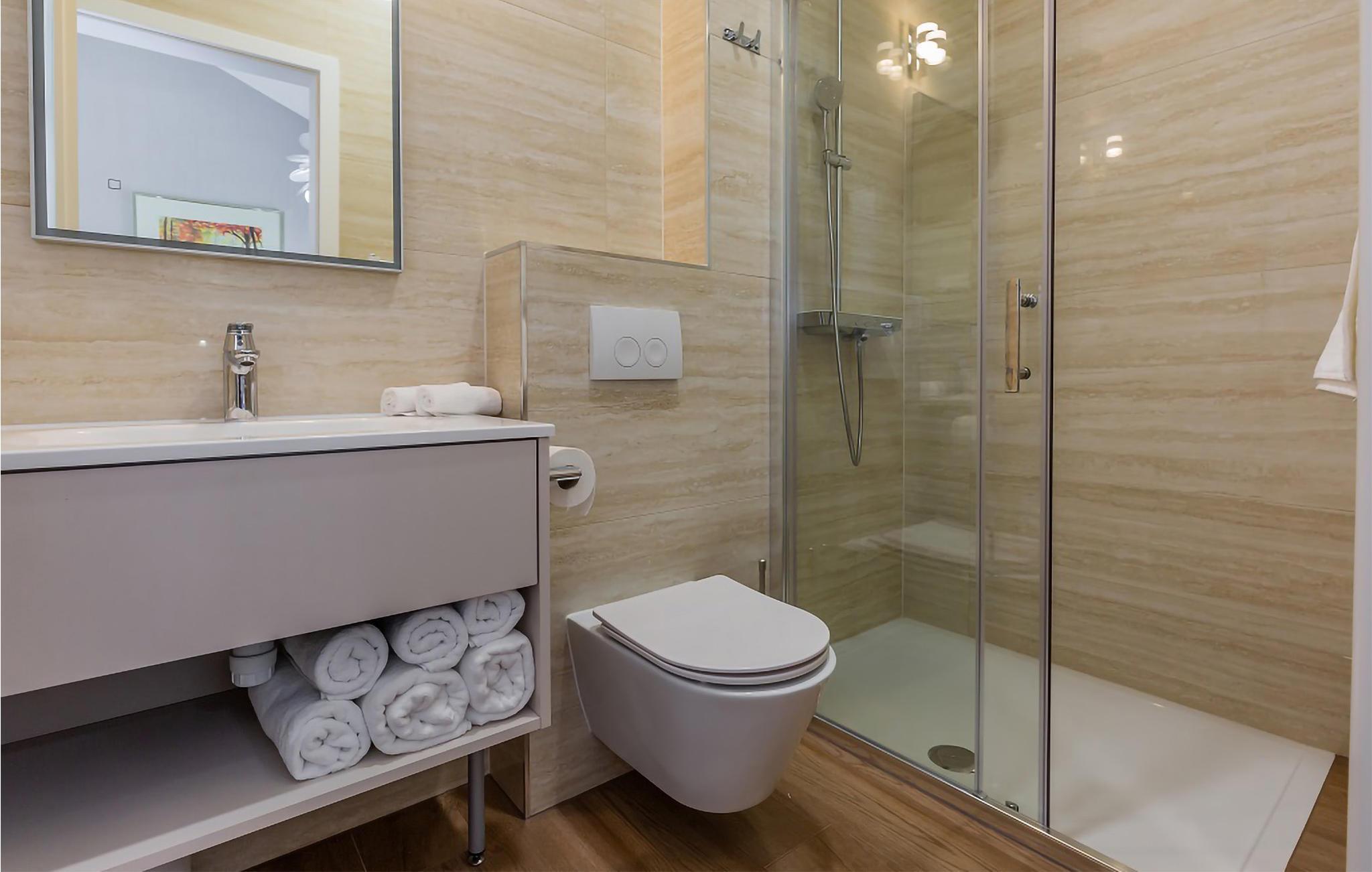 Badezimmer 4m2 (nr. 1) - WC. Warmes und kaltes Wasser. Dusche
