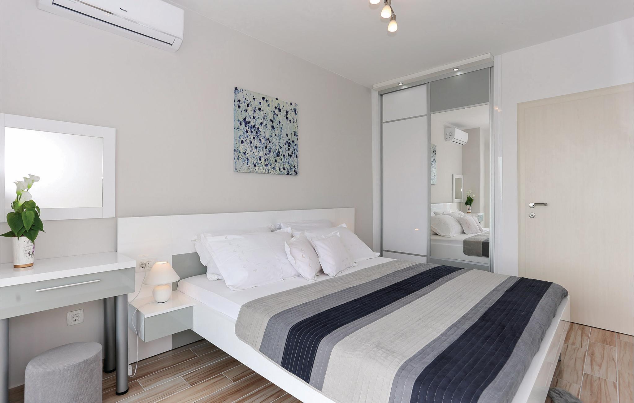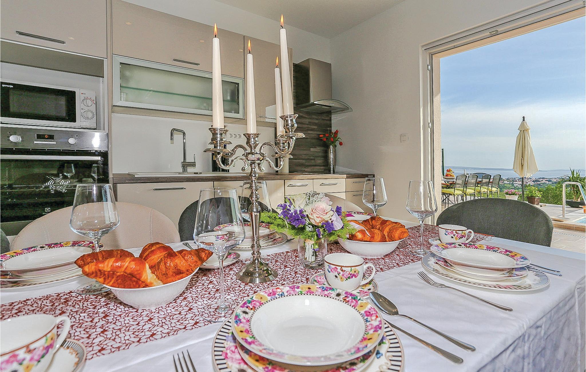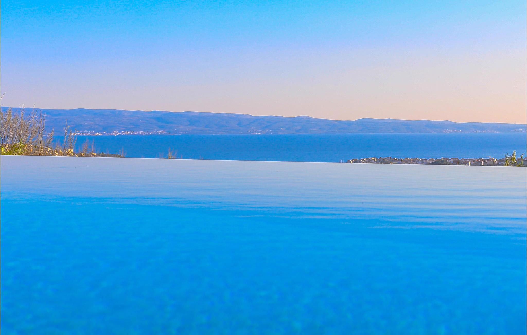 Auf einer Anhöhe mit Panoramablick auf das Meer und Split liegt dieses schöne Ferienhaus in der kleinen Ortschaft Kucine. Verbringen Sie einen angenehmen Aufenthalt in diesem stilvollen Haus in zwei Etagen mit Außentreppen. Im ersten Stock sind drei Schlafzimmer und zwei Badezimmer, während im Erdgeschoss noch ein Schlafzimmer und die Küche mit Wohnzimmer sind, mit Ausgang auf eine geräumige Terrasse und zum Swimmingpool mit Massagedüsen. Der kleine Fitnessraum liegt im Souterrain, unter der Terrasse. Auf vorherige Anfrage und mit Zusatzkosten können Sie auch Bootsausflüge und Voll- oder Halbpension mit dem Eigentümer vereinbaren, da er Besitzer einer bekannten Taverne mit traditioneller Küche ist. Besuchen Sie die Stadt Split mit zahlreichen kulturellen und unterhaltsamen Freizeitmöglichkeiten.