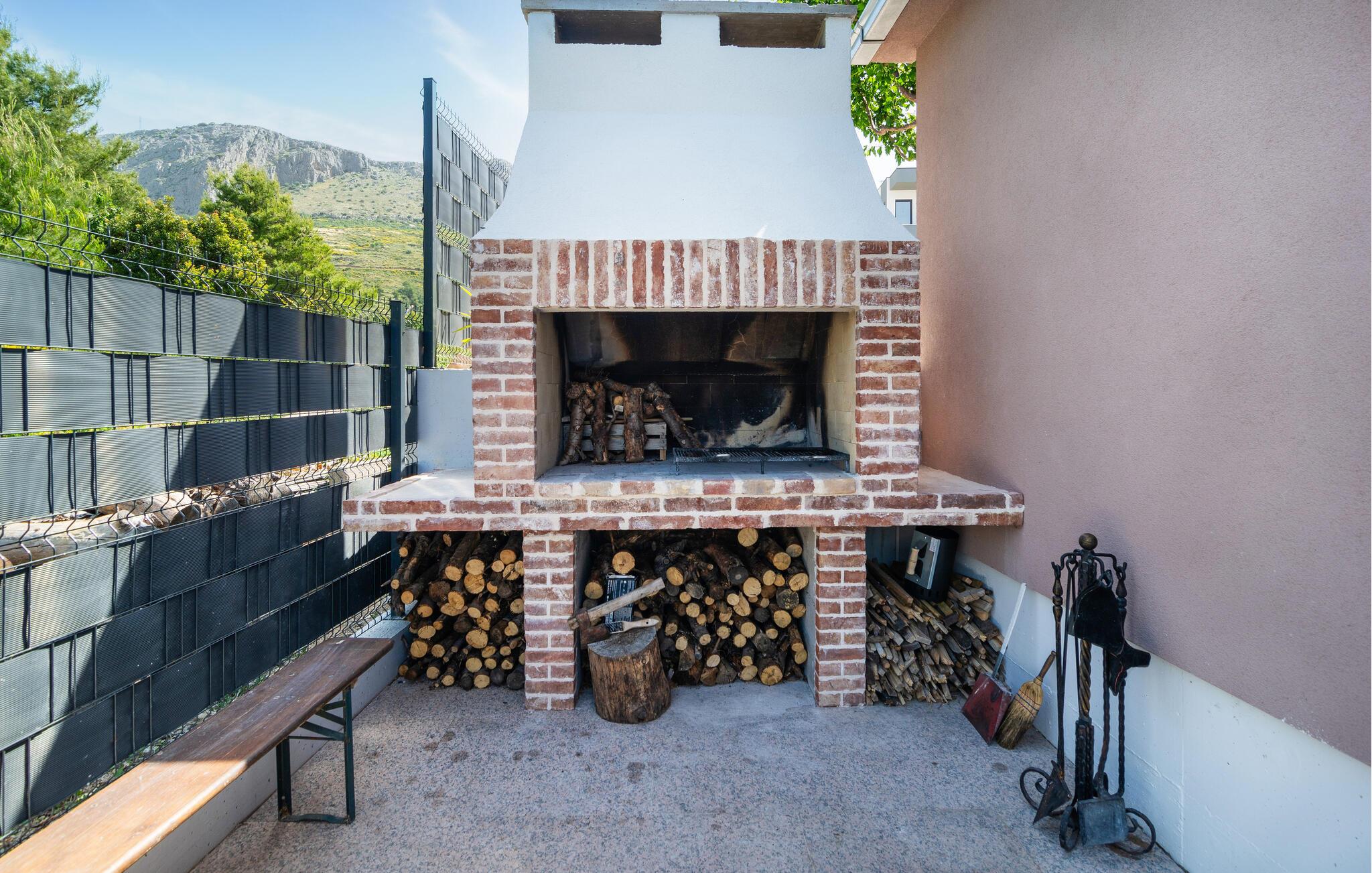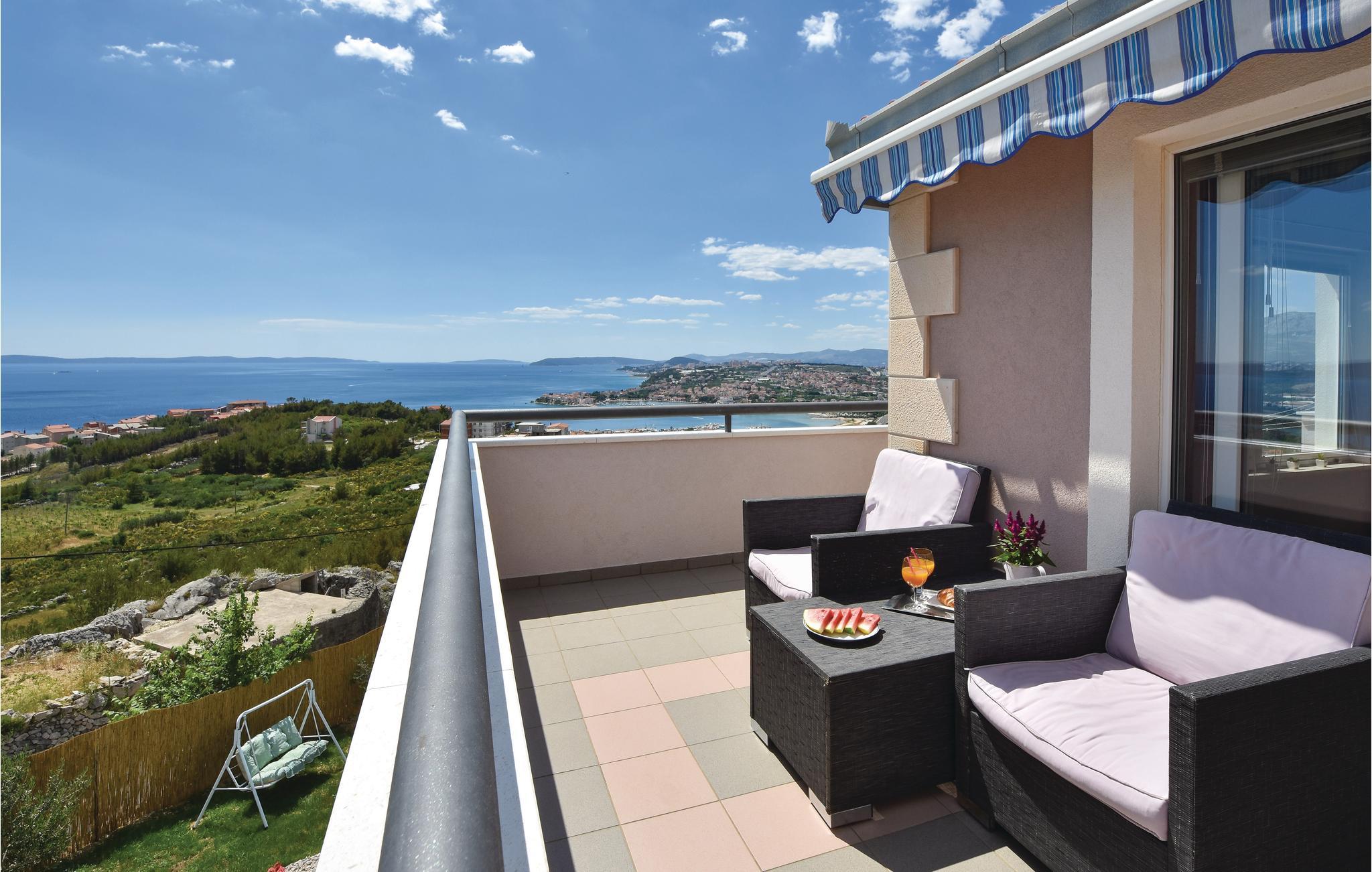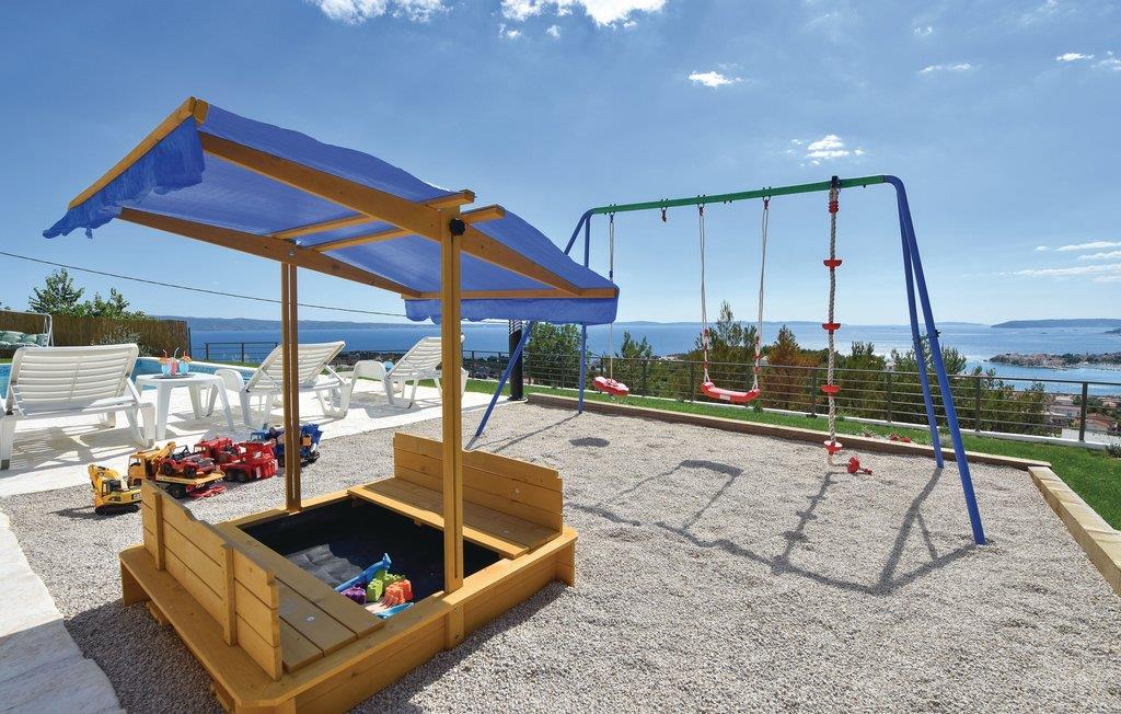 Dieses schön eingerichtete Ferienhaus mit Pool ist auf einer Anhöhe gelegen. Das besondere Highlight dieser Ferienunterkunft ist mit Sicherheit der atemberaubende Blick auf das Meer und die Inseln und die herrlichen Sonnenuntergänge, die Sie hier erleben, werden Ihnen bestimmt in Erinnerung bleiben. Das Haus besteht aus zwei Wohneinheiten verbunden durch Innentreppen. Auf dem großen Grundstück stehen Ihnen außer dem Pool und den Inhalten für Kinder auch die Taverne und die überdachter Terrasse mit einem Tisch für 15 Personen zur Verfügung, wo Sie gemeinsame Momente in einer entspannten Atmosphäre verbringen können. Die nächsten Strände erreichen Sie in einigen Fahrminuten und empfehlenswert ist es auch die historische Stadt Split zu besuchen.