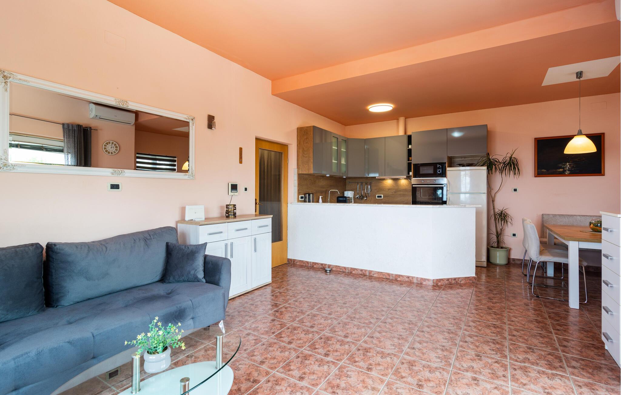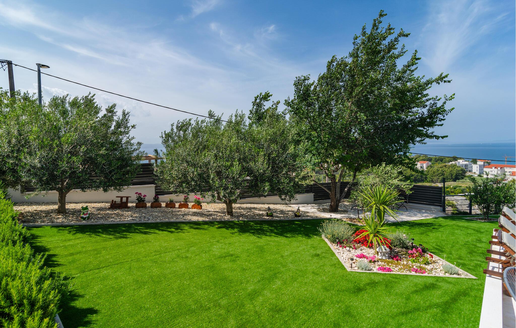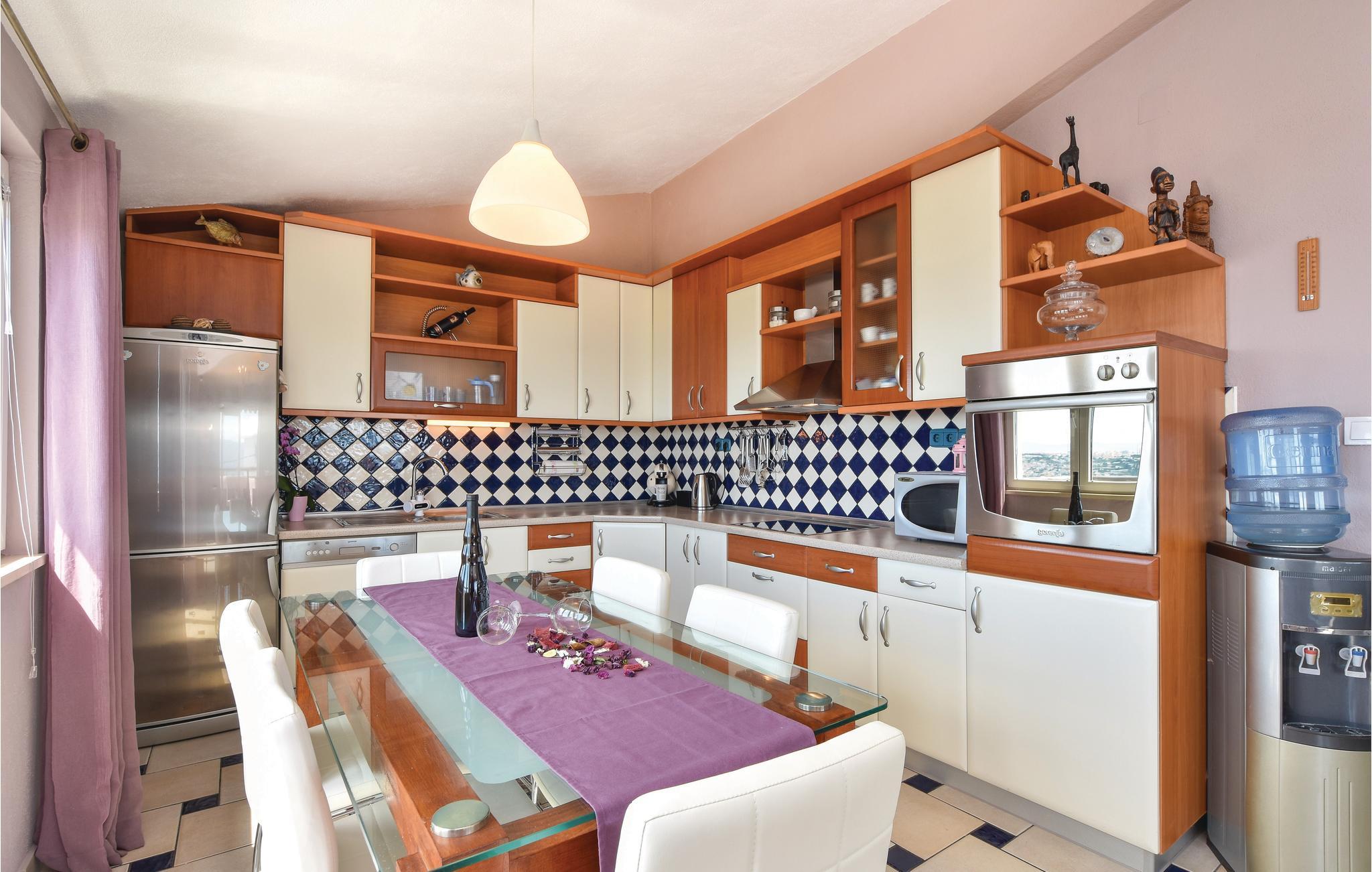 Dieses schön eingerichtete Ferienhaus mit Pool ist auf einer Anhöhe gelegen. Das besondere Highlight dieser Ferienunterkunft ist mit Sicherheit der atemberaubende Blick auf das Meer und die Inseln und die herrlichen Sonnenuntergänge, die Sie hier erleben, werden Ihnen bestimmt in Erinnerung bleiben. Das Haus besteht aus zwei Wohneinheiten verbunden durch Innentreppen. Auf dem großen Grundstück stehen Ihnen außer dem Pool und den Inhalten für Kinder auch die Taverne und die überdachter Terrasse mit einem Tisch für 15 Personen zur Verfügung, wo Sie gemeinsame Momente in einer entspannten Atmosphäre verbringen können. Die nächsten Strände erreichen Sie in einigen Fahrminuten und empfehlenswert ist es auch die historische Stadt Split zu besuchen.