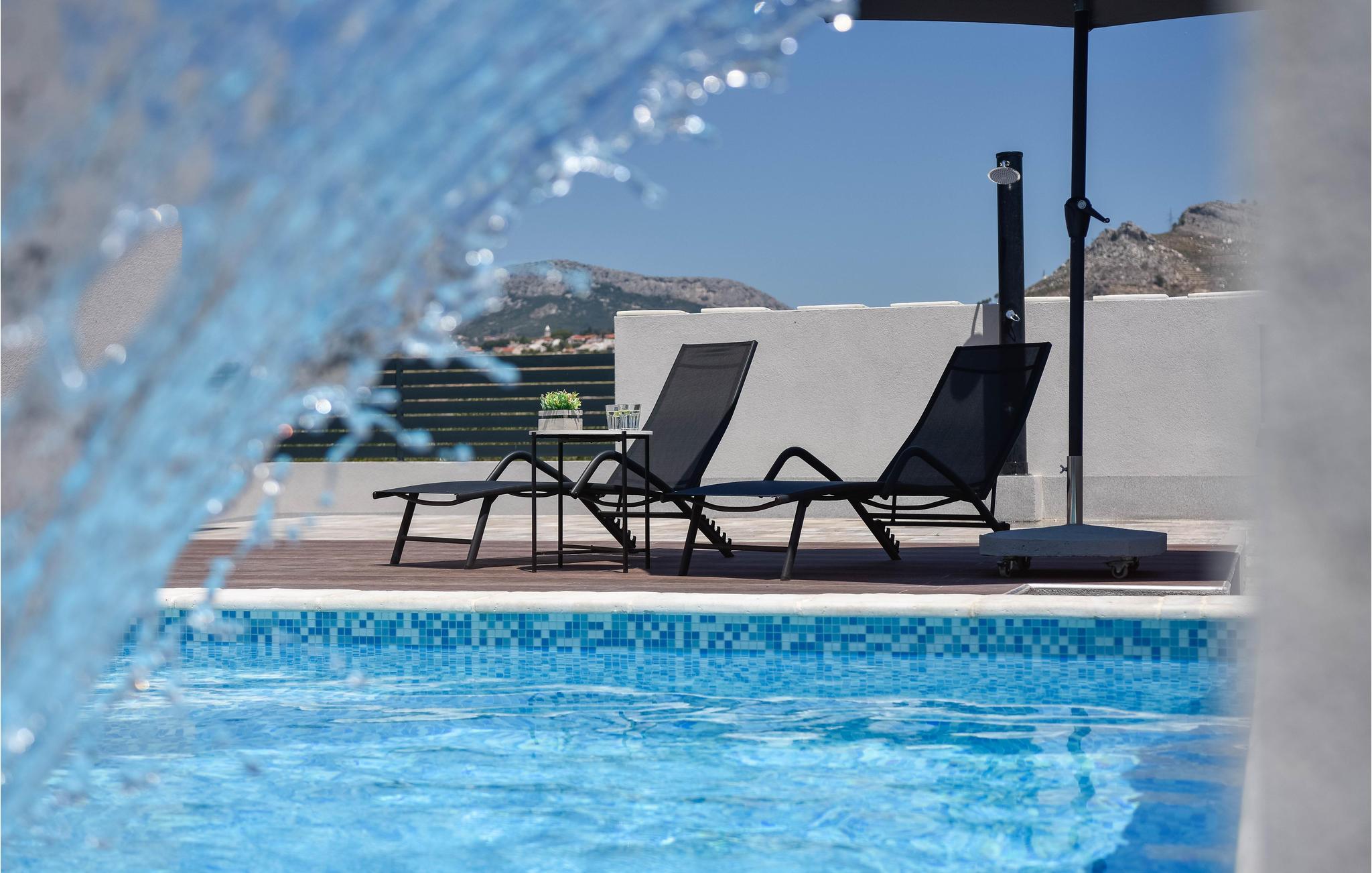 Dieses wunderbare Ferienhaus mit Pool und integriertem Whirlpool befindet sich im ruhigen Wohnviertel Kamen bei Split. Das Haus ist behindertengerecht eingerichtet und besteht aus einem geräumigen Wohnzimmer mit Küche und Essbereich, 4 Schlafzimmern, 3 Badezimmern und einer zusätzlichen Toilette. Neben dem gepflegten Garten erwartet Sie eine Terrasse mit Gartenmöbeln und Außenkamin und selbstverständlich wurde auch daran gedacht, dass für die jüngsten Gäste Spielsachen vorhanden sind. In etwa 10 Autominuten erreichen Sie das Zentrum der Stadt Split mit dem Diokletianpalast, der auf der UNESCO-Liste des Weltkulturerbes steht. Wenn Sie im Meer schwimmen möchten, dann finden Sie Sand- und Kieselstrände mit vielen Freizeitangeboten in der Nähe.