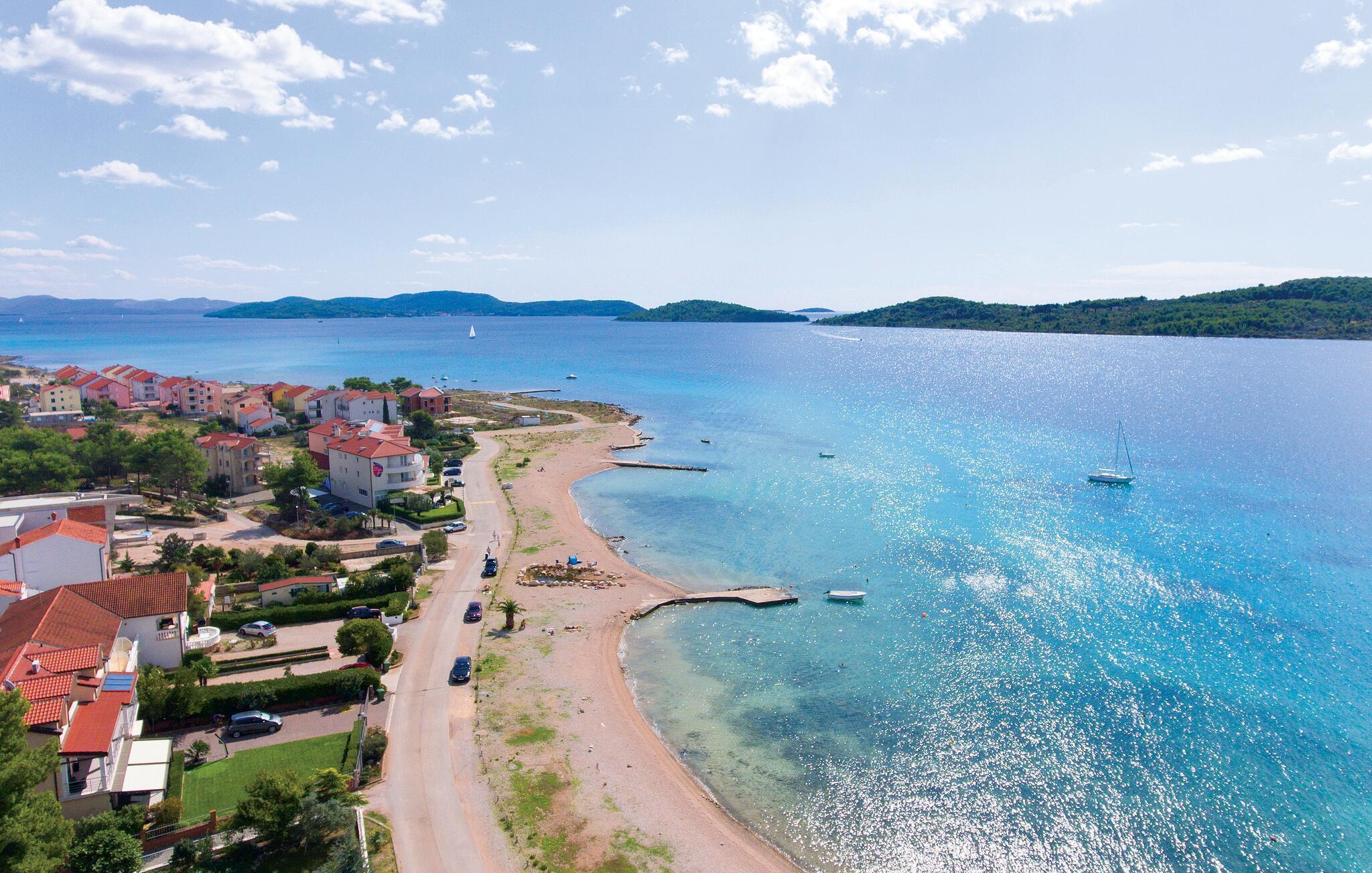 Erleben Sie erholsame Tage am Strand von Srima, der mit seinem klaren Wasser und flach abfallenden Ufer ideal für entspannte Stunden am Meer ist. Spazieren Sie entlang der Promenade und entdecken Sie kleine Cafés und Eisdielen mit Blick auf die vorgelagerten Inseln. Unternehmen Sie einen Ausflug ins nahegelegene Vodice oder besuchen Sie den Nationalpark Krka mit seinen eindrucksvollen Wasserfällen. Abends genießen Sie die dalmatinische Küche in einem der gemütlichen Restaurants und lassen den Tag in mediterraner Atmosphäre ausklingen.