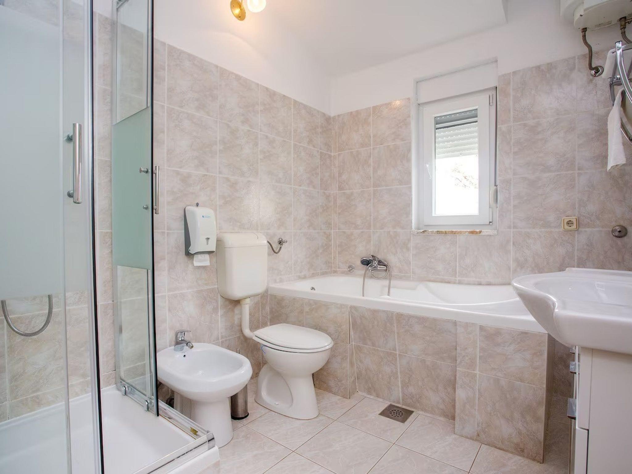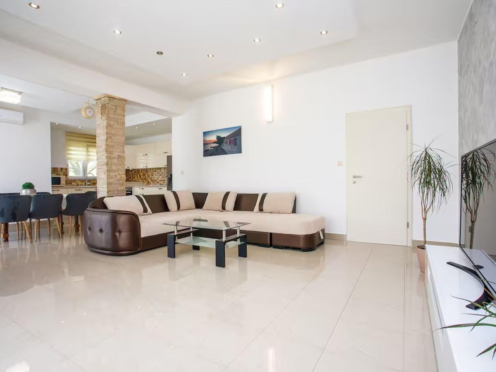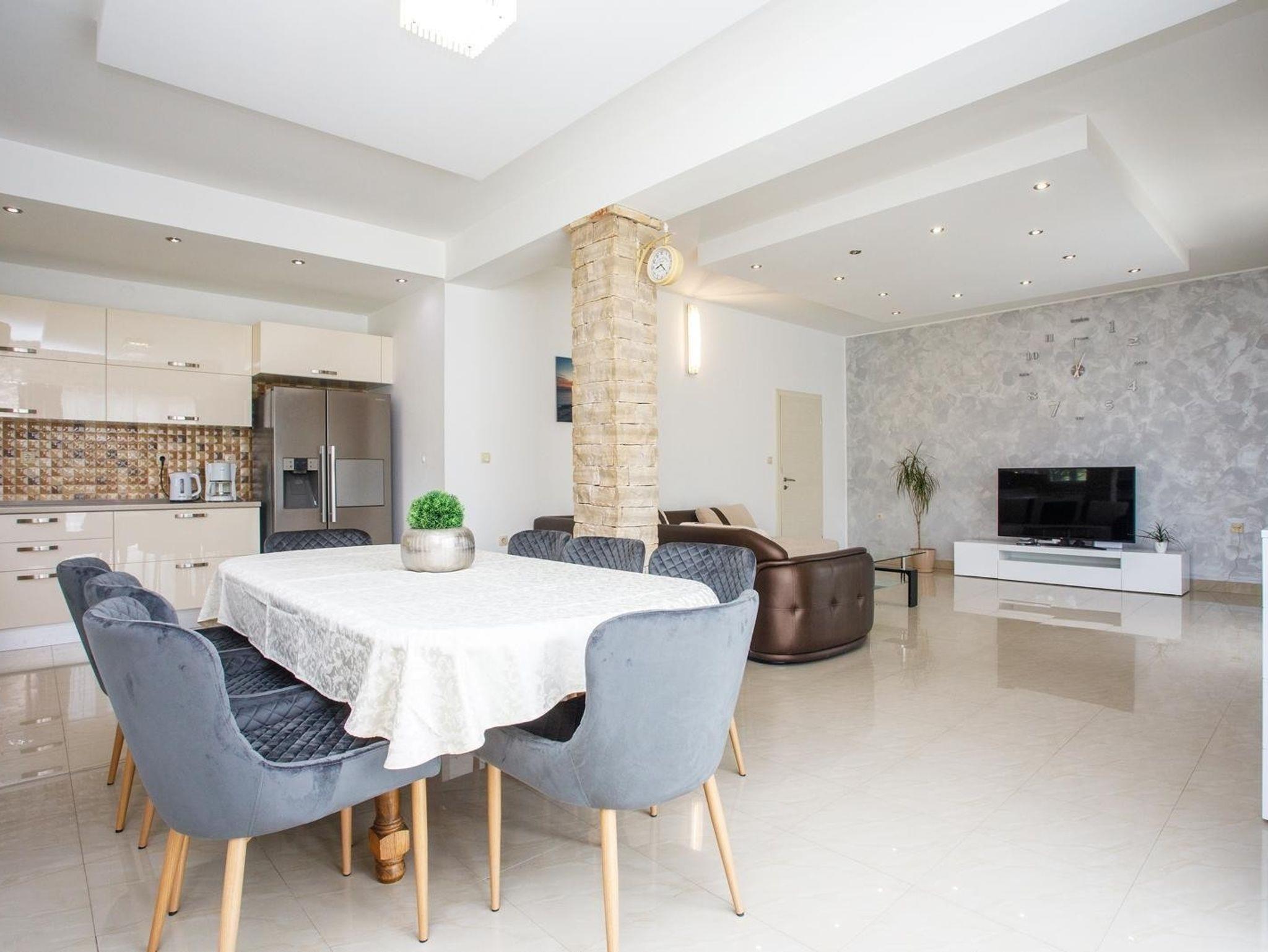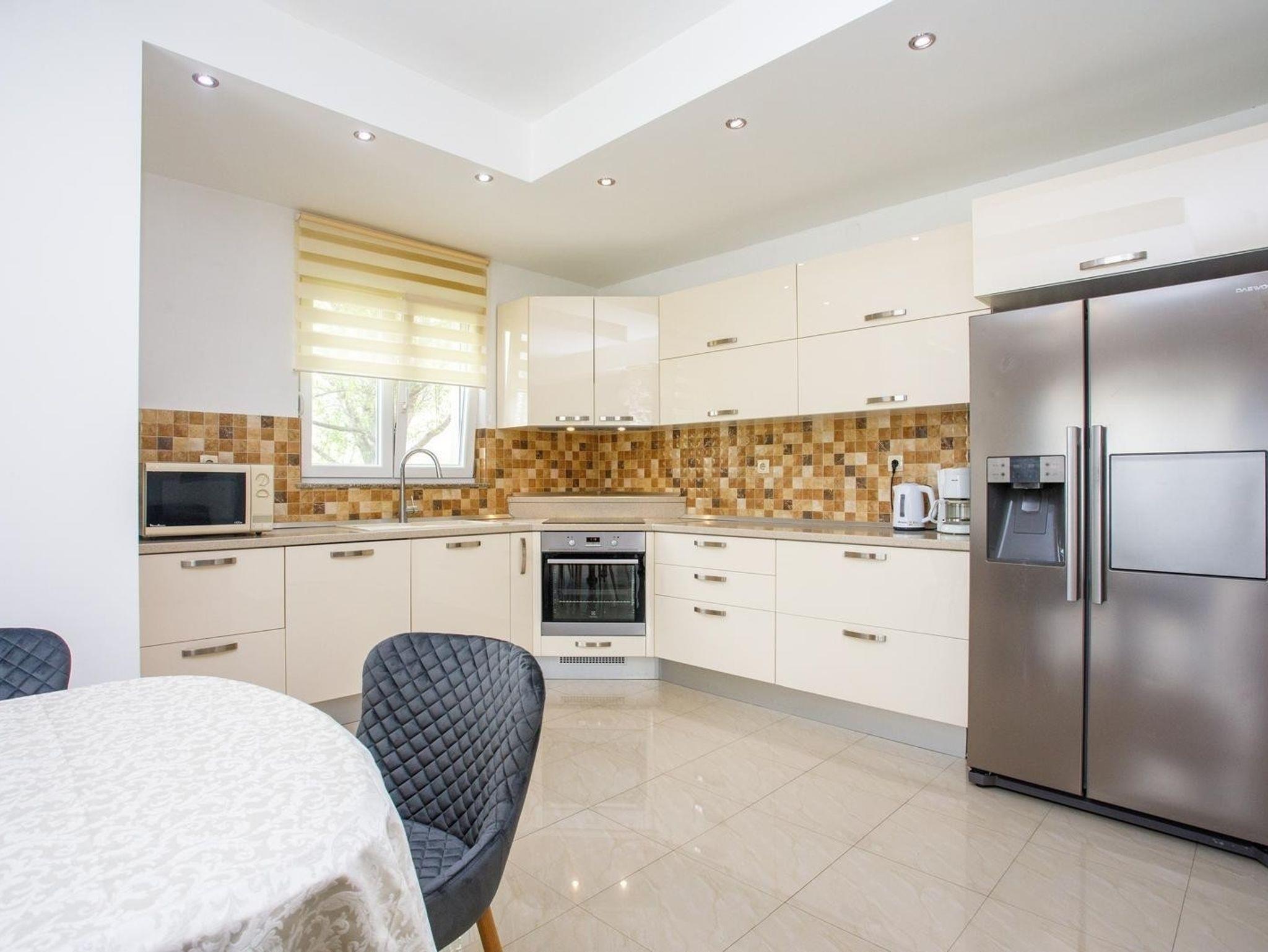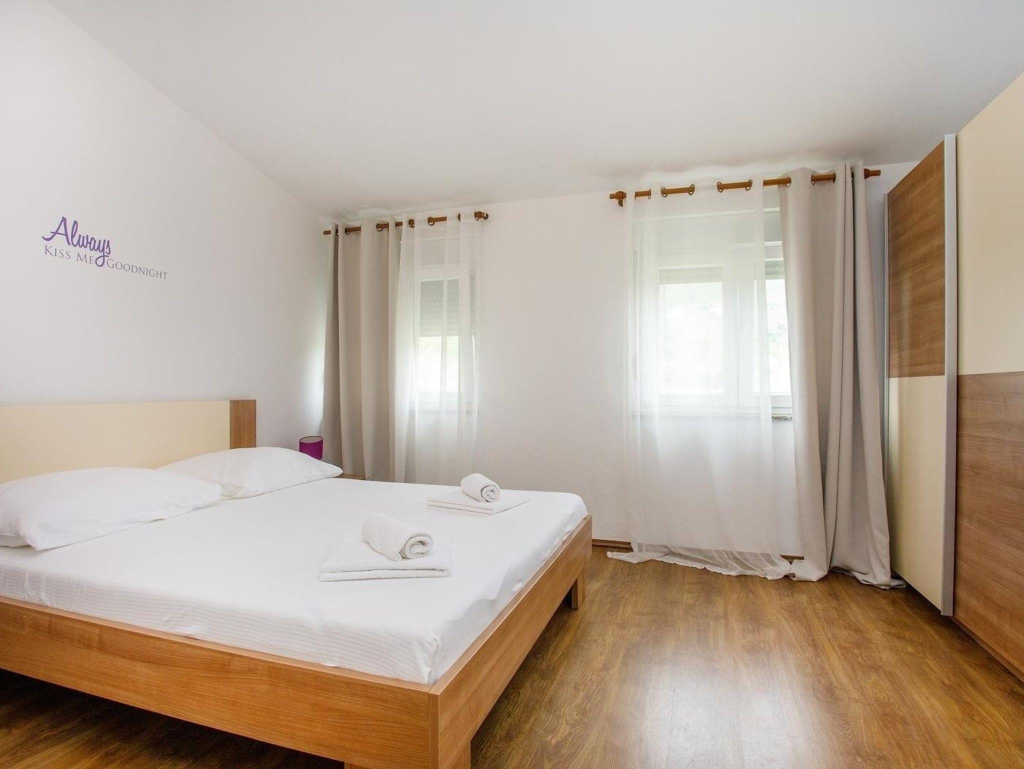 Haus bietet Platz für 10 Gäste. Die Betten sind in Schlafzimmern, die es 3 gibt, und in Wohnzimmer, innerhalb einer Gesamtfläche von 190m2, angeordnet. Die Gäste haben eine eigene Terrasse zur Verfügung, auf der sie in warmen Sommernächten genießen können. Für vollen Genuss und Entspannung gibt es einen privaten Grill für Gäste dieser Unterkunft. Während ihres Aufenthalts können sich Gäste im privaten Schwimmbad entspannen. IM PREIS INBEGRIFFEN: Kurtaxe, Endreinigung, Klimatisierung, Pool, Parkplatz, Internet, Fahrrad, Kinderbett, Bügeleisen, Bügelbrett, Föhn, Sonnenschirm, Liegestühle. VERBINDLICHE ZUSÄTZLICHE KOSTEN: Aufzahlung für Kurzaufenthalte (prozentualer Zuschlag pro Nächtigungsanzahl: 30% - 1, 20% - 2, 10% - 3). Die Verfügbarkeit zusätzlicher Dienstleistungen in Ihrem reservierten Termin und die Preise derselben (falls nicht aufgeführt) müssen im Voraus überprüft werden. Zusätzliche Dienstleistungen die in der Zahlungsaufforderung nicht aufgeführt sind werden direkt beim Vermieter bezahlt, angenommen der Gast nutzt auch diese. Ermäßigung auf den Grundpreis: Gratistag 21=19 (bei einem Aufenthalt von 21 Tagen oder mehr erhalten Sie 2 Gratistage für den Aufenthalt bis 31.12.26).