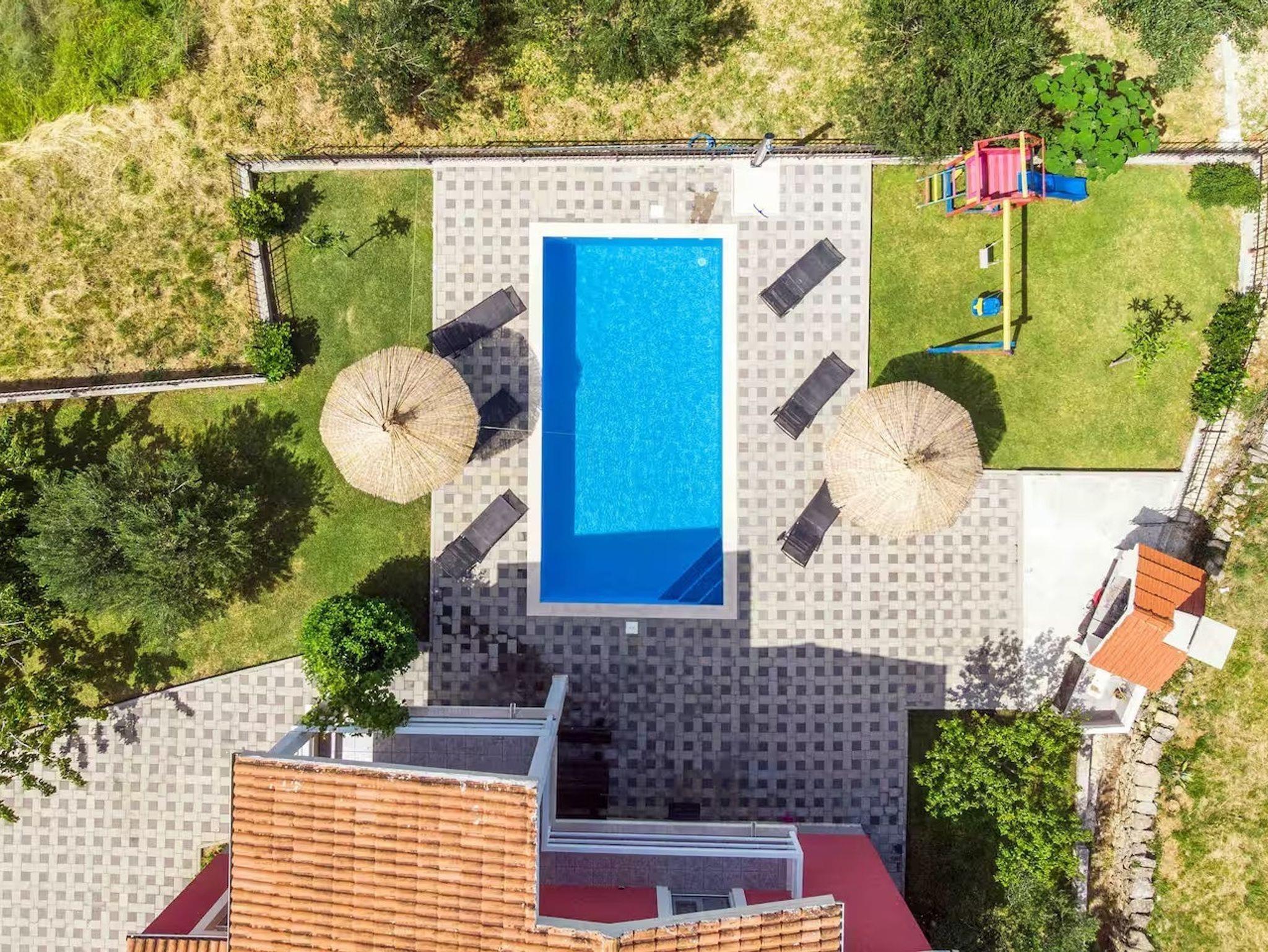 Hof (700m2, Kinderbereich, Sitzbereich), Parkplatz (Anzahl der Parkplätze: 5, Entfernung vom Objekt: im Hof), Pool: privat, Dimensionen: 8m x 4m x 1.6m, Wassertyp: Süßwasser, WiFi Internet, Fahrrad (Anzahl: 2), Föhn, Bügeleisen, Bügelbrett, Sonnenschirm, Liegestühle, Kinderbett