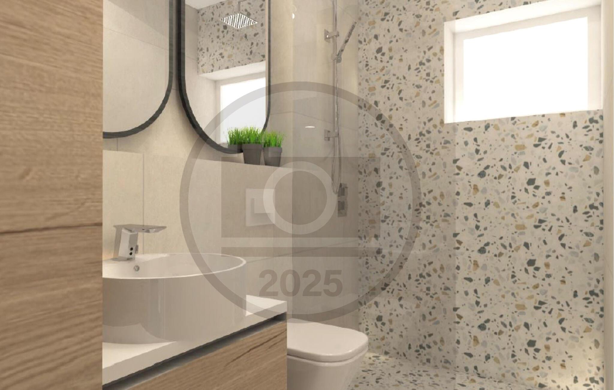 Badezimmer 5m2 (nr. 2) - WC. Warmes und kaltes Wasser. Dusche