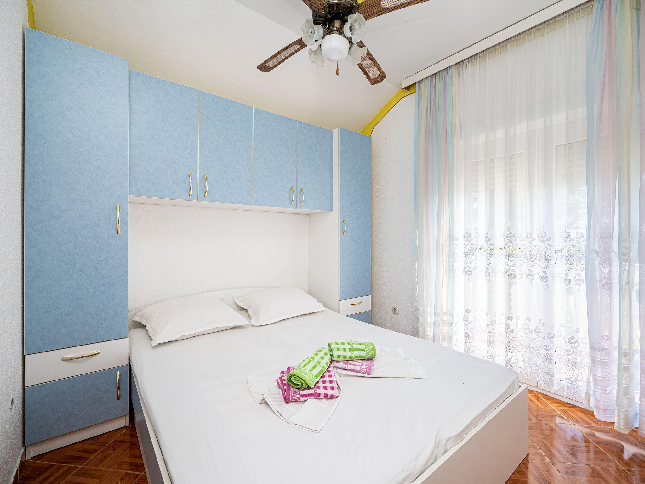 Ferienwohnung bietet Platz für 6 Gäste. Die Betten sind in Schlafzimmern, die es 3 gibt, innerhalb einer Gesamtfläche von 52m2, angeordnet. Die Gäste haben eine eigene Terrasse zur Verfügung, auf der sie in warmen Sommernächten genießen können. Das Apartment bietet Meerblick. Es ist erlaubt, Speisen auf dem Gemeinschafts-Grill vorzubereiten. IM PREIS INBEGRIFFEN: Kurtaxe, Endreinigung, Klimatisierung, Parkplatz, Internet, Bügeleisen, Föhn. UNVERBINDLICHE ZUSÄTZLICHE KOSTEN: Wäschewaschen (10,00 € Waschen), Zusatzbett (20,00 € pro Nacht). Die Verfügbarkeit zusätzlicher Dienstleistungen in Ihrem reservierten Termin und die Preise derselben (falls nicht aufgeführt) müssen im Voraus überprüft werden. Zusätzliche Dienstleistungen die in der Zahlungsaufforderung nicht aufgeführt sind werden direkt beim Vermieter bezahlt, angenommen der Gast nutzt auch diese. Ermäßigung auf den Grundpreis: Gratistag 14=13 (bei einem Aufenthalt von 14 Tagen oder mehr erhalten Sie einen Gratistag für den Aufenthalt bis 31.12.26).