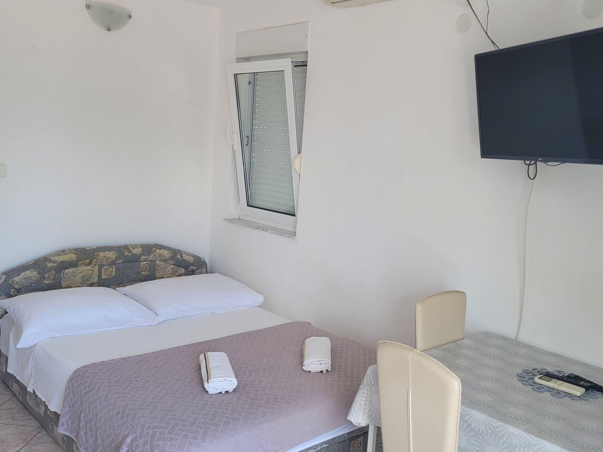 Studio bietet Platz für 4 Gäste. Die Betten sind in Schlafzimmern, die es 1 gibt, innerhalb einer Gesamtfläche von 22m2, angeordnet. Die Gäste haben einen eigenen Balkon zur Verfügung, auf der sie in warmen Sommernächten genießen können. Das Studio-Apartment bietet Meerblick. Es ist erlaubt, Speisen auf dem Gemeinschafts-Grill vorzubereiten. IM PREIS INBEGRIFFEN: Kurtaxe, Endreinigung, Klimatisierung, Parkplatz, Internet, Wäschewaschen, Fahrrad, Bügeleisen, Bügelbrett, Föhn. Die Verfügbarkeit zusätzlicher Dienstleistungen in Ihrem reservierten Termin und die Preise derselben (falls nicht aufgeführt) müssen im Voraus überprüft werden. Zusätzliche Dienstleistungen die in der Zahlungsaufforderung nicht aufgeführt sind werden direkt beim Vermieter bezahlt, angenommen der Gast nutzt auch diese.