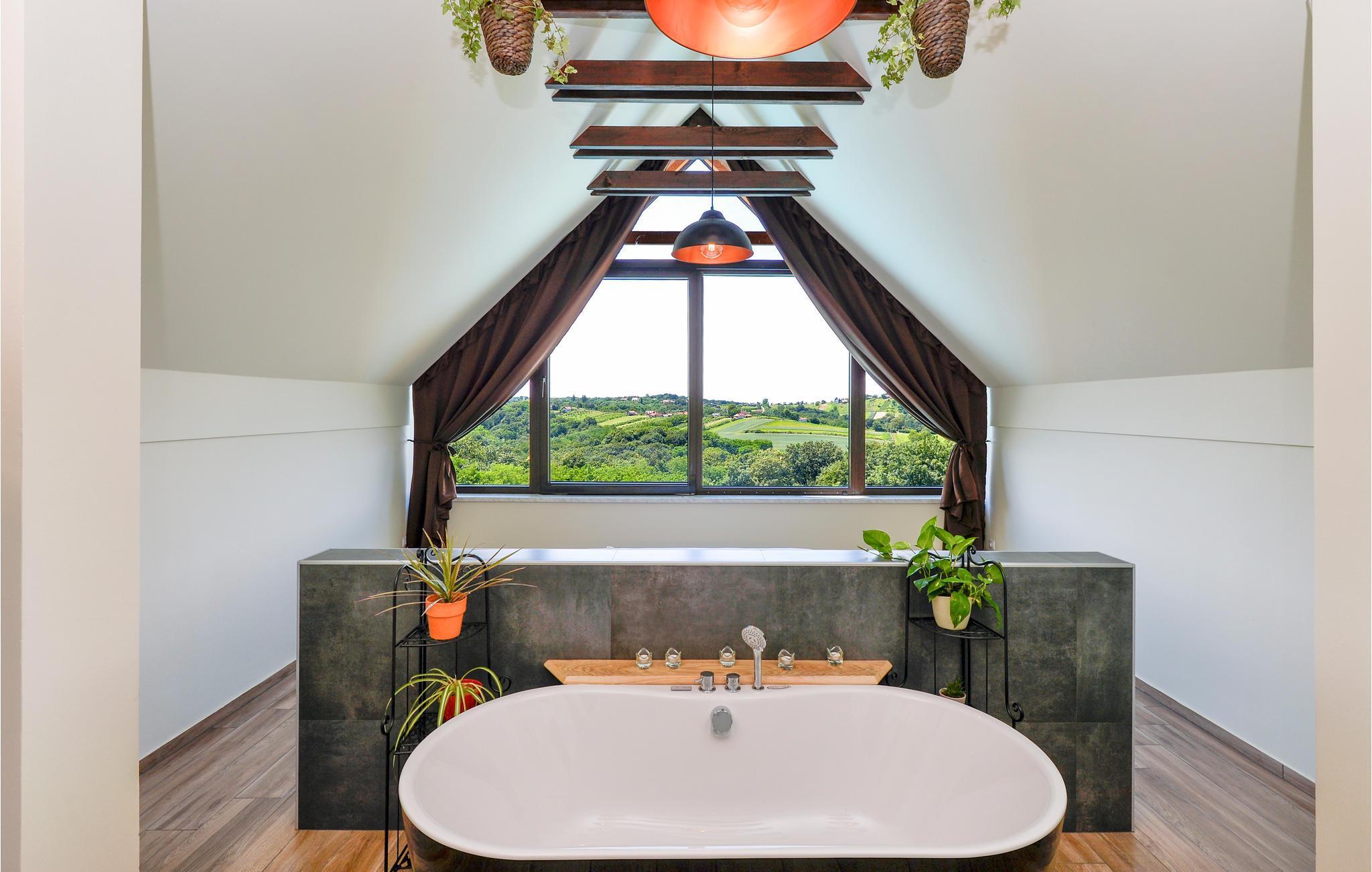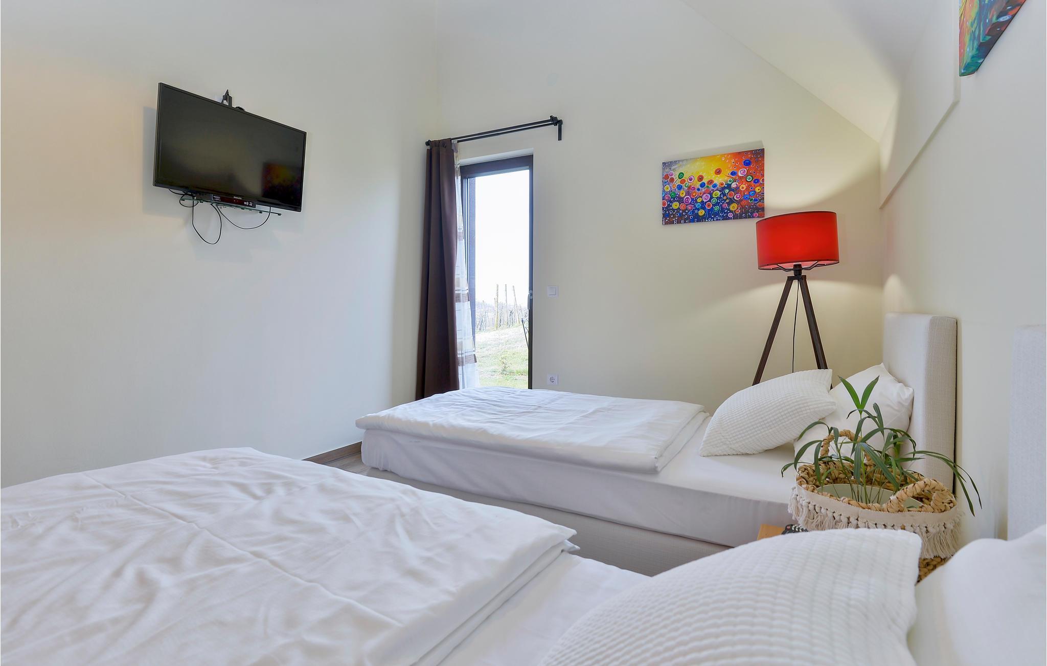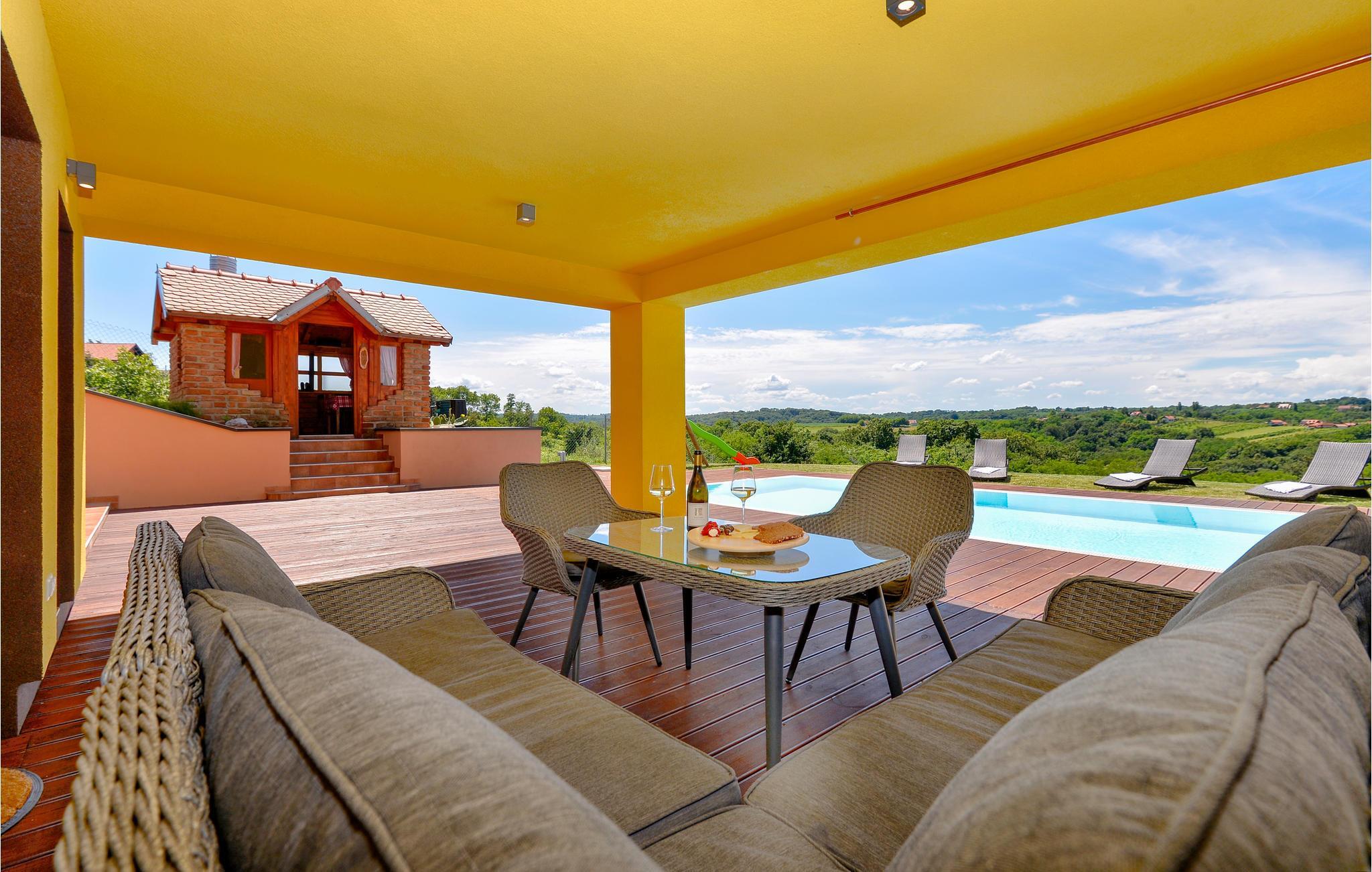 In der Nähe der Thermen von Sveti Martin na Muri befindet sich dieses Ferienhaus. Es ist geschmackvoll eingerichtet und bietet alles für einen entspannten Urlaub. Die Innenräume verteilen sich über zwei Etagen: das Erdgeschoss mit offener Küche, Wohnzimmer und Essbereich sowie einer Toilette und der 1. Stock mit 2 Schlafzimmern und 1 Bad. In dem einem Schlafzimmer gibt es eine Sauna und eine Hydromassage-Wanne, die Entspannung für Körper und Geist bieten. Genießen Sie das Erlebnis der Außenküche, wenn Sie hier an der frischen Luft Ihre Speisen zubereiten. Vor dem Haus steht Ihnen ein beheizter Pool mit Sonnenterrasse und Liegestühlen zur Verfügung.