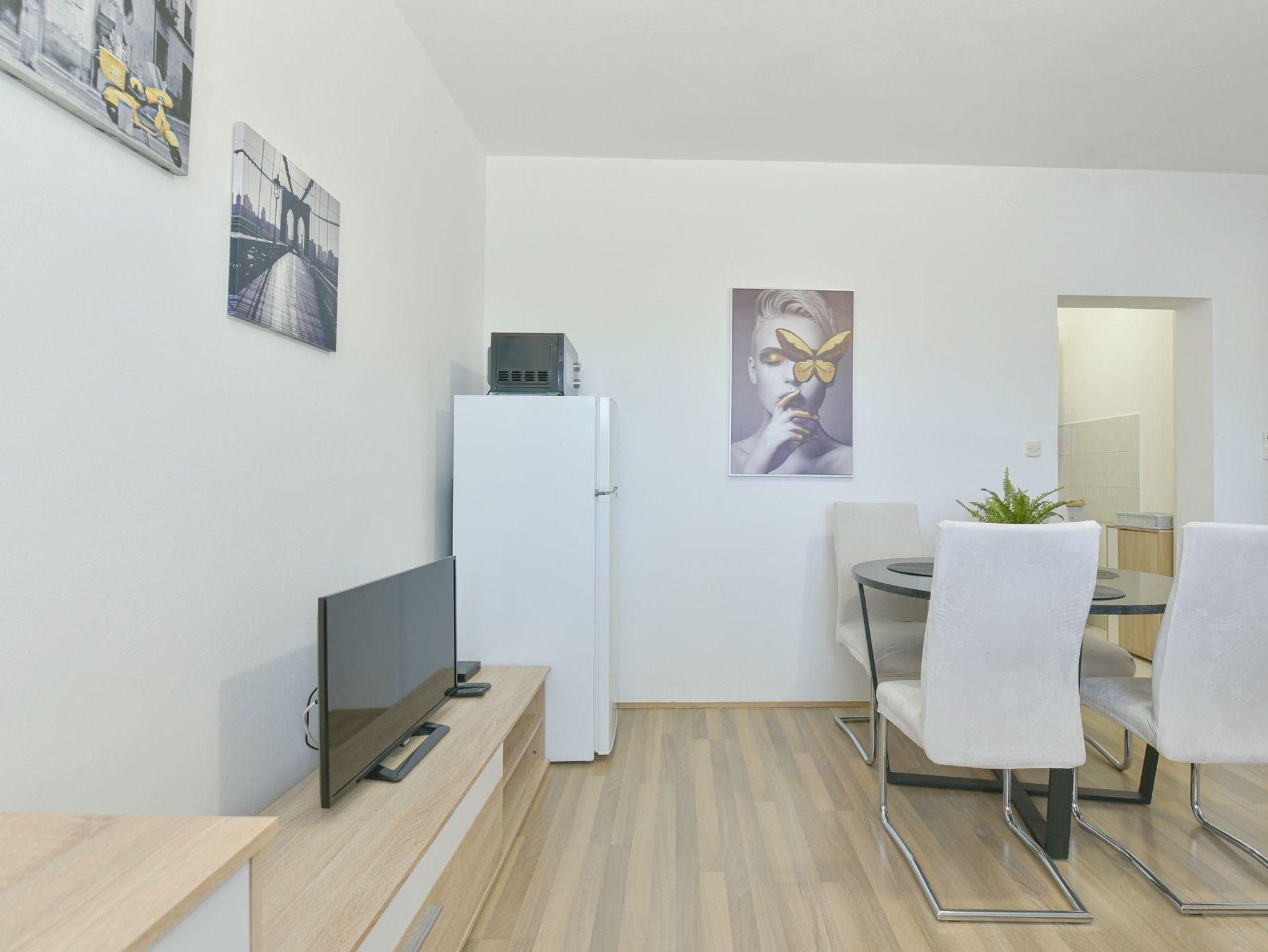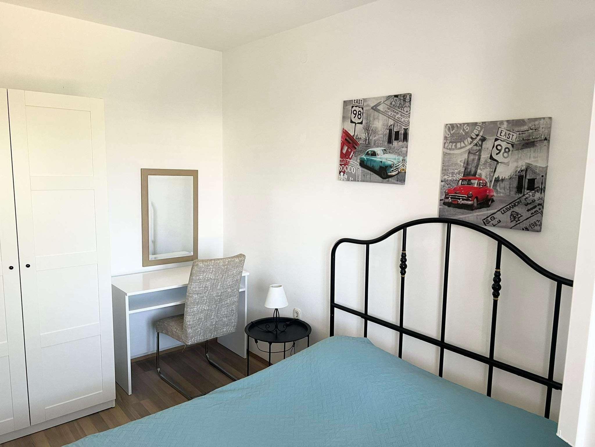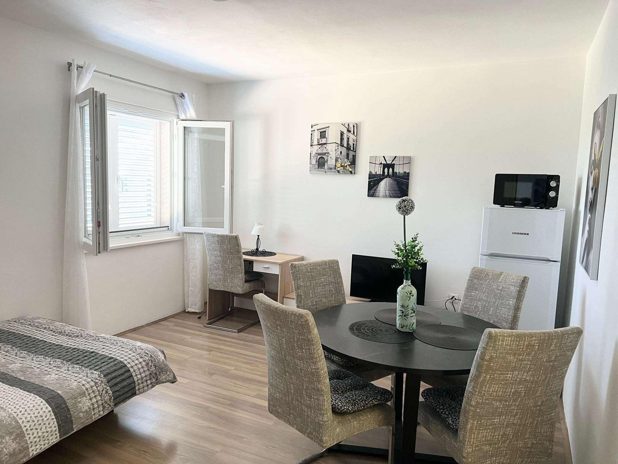 Ferienwohnung bietet Platz für 5 Gäste. Die Betten sind in Schlafzimmern, die es 1 gibt, und in Wohnzimmer, innerhalb einer Gesamtfläche von 36m2, angeordnet. Die Gäste haben eine eigene Terrasse zur Verfügung, auf der sie in warmen Sommernächten genießen können. Das Apartment bietet Meerblick. Es ist erlaubt, Speisen auf dem Gemeinschafts-Grill vorzubereiten. IM PREIS INBEGRIFFEN: Kurtaxe, Endreinigung, Klimatisierung, Parkplatz, Internet, Kinderbett, Bügeleisen, Bügelbrett. VERBINDLICHE ZUSÄTZLICHE KOSTEN: Aufzahlung für Kurzaufenthalte (prozentualer Zuschlag pro Nächtigungsanzahl: 30% - 1, 20% - 2, 10% - 3). Die Verfügbarkeit zusätzlicher Dienstleistungen in Ihrem reservierten Termin und die Preise derselben (falls nicht aufgeführt) müssen im Voraus überprüft werden. Zusätzliche Dienstleistungen die in der Zahlungsaufforderung nicht aufgeführt sind werden direkt beim Vermieter bezahlt, angenommen der Gast nutzt auch diese. Ermäßigung auf den Grundpreis: Gratistag 14=13 (bei einem Aufenthalt von 14 Tagen oder mehr erhalten Sie einen Gratistag für den Aufenthalt bis 31.12.26).