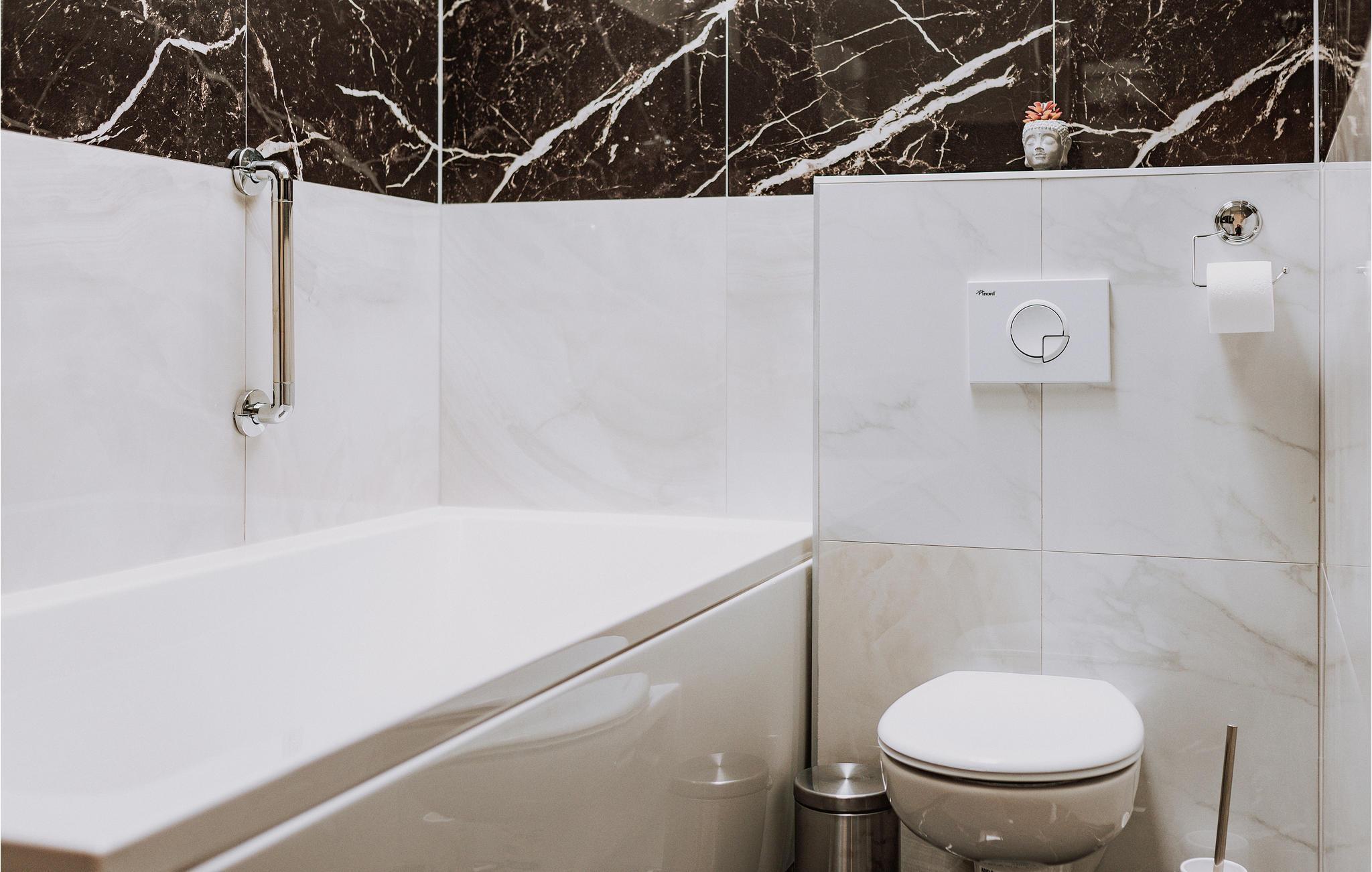 Badezimmer (nr. 2) - WC. Warmes und kaltes Wasser. Handdusche und Badewanne