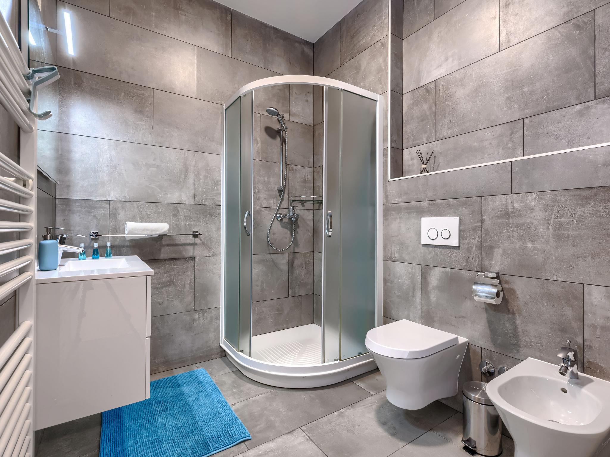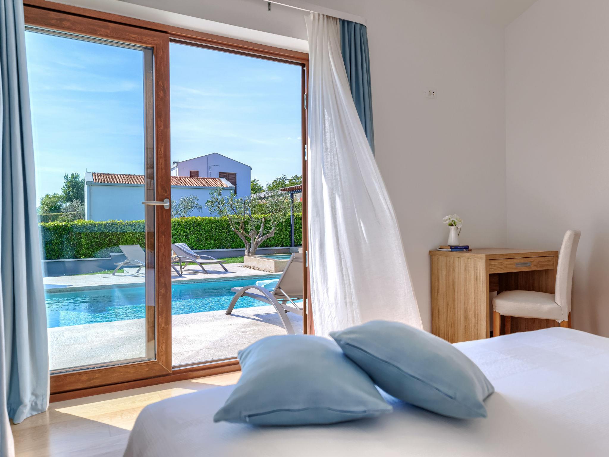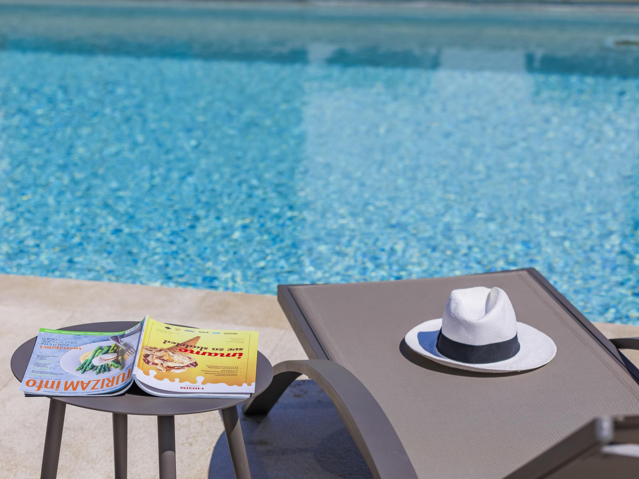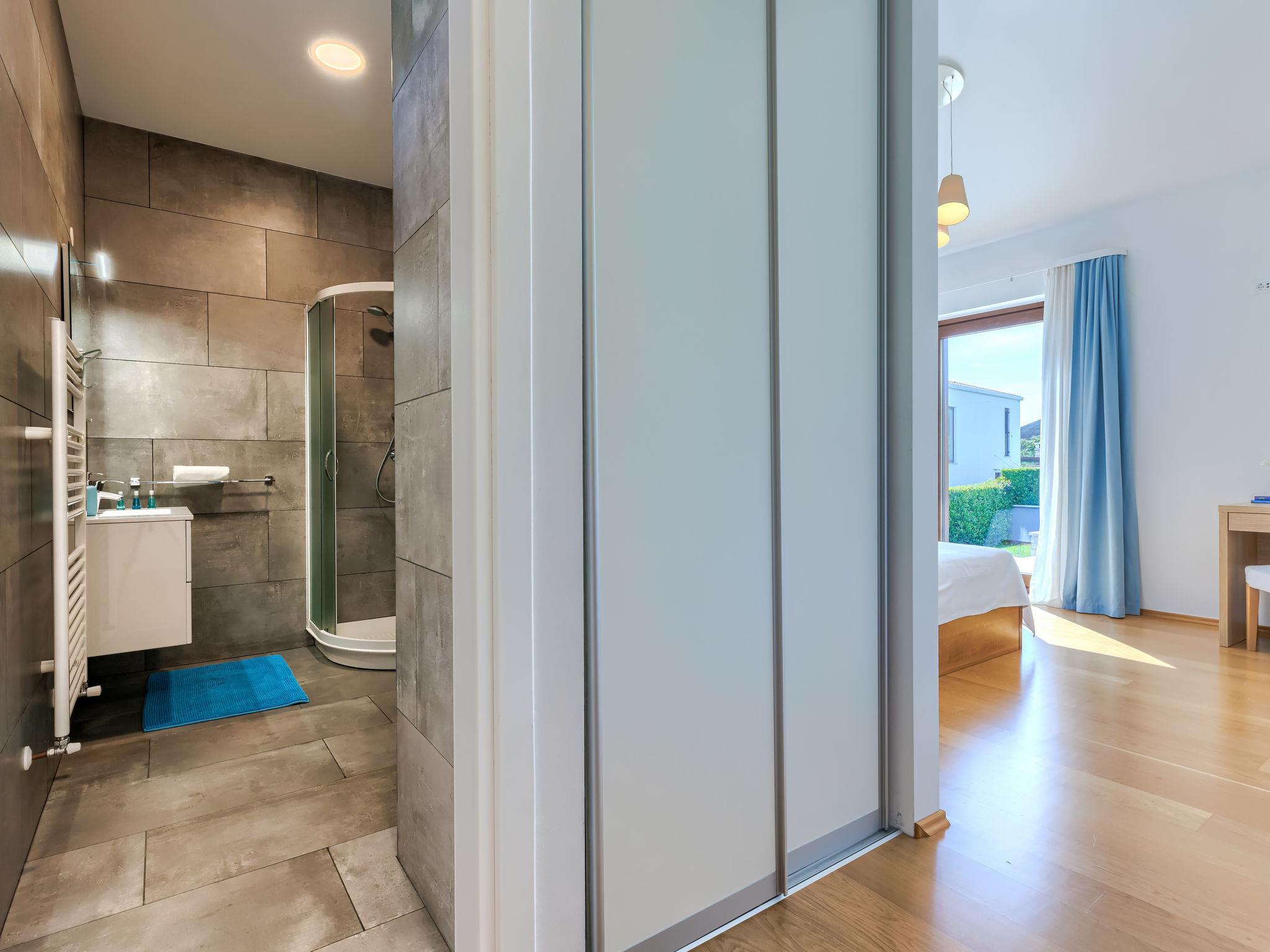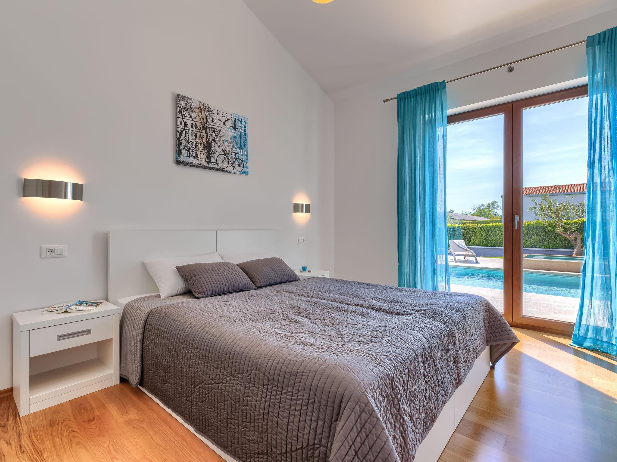 Modern villa "Luna Bianca", built in 2016. 6 km from the centre of Žminj, 13 km from the centre of Pazin, in a quiet, sunny position, 27 km from the sea. Private: property 900 m2, beautiful, well-kept garden with lawn, swimming pool angular (9 x 4 m, depth 140 cm, seasonal availability: 01.Jan. - 31.Dec.) with internal staircase. Outdoor shower, hot tub, terrace (18 m2), garden furniture, barbecue. In the house: internet access, washing machine, tumble dryer. Parking (for 2 cars) at the house on the premises. Shop 600 m, supermarket 6 km, restaurant 1 km, café 400 m, bus stop 6.7 km, railway station 500 m, pebble beach 27 km. Riding stable 7 km, walking paths from the house 1 km, cycle lane 1 km. Groups of teenagers on request only.