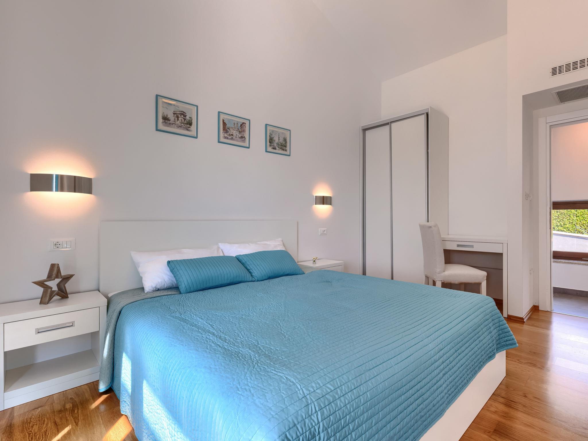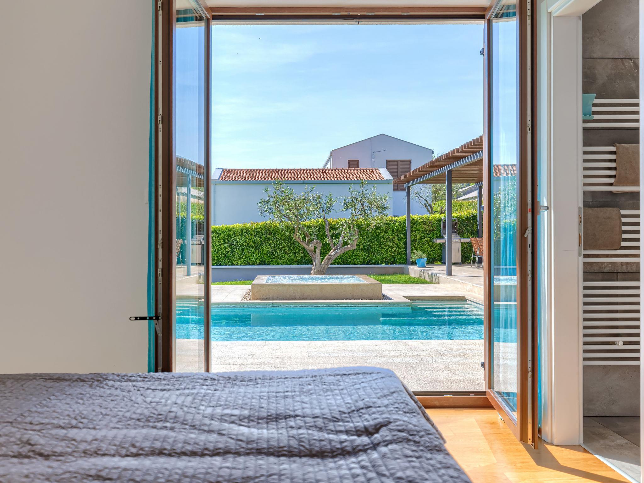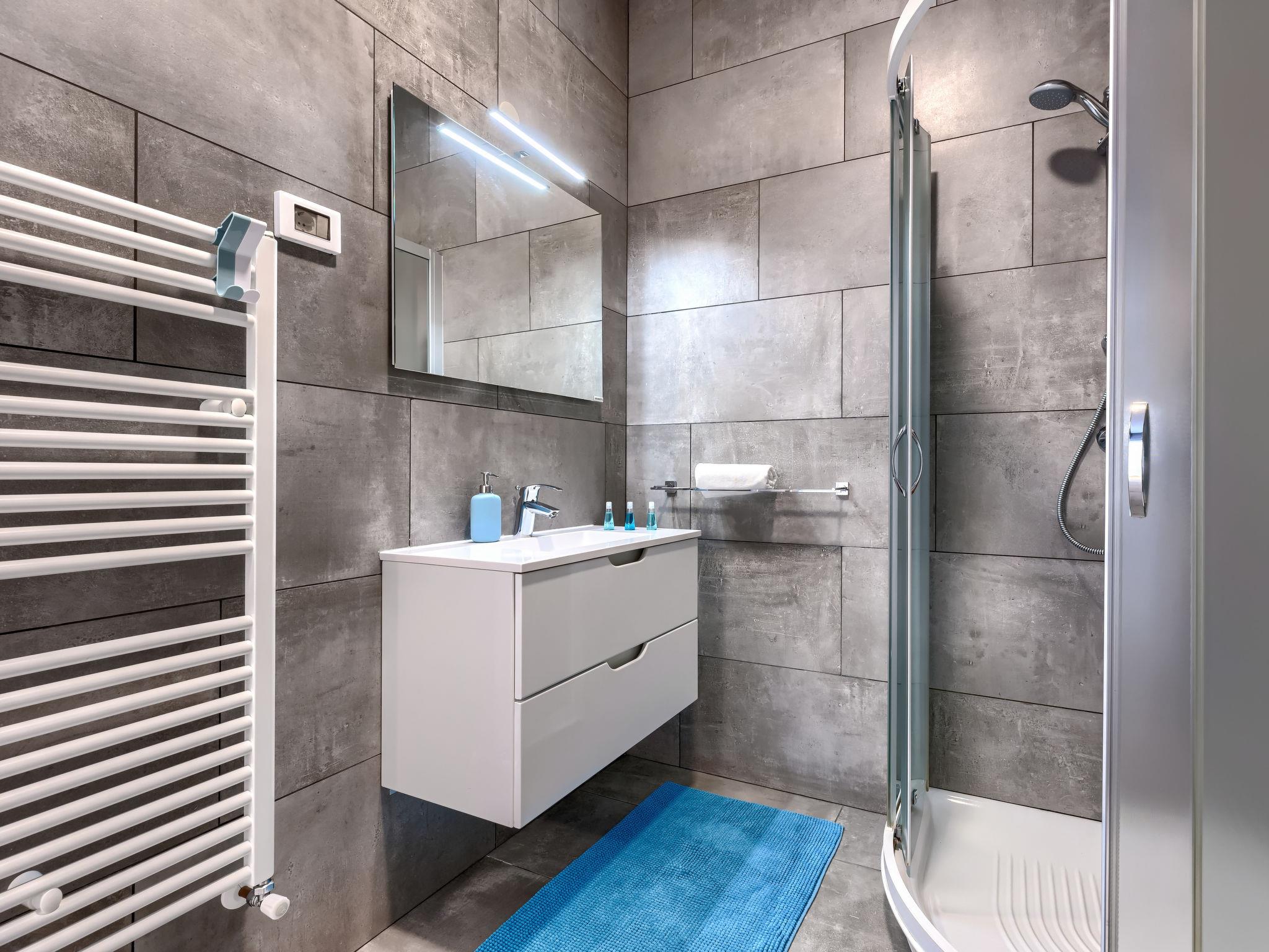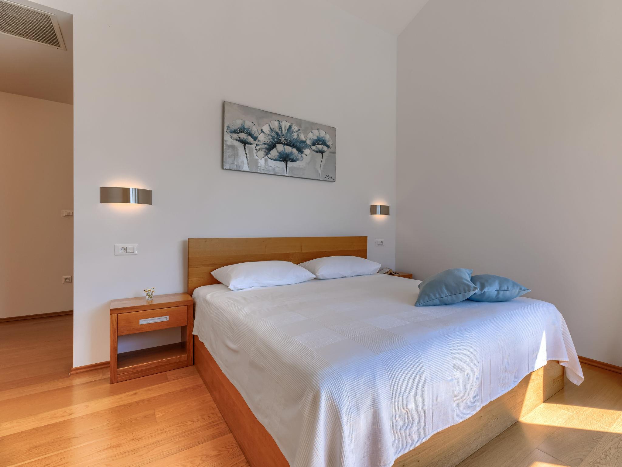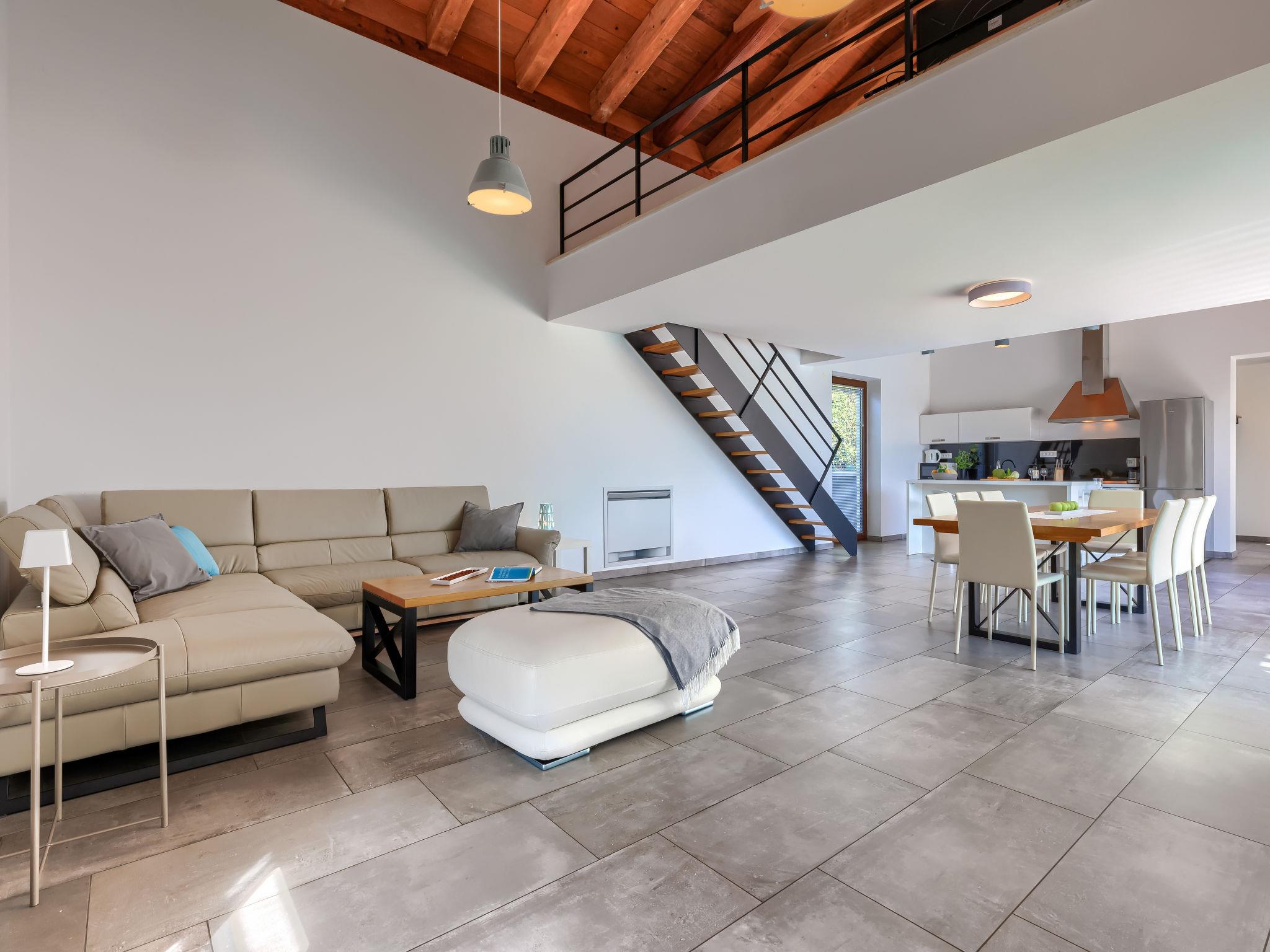 Modern villa "Luna Bianca", built in 2016. 6 km from the centre of Žminj, 13 km from the centre of Pazin, in a quiet, sunny position, 27 km from the sea. Private: property 900 m2, beautiful, well-kept garden with lawn, swimming pool angular (9 x 4 m, depth 140 cm, seasonal availability: 01.Jan. - 31.Dec.) with internal staircase. Outdoor shower, hot tub, terrace (18 m2), garden furniture, barbecue. In the house: internet access, washing machine, tumble dryer. Parking (for 2 cars) at the house on the premises. Shop 600 m, supermarket 6 km, restaurant 1 km, café 400 m, bus stop 6.7 km, railway station 500 m, pebble beach 27 km. Riding stable 7 km, walking paths from the house 1 km, cycle lane 1 km. Groups of teenagers on request only.