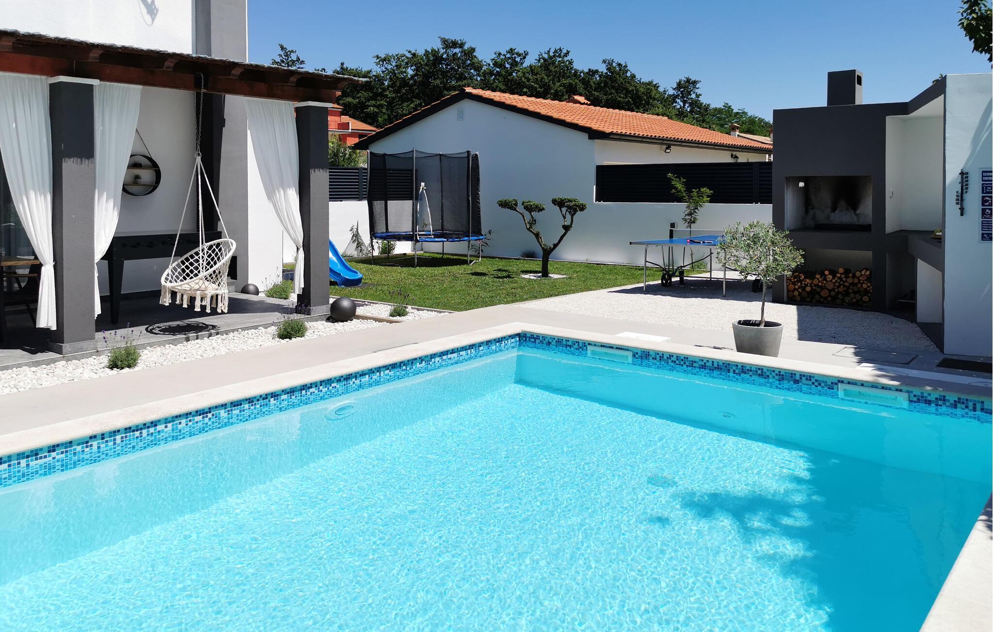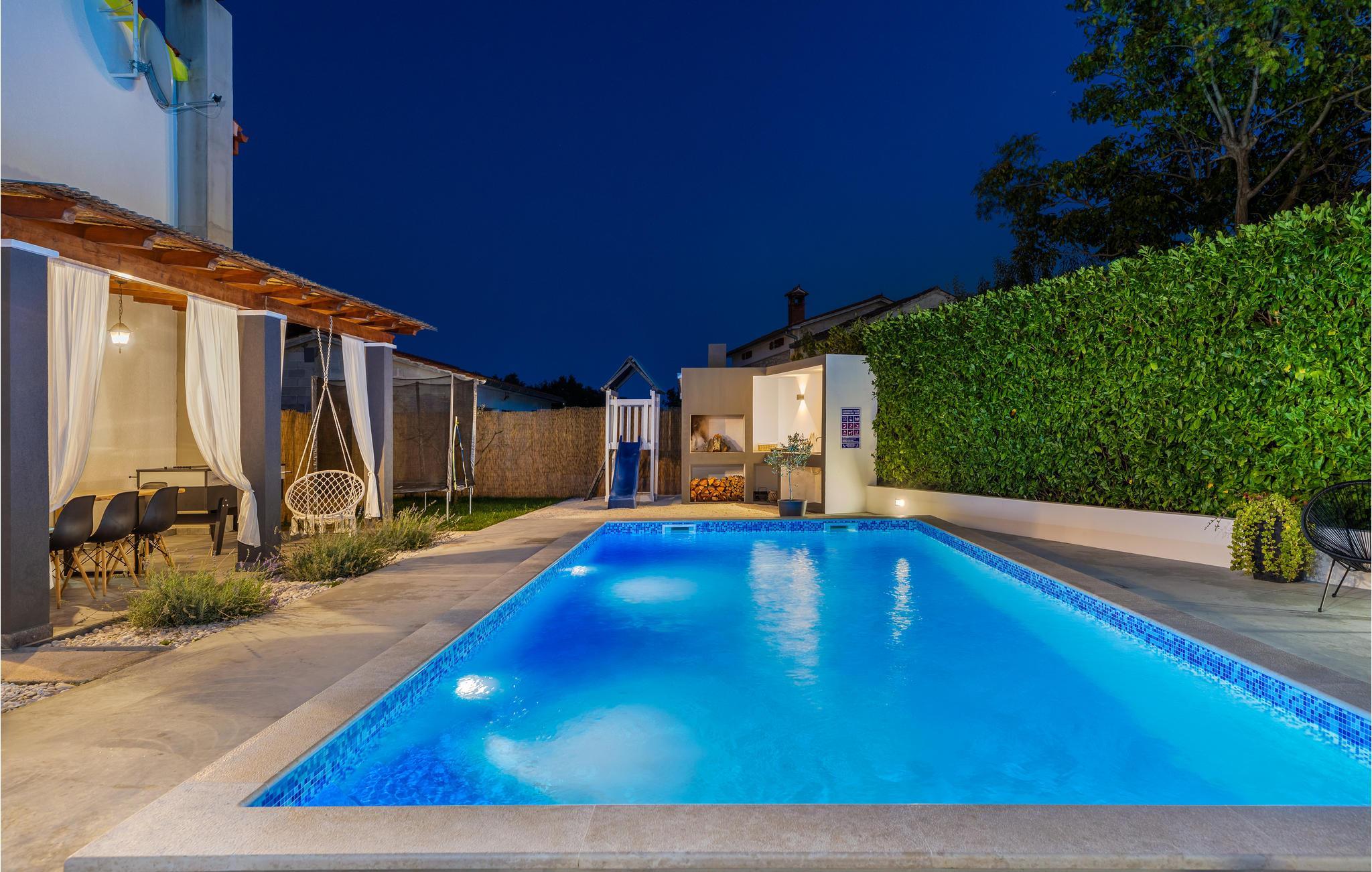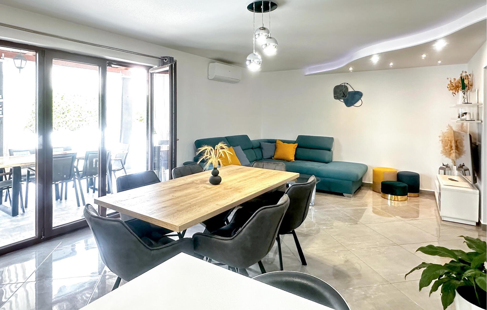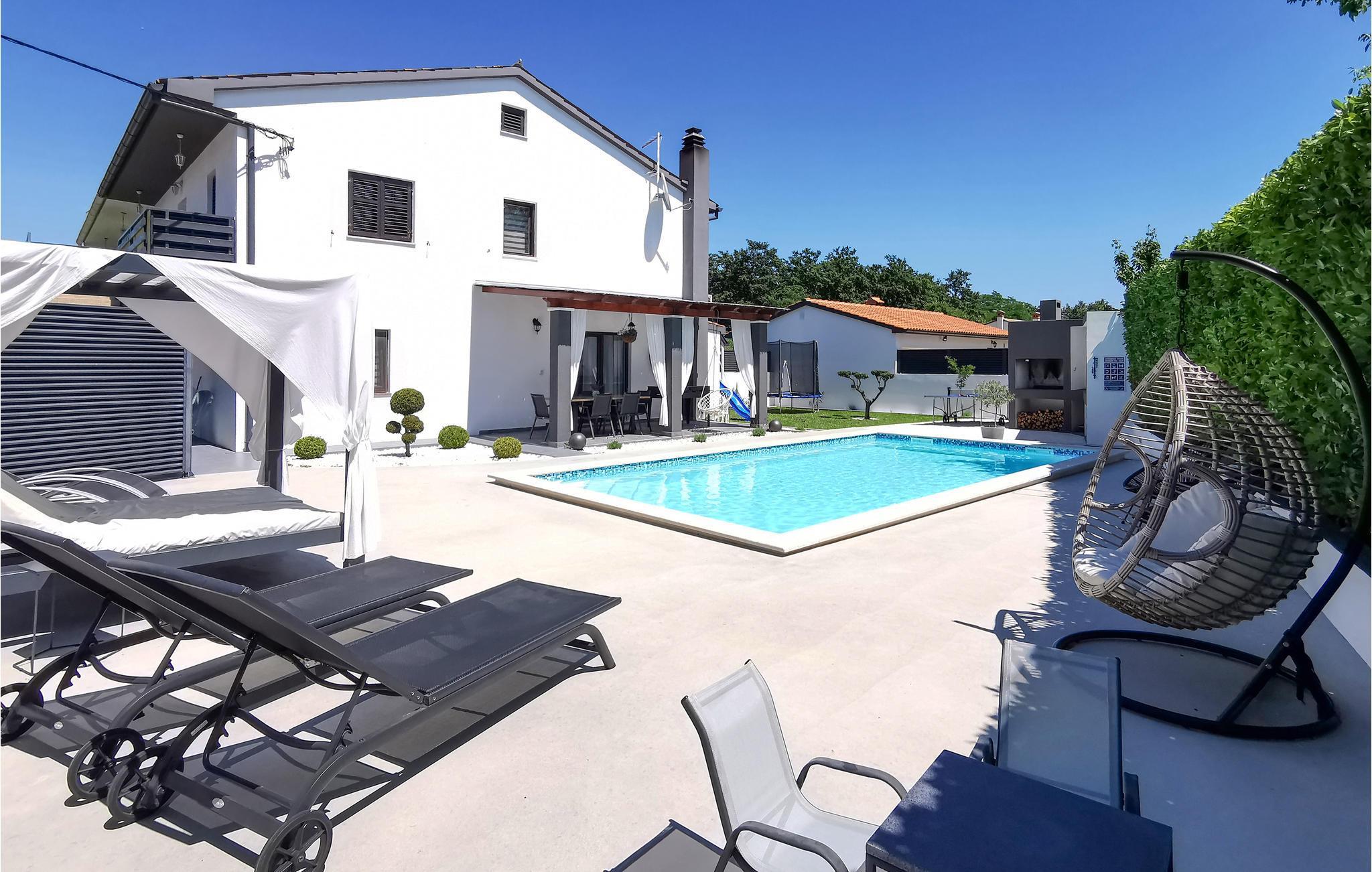 Diese geräumige und modern eingerichtete Ferienwohnung befindet sich im Erdgeschoss. Sie ist mit zahlreichen Details dekoriert, die ihr einen besonderen Charme verleihen. Drei Schlafzimmer stehen zur Verfügung, von denen eines besonders für jüngere Familienmitglieder geeignet ist. Vom Wohnraum aus kommen Sie auf die Terrasse, wo Sie Ihren Morgenkaffee genießen können. Nur ca. 50 m von der Unterkunft befindet sich ein kleiner Park für die Kleinsten. Wir empfehlen Ihnen von dieser Ferienwohnung aus, im kleinen Ort Režanci, die beliebten Orte Pula, Rovinj, Porec und Pazin zu besuchen. Auf dem Grundstück steht Ihnen ein Swimmingpool zur Verfügung.