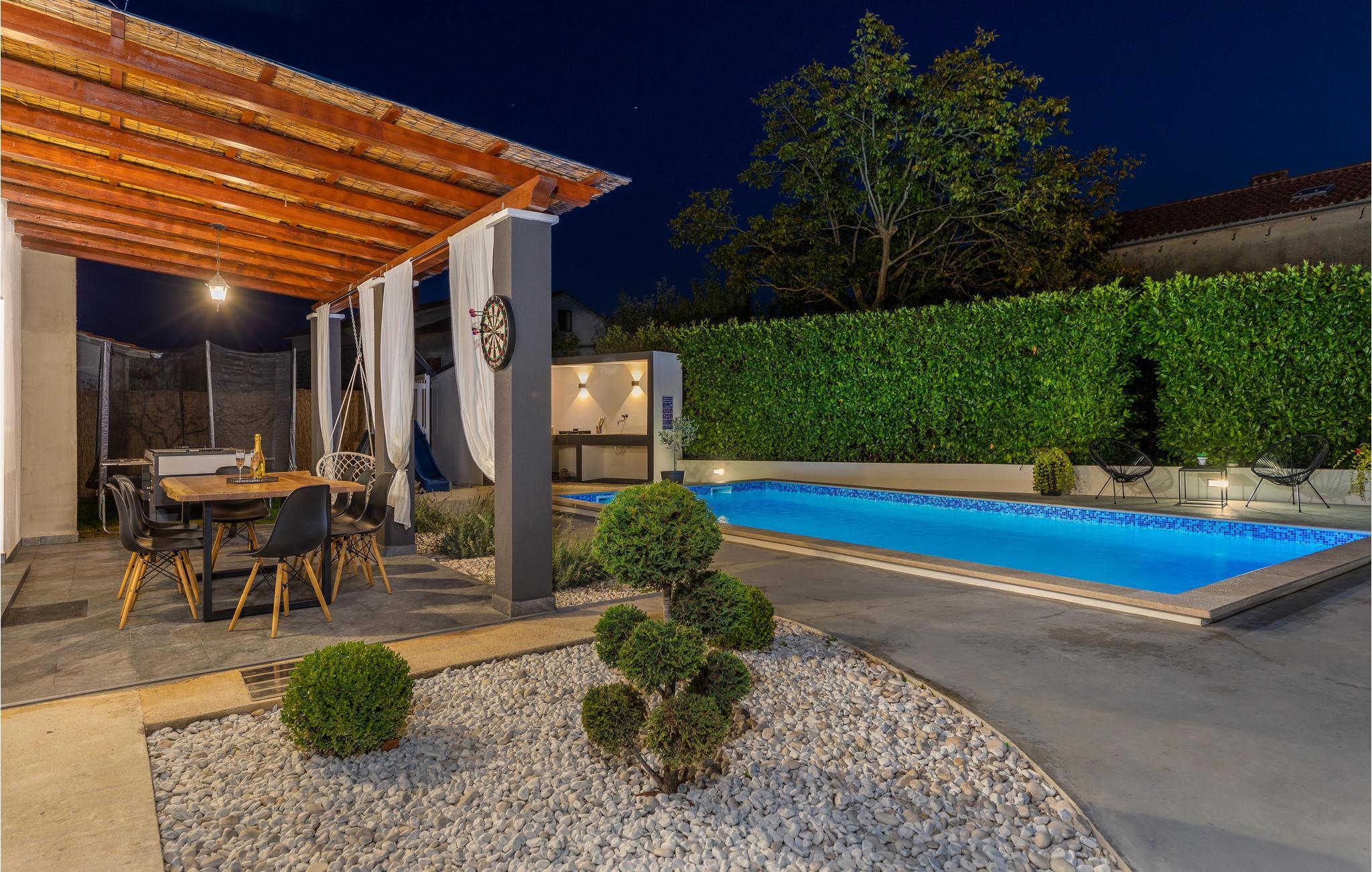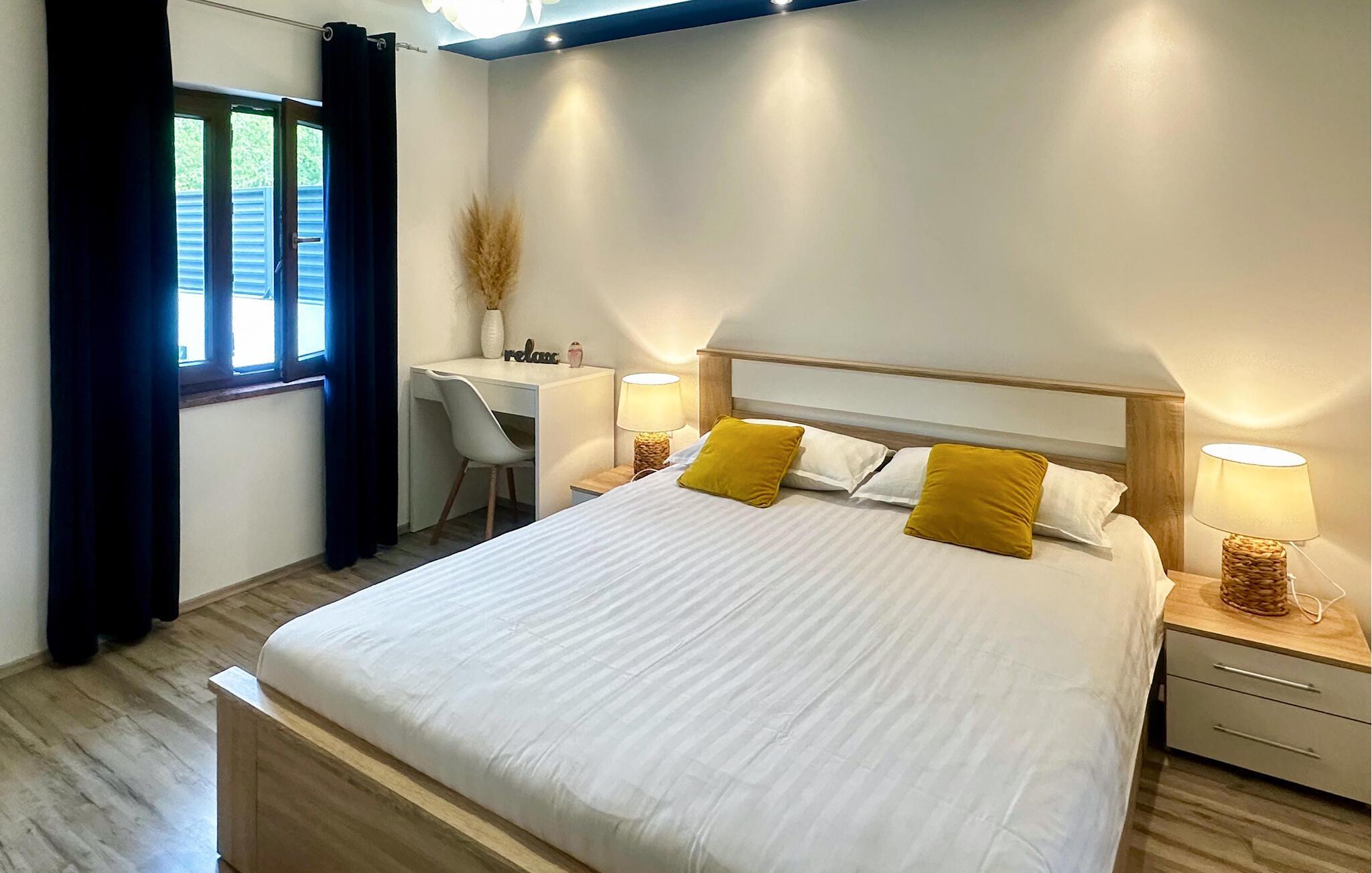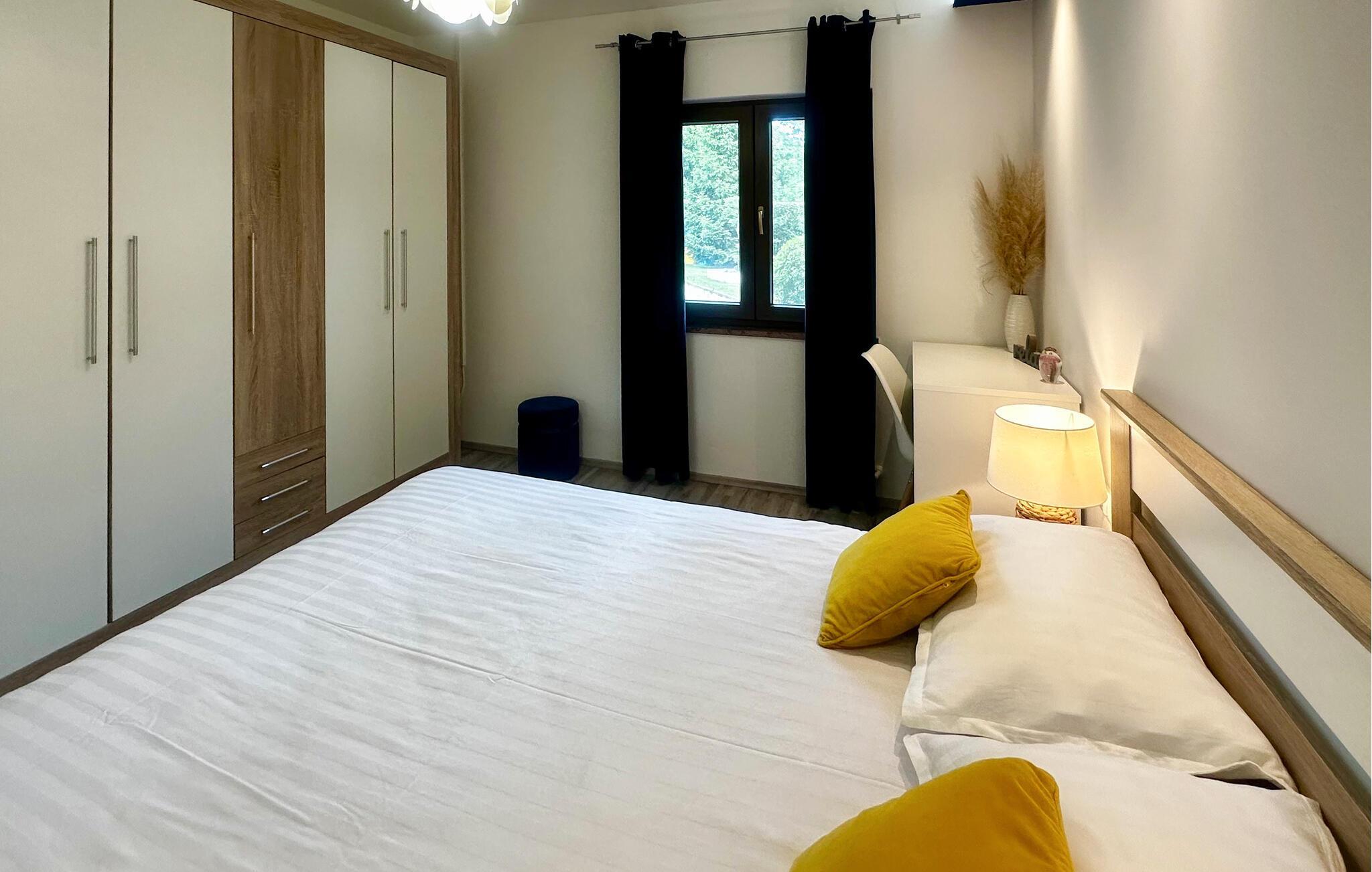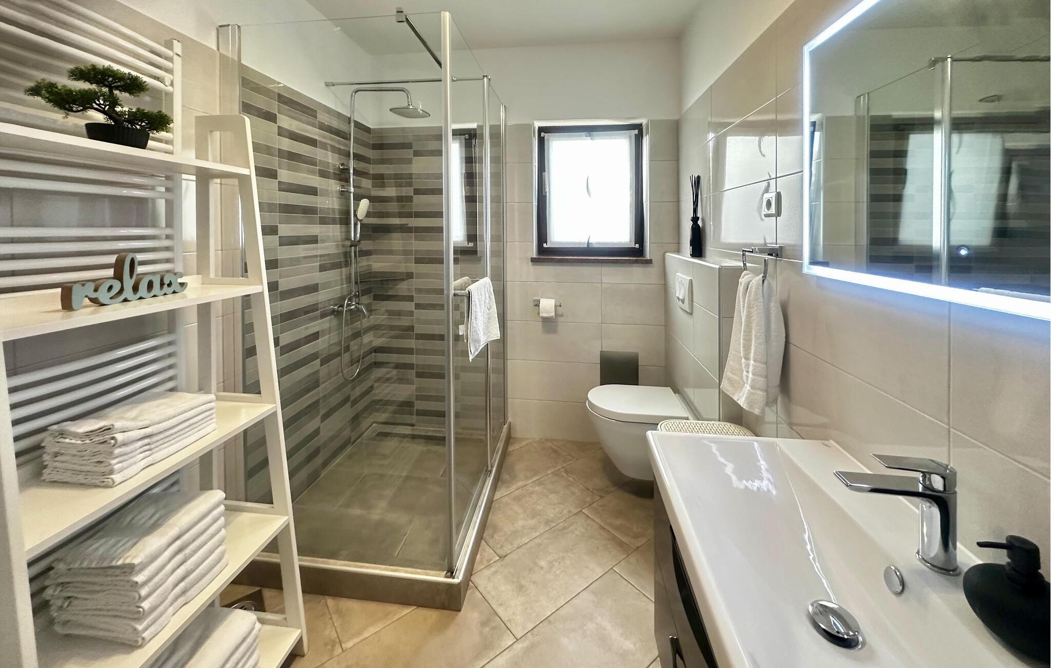 Diese geräumige und modern eingerichtete Ferienwohnung befindet sich im Erdgeschoss. Sie ist mit zahlreichen Details dekoriert, die ihr einen besonderen Charme verleihen. Drei Schlafzimmer stehen zur Verfügung, von denen eines besonders für jüngere Familienmitglieder geeignet ist. Vom Wohnraum aus kommen Sie auf die Terrasse, wo Sie Ihren Morgenkaffee genießen können. Nur ca. 50 m von der Unterkunft befindet sich ein kleiner Park für die Kleinsten. Wir empfehlen Ihnen von dieser Ferienwohnung aus, im kleinen Ort Režanci, die beliebten Orte Pula, Rovinj, Porec und Pazin zu besuchen. Auf dem Grundstück steht Ihnen ein Swimmingpool zur Verfügung.