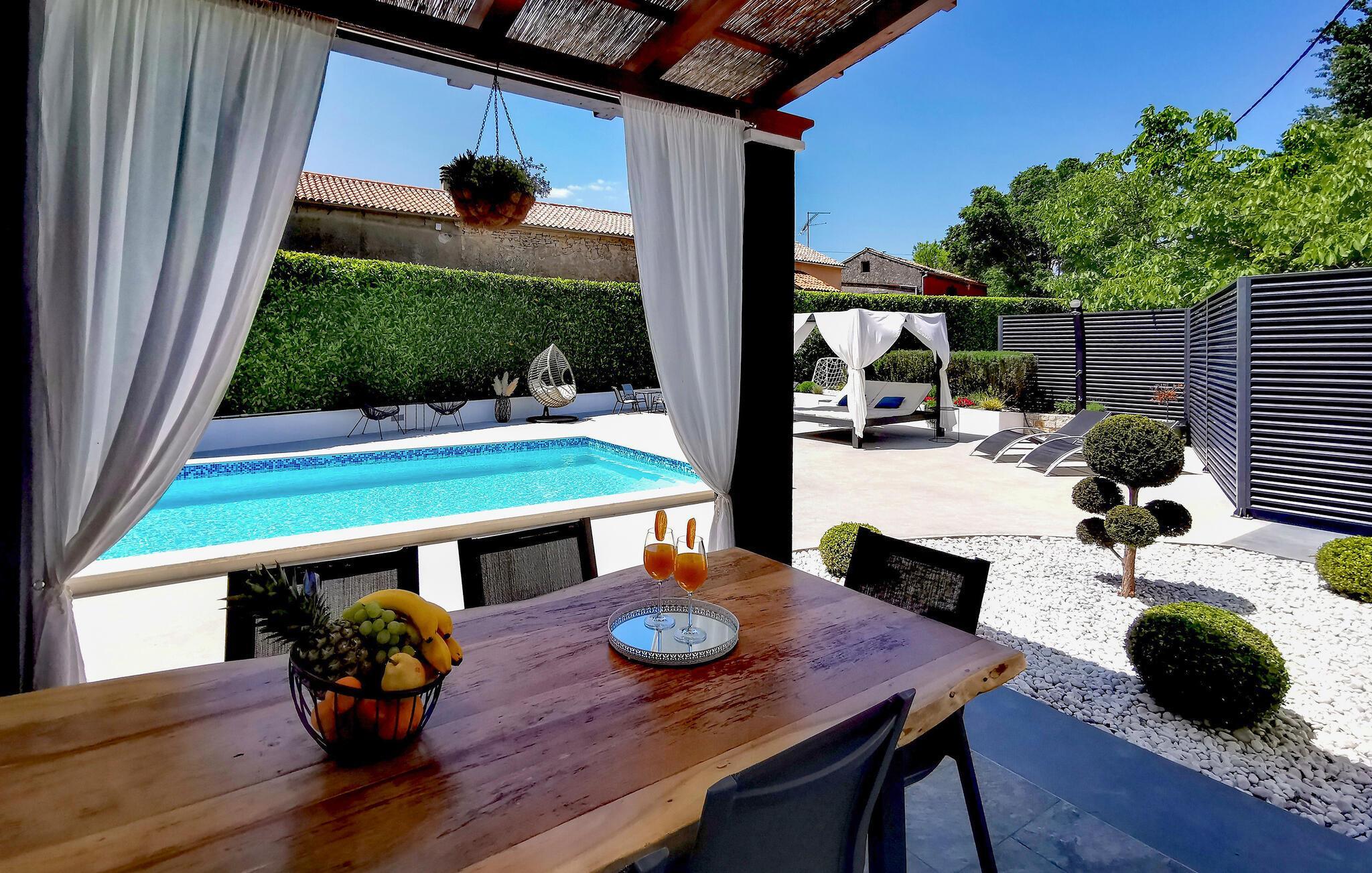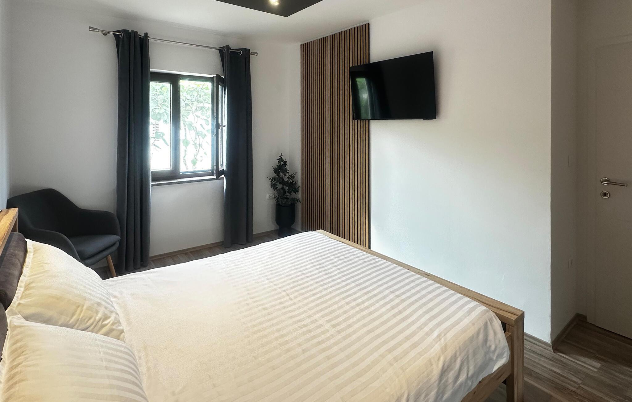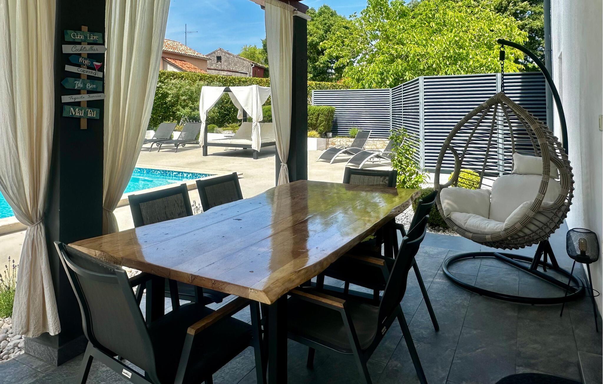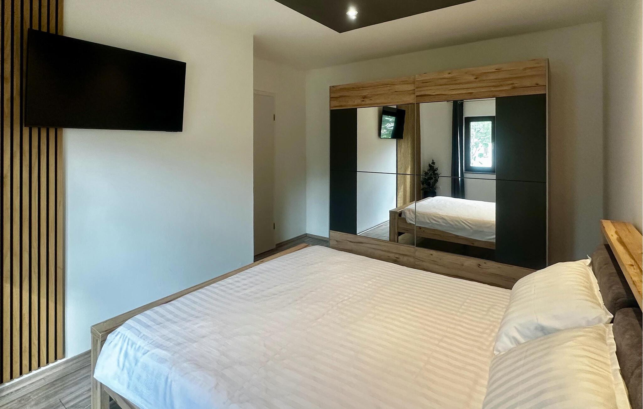 Diese geräumige und modern eingerichtete Ferienwohnung befindet sich im Erdgeschoss. Sie ist mit zahlreichen Details dekoriert, die ihr einen besonderen Charme verleihen. Drei Schlafzimmer stehen zur Verfügung, von denen eines besonders für jüngere Familienmitglieder geeignet ist. Vom Wohnraum aus kommen Sie auf die Terrasse, wo Sie Ihren Morgenkaffee genießen können. Nur ca. 50 m von der Unterkunft befindet sich ein kleiner Park für die Kleinsten. Wir empfehlen Ihnen von dieser Ferienwohnung aus, im kleinen Ort Režanci, die beliebten Orte Pula, Rovinj, Porec und Pazin zu besuchen. Auf dem Grundstück steht Ihnen ein Swimmingpool zur Verfügung.