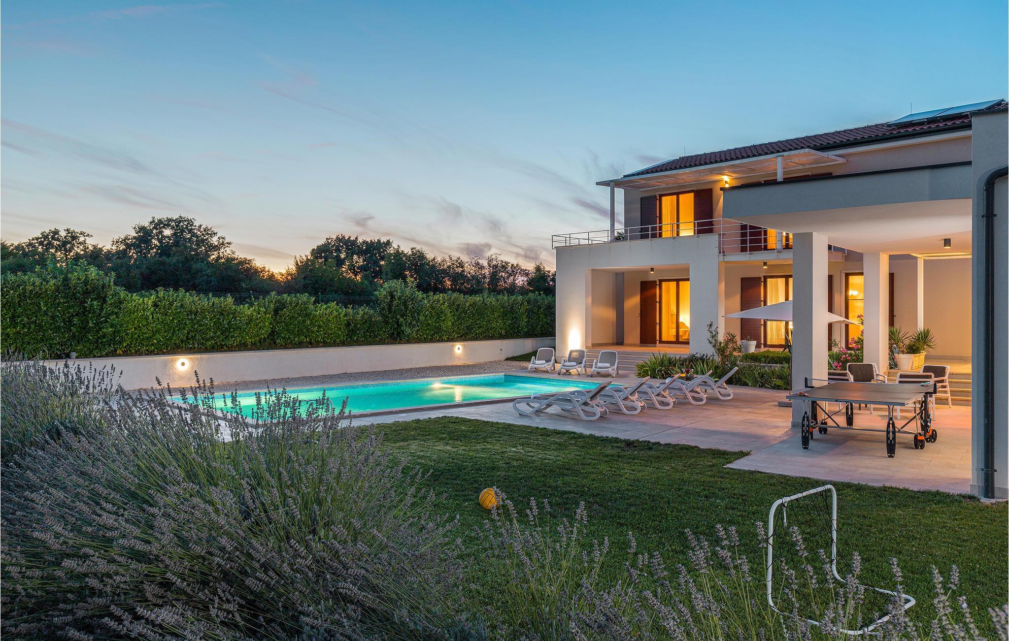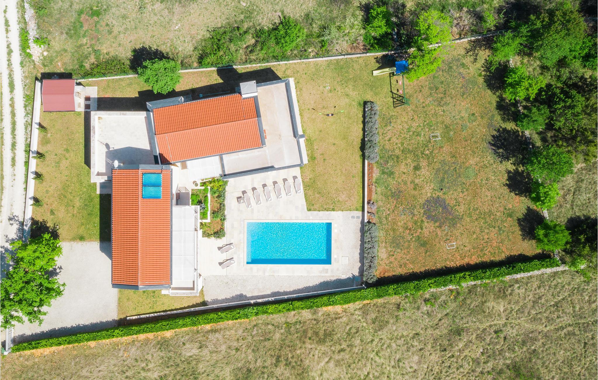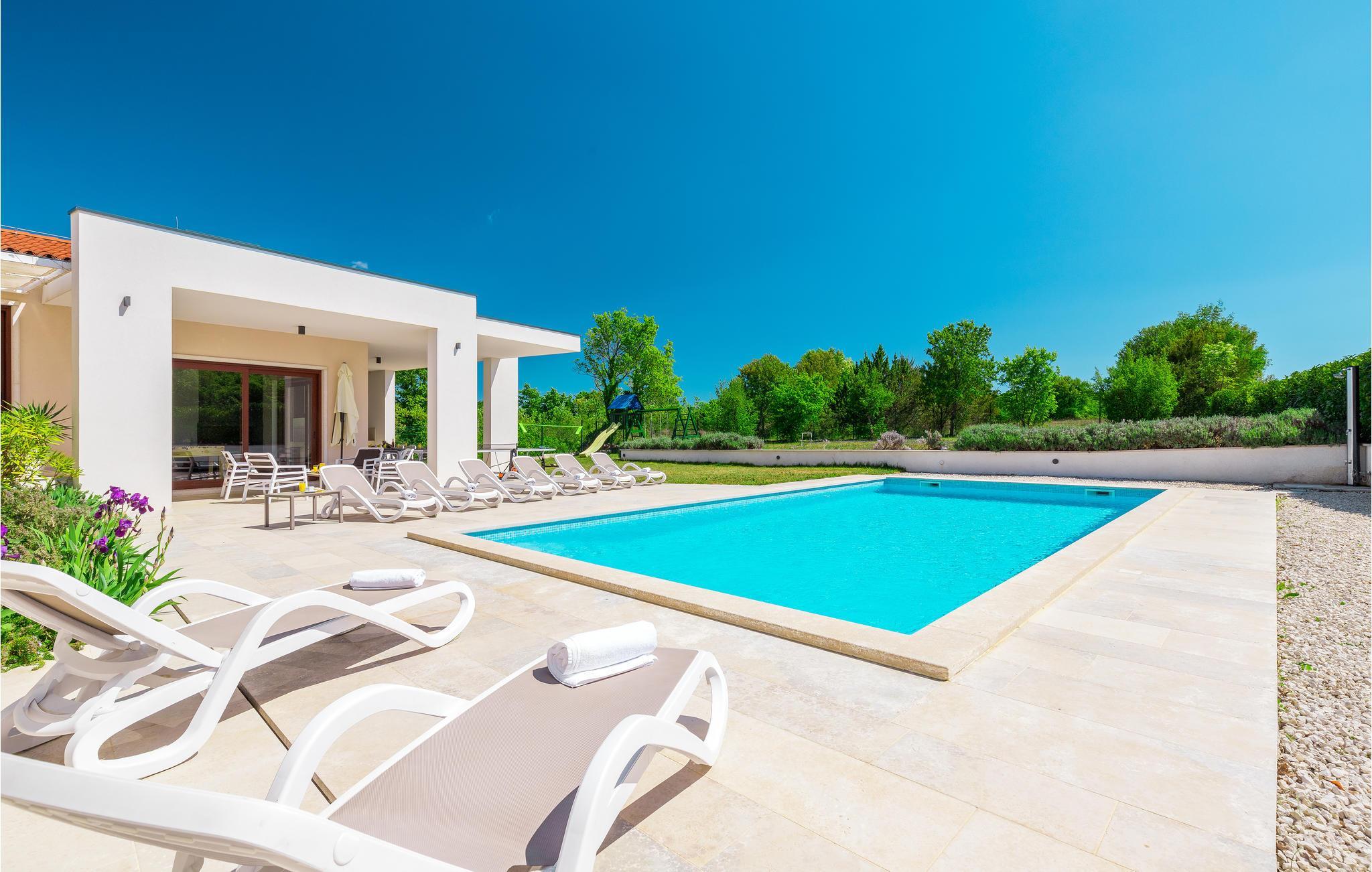 Dieses schöne Ferienhaus liegt im Ort Stokovci. Angepasst an den heutigen Lifestyle mit modernem Interieur bietet es einen unbeschwerten Urlaub für die ganze Familie. Das Erdgeschoss verfügt über ein geräumiges Wohnzimmer mit Kamin, Küche, Terrasse mit Blick auf den Pool und zwei Schlafzimmer. Im 1.Stock gibt es weitere Schlafzimmer und zwei Bäder. Im Pool können Sie sich abkühlen; wenn Sie aber an Ausflügen interessiert sind, empfehlen wir, 6 km entfernt, den Ort Svetvincenat mit einem alten Schloss. Besuchen Sie die nahe Stadt Vodnjan mit vielen Sehenswürdigkeiten wie die St. Blasius-Kirche mit Reliquien. In Restaurants erwarten Sie kulinarische Spezialitäten der Region mit Olivenöl und köstlichen Weinen.