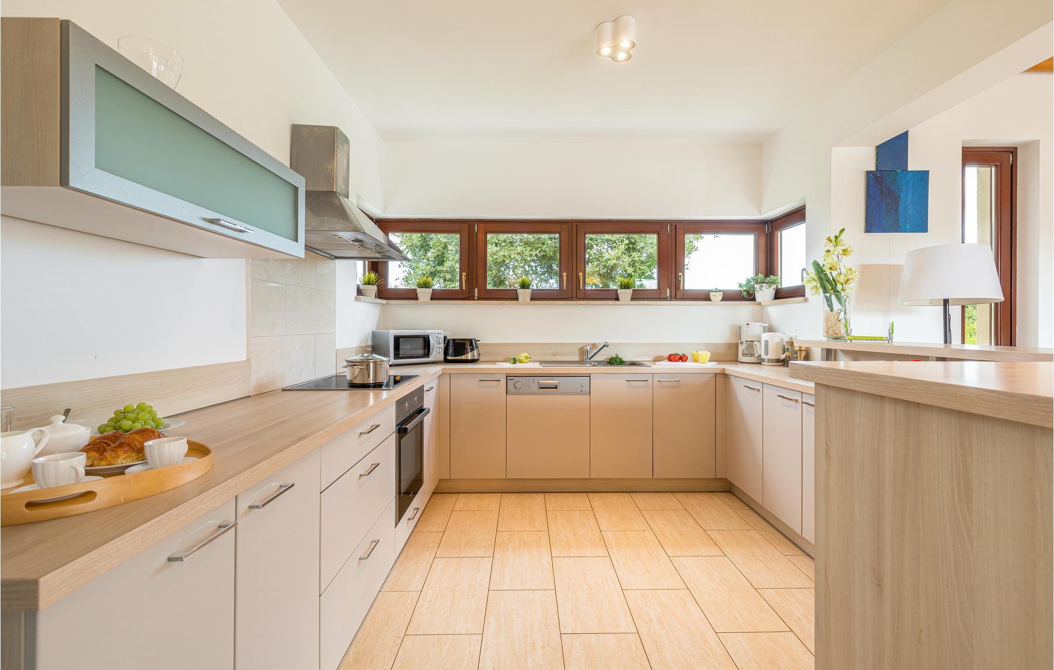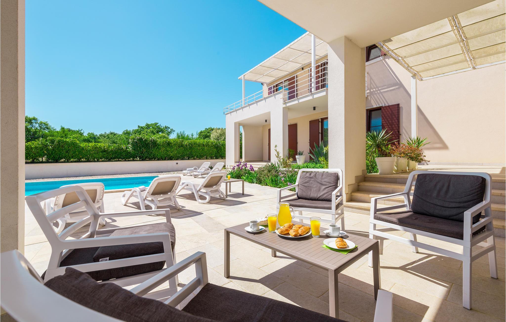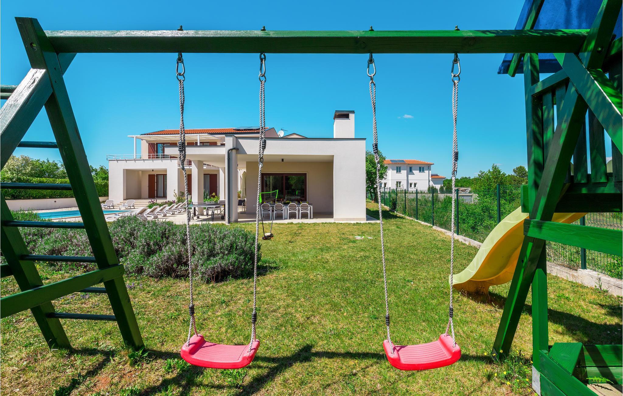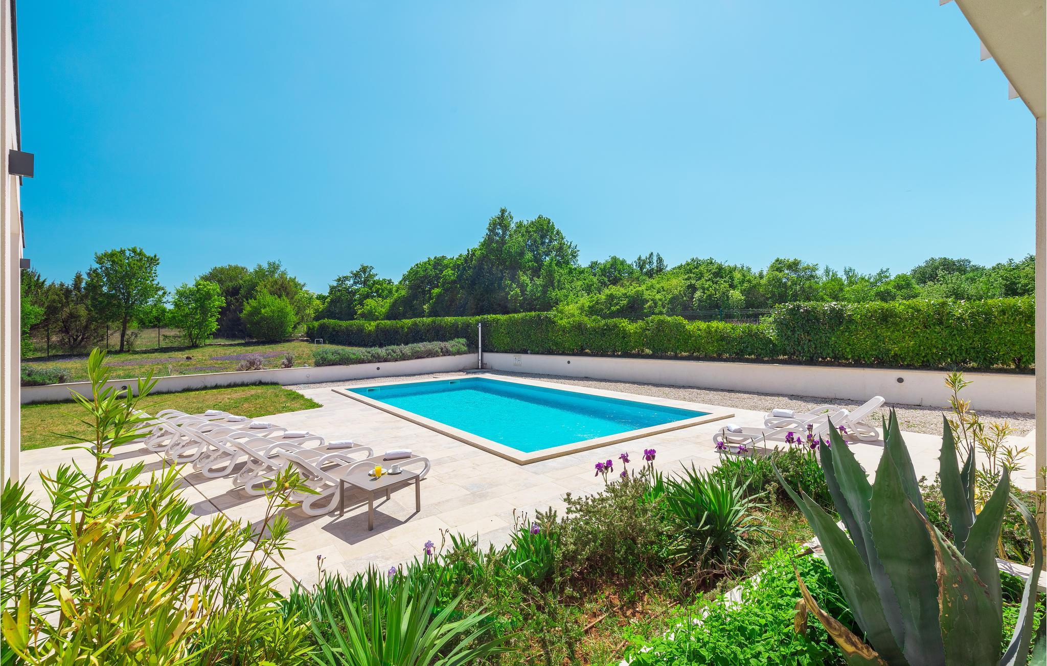 Dieses schöne Ferienhaus liegt im Ort Stokovci. Angepasst an den heutigen Lifestyle mit modernem Interieur bietet es einen unbeschwerten Urlaub für die ganze Familie. Das Erdgeschoss verfügt über ein geräumiges Wohnzimmer mit Kamin, Küche, Terrasse mit Blick auf den Pool und zwei Schlafzimmer. Im 1.Stock gibt es weitere Schlafzimmer und zwei Bäder. Im Pool können Sie sich abkühlen; wenn Sie aber an Ausflügen interessiert sind, empfehlen wir, 6 km entfernt, den Ort Svetvincenat mit einem alten Schloss. Besuchen Sie die nahe Stadt Vodnjan mit vielen Sehenswürdigkeiten wie die St. Blasius-Kirche mit Reliquien. In Restaurants erwarten Sie kulinarische Spezialitäten der Region mit Olivenöl und köstlichen Weinen.