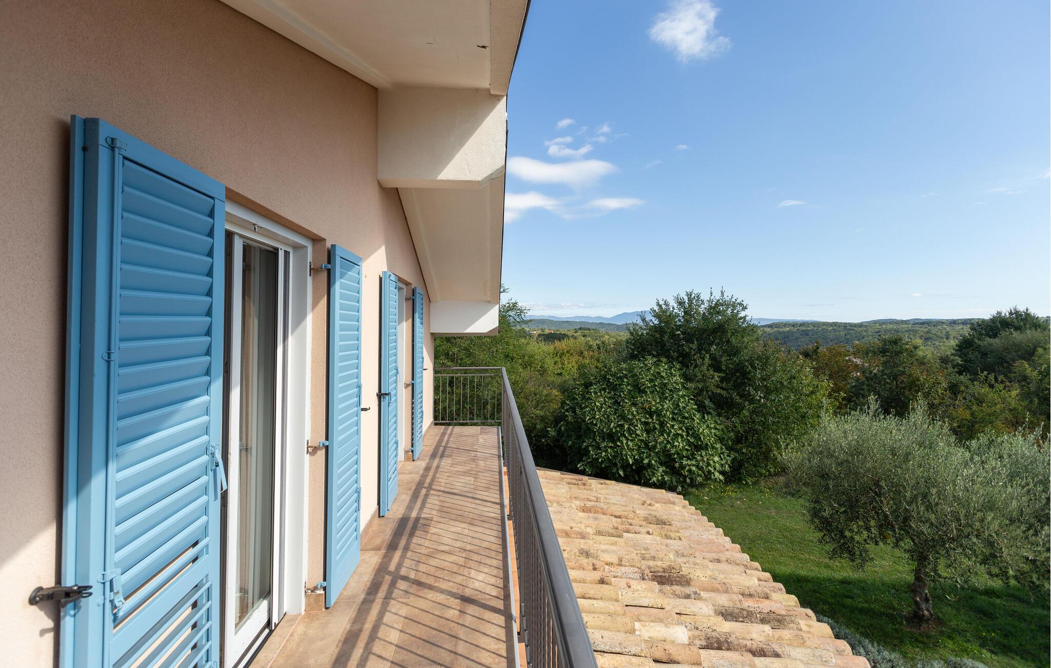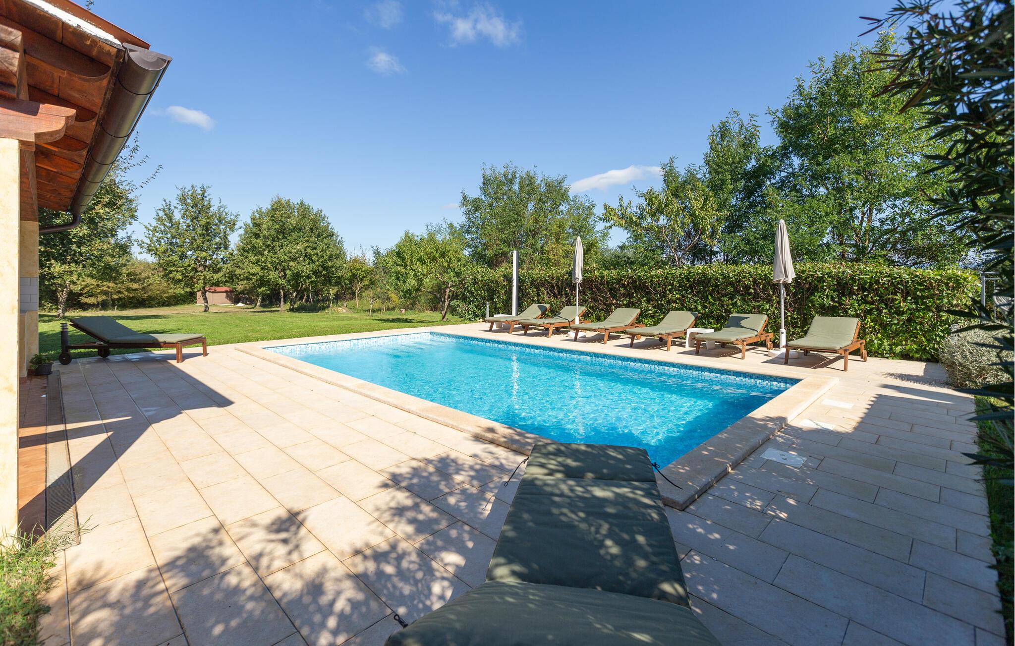 Dieses schöne Ferienhaus mit Pool liegt in der malerischen Landschaft des Inland Istriens. Auf drei Seiten umgeben von viel Grün, bietet es Ruhe und Privatsphäre in einer natürlichen Umgebung. Die geräumigen und komfortablen Innenräume erstrecken sich über zwei Etagen (Innentreppe). Im Erdgeschoss gibt es einen Raum mit Tischtennis und Tischfußball, also Aktivitäten, die den Aufenthalt in diesem komfortablen Haus ergänzen. Im heißen Sommer bietet ein Pool und das Sonnendeck Erfrischung und Entspannung. Erkunden Sie die idyllische Landschaft des zentralen Istriens und kommen Sie dabei an Agrotourismusbetrieben vorbei. Oder besuchen Sie die schönen Städte an der Küste.