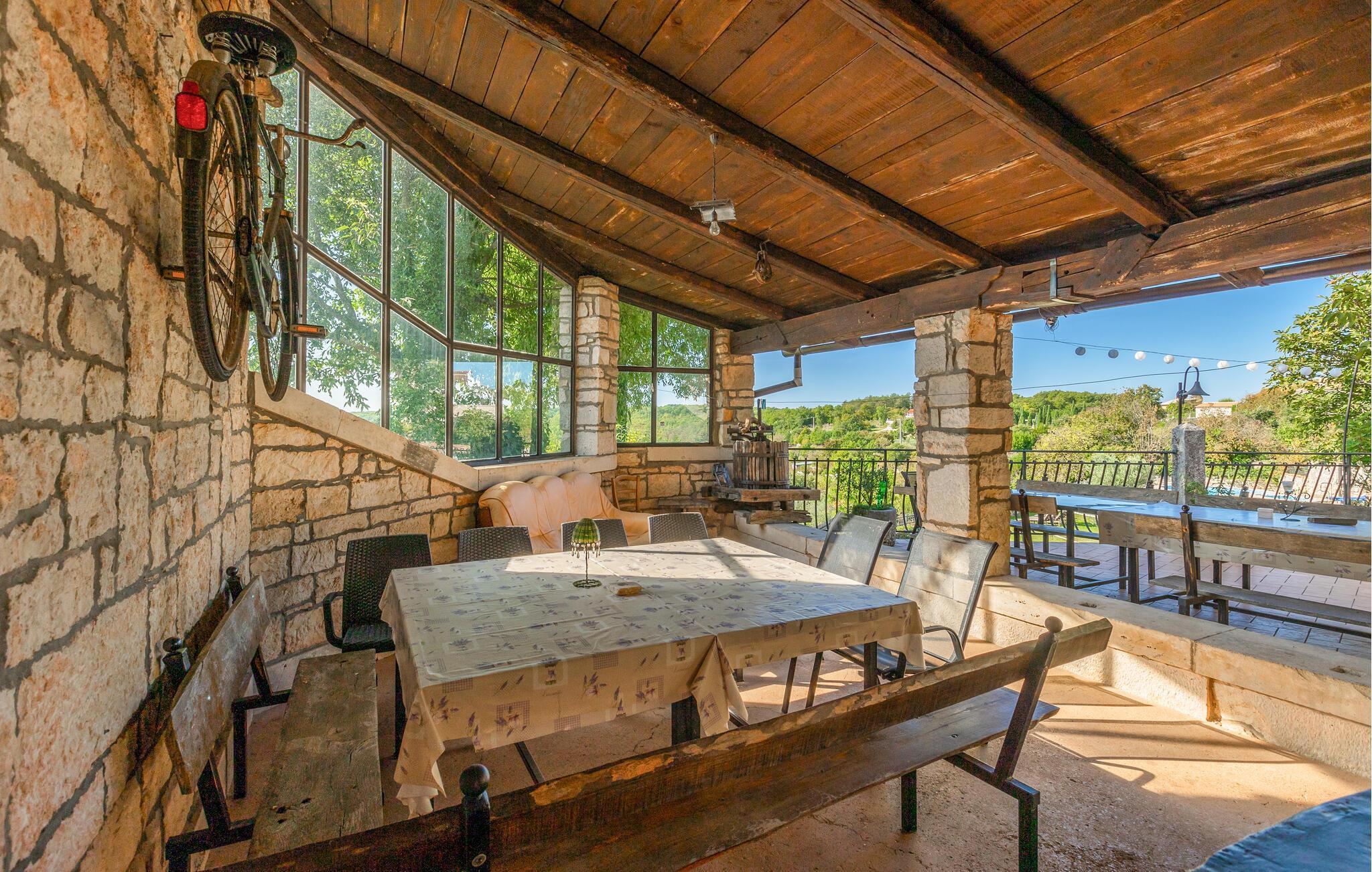 Gelegen im kleinen Ort namens Tinjan im Herzen Istriens, eignet sich die tolle und geräumige Villa Gigi perfekt für größere Besuchergruppen. Die großzügige Terrasse mit privatem Pool und wunderschönem Blick auf die Bucht von Lim hat alles, was Sie für einen unvergesslichen Urlaub mit Familie und Freunden brauchen.