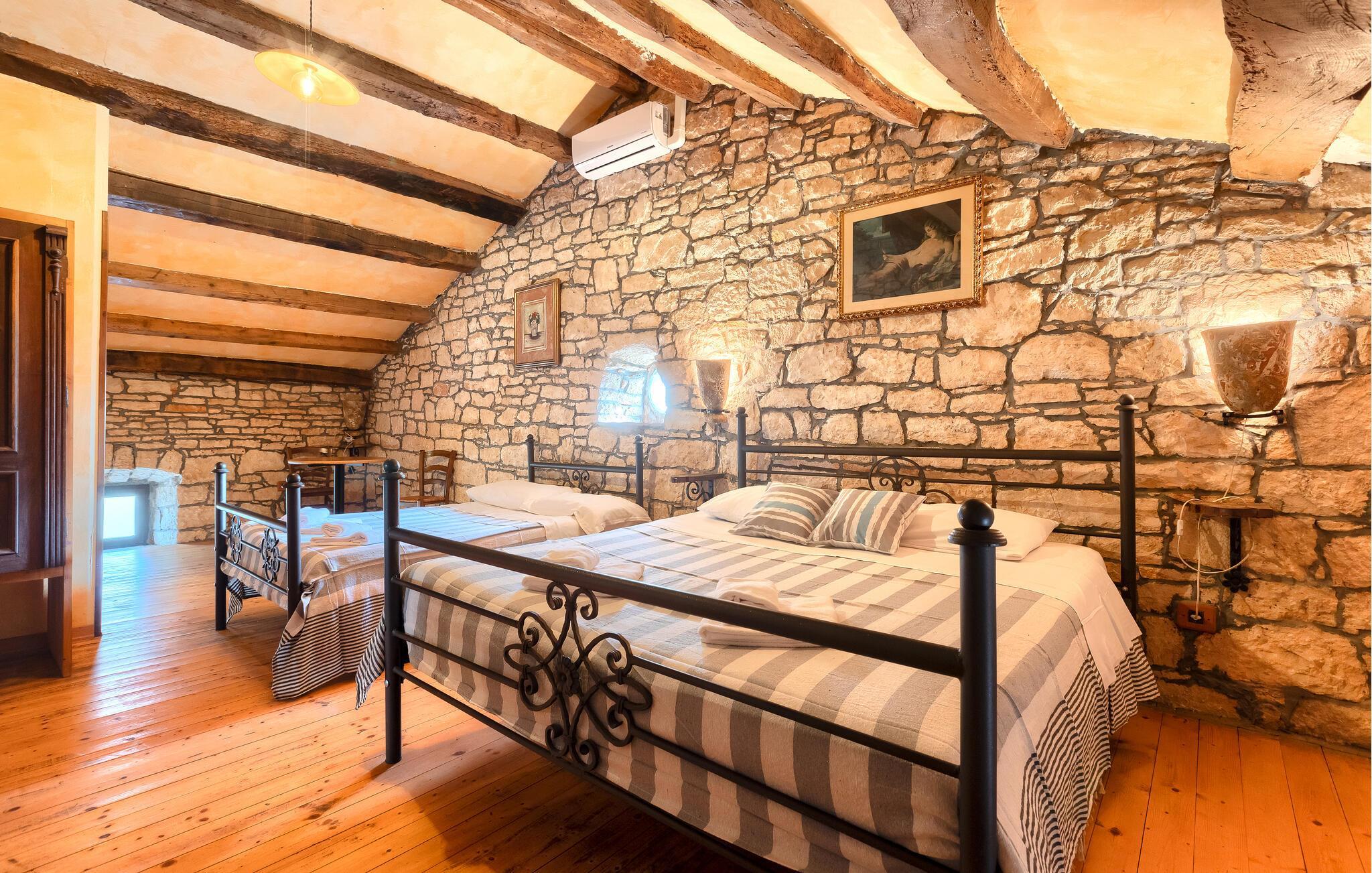 Mit insgesamt 8 Schlafzimmern bietet Villa Gigi Platz für bis zu 19 Personen. Das rustikal eingerichtete Wohnzimmer, ein Esszimmer mit professioneller Bar, eine komplett ausgestattete Küche sowie eine Toilette befinden sich im Erdgeschoss der Villa. In jedem Zimmer dieser Villa herrscht eine häusliche Atmosphäre, was Ihren Urlaub noch angenehmer macht. Im ersten Stock befindet sich ein Schlafbereich, der aus 5 Schlafzimmern mit Doppelbett und jeweils privatem Bad besteht. Die restlichen drei Schlafzimmer, zwei mit Doppelbett und jeweils privatem Bad, befinden sich im zweiten Stock. Aus einem der Doppelbettzimmer im zweiten Stock betreten Sie ein Schlafzimmer mit zwei Einzelbetten, perfekt für Familie mit Kindern. Diese zwei Zimmer teilen sich ein ensuite Badezimmer.