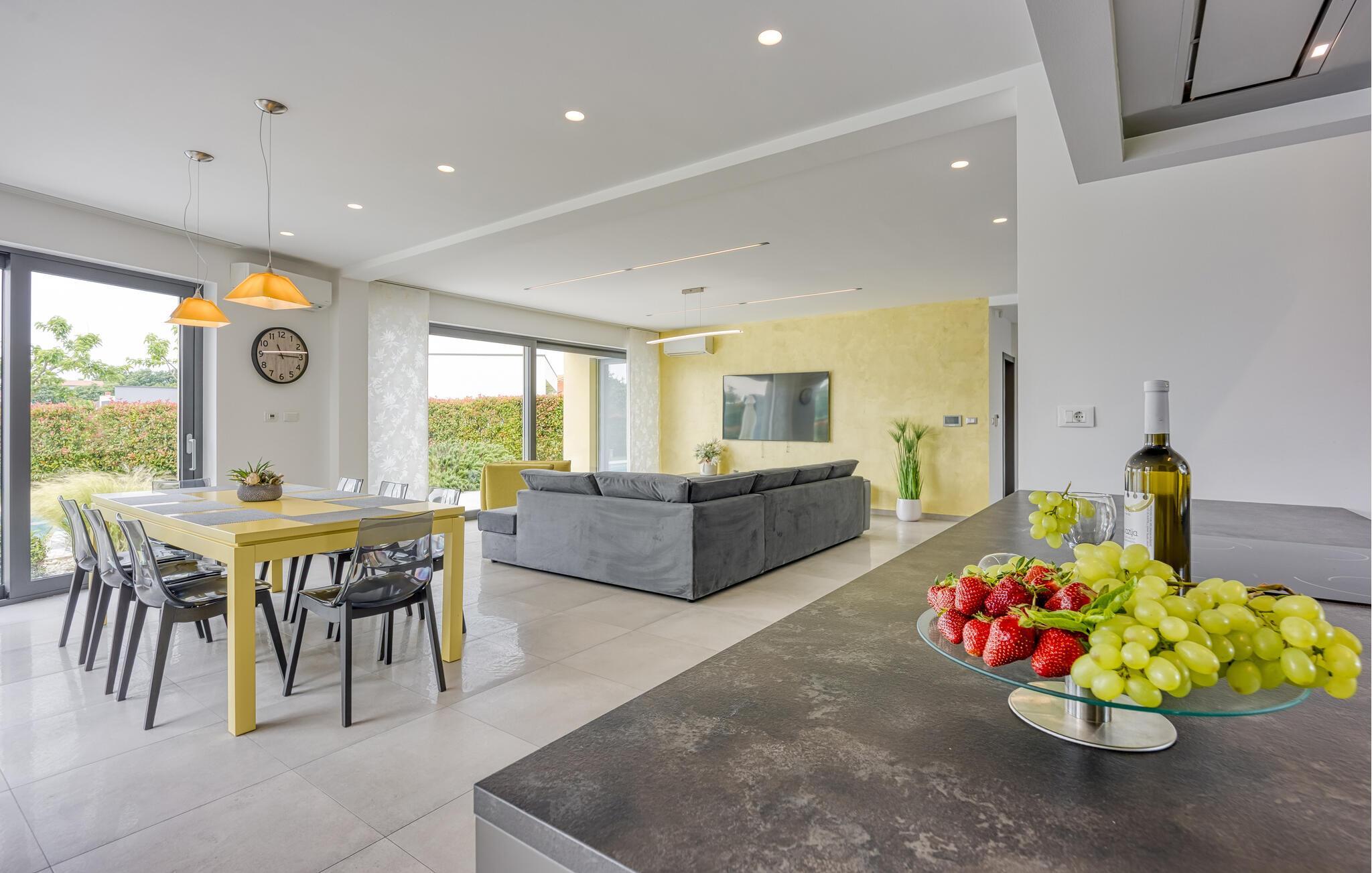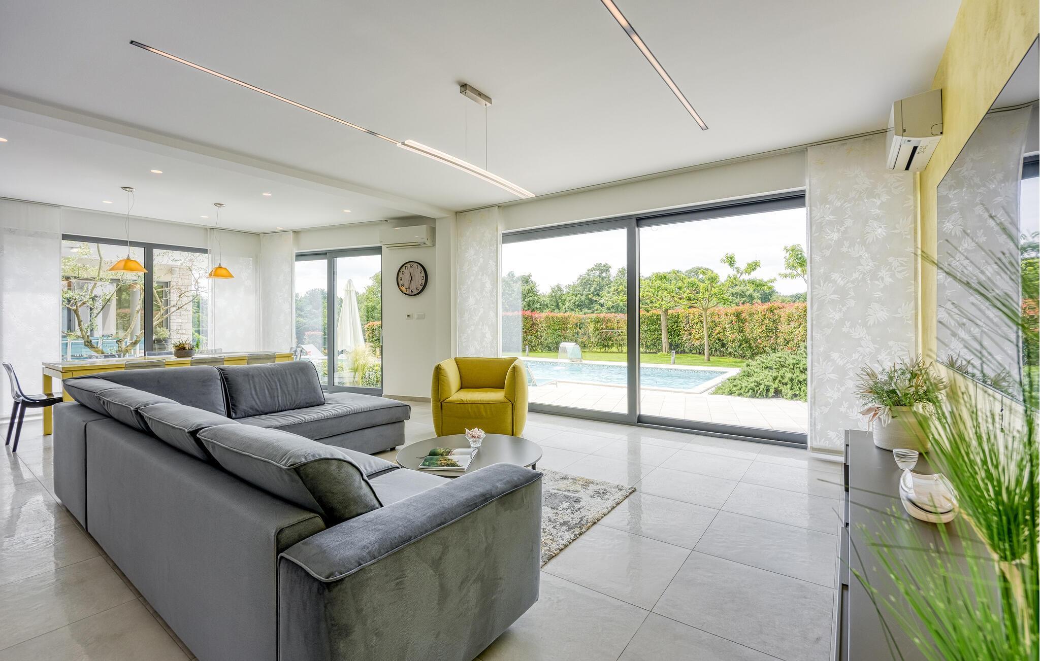 Mit ihrer Lage am Rande des idyllischen historischen Dörfchens Kringa, inmitten von waldreichen Hügeln der bildschönen Landschaft Istriens bietet diese Luxus-Villa einen traumhaften Zufluchtsort für diejenigen, die eine friedliche, naturbelassene, dennoch interessante Umgebung in großem Komfort genießen wollen. Ihr modernes Design blendet harmonisch in die umgebende Natur ein, mit klaren, minimalistischen Linien und bodenhohen Glastüren, die eine Fülle an warmem istrischem Licht hineinbringen. Die einfachen, sanften Farben und Texturen der erstklassigen Einrichtung schaffen eine warme und angenehme Atmosphäre in den vier Schlafzimmern mit modernen Ensuite-Bädern, sowie im wunderschönen geräumigen Wohnbereich, den idealen Sammelplatz für die ganze Gesellschaft. Im offenen Layout zum Wohnzimmer ist eine komplett ausgestattete Küche mit Essbereich, die auf eine beschattete Terrasse hinausführen mit einem weiteren Esstisch im Freien, sowie einer modernen Sommerküche, mit Aussicht auf den wundervollen großen Rasengarten, welcher den attraktiven Poolbereich umgibt. Ihre Kleinen werden in ihrem ganz eigenen Spielplatz im Freien genießen. Villa Speranza liegt in einer ruhigen, natürlichen Umgebung uns ist daher keineswegs als Partyhaus geeignet. Jugendgruppen sind nicht erlaubt.Die Wahrzeichen dieser bezaubernden Region, sind der zweifelsohne beste istrische Prosciutto, die authentischen Trockenmauern, aber auch die intrigierende alte Geschichte und Tradition reich an lokalen Legenden und Geheimnissen, welche zu entdecken der Mühe wert ist. Die pittoresken, mittelalterlichen Hügelstädtchen, authentische Dörfer, wo Zeit stillgestanden ist, sowie Landschaften der einzigartigen Schönheit sind ideal für Aussichtsfahrten, Radtouren und Wandern. Hervorragende traditionelle Küche, natives Olivenöl und erstklassige Muscat, Malvasia und Teran Trauben für welche diese Region weltbekannt ist, fügen die letzten Zutaten zu einem unvergesslichen Urlaub hinzu. Und wenn Sie in der Stimmung für etwas Anderes sind, sind die kristallklare Adria mit ihren wunderschönen Stränden, sowie die beliebten touristischen Hotspots nur eine kurze Autofahrt entfernt.