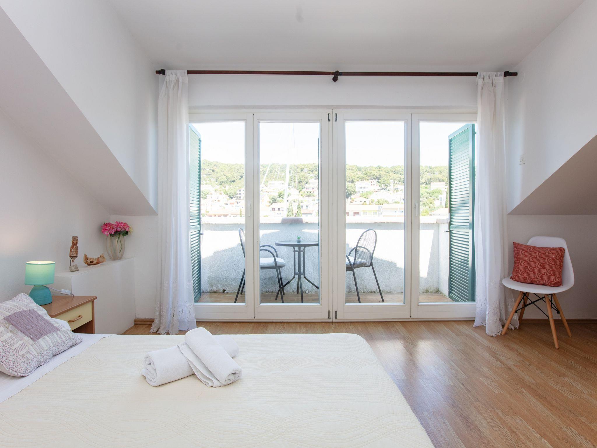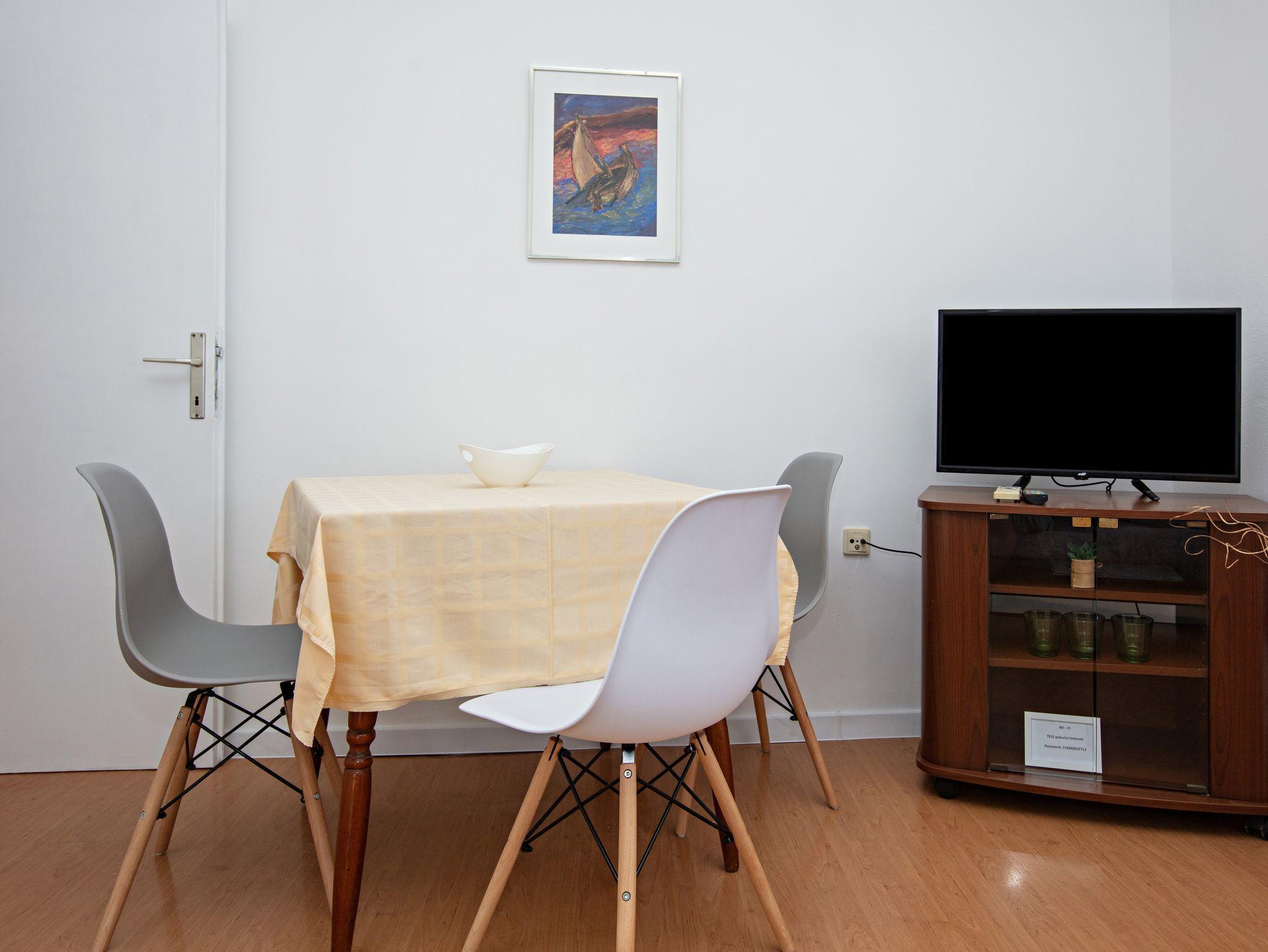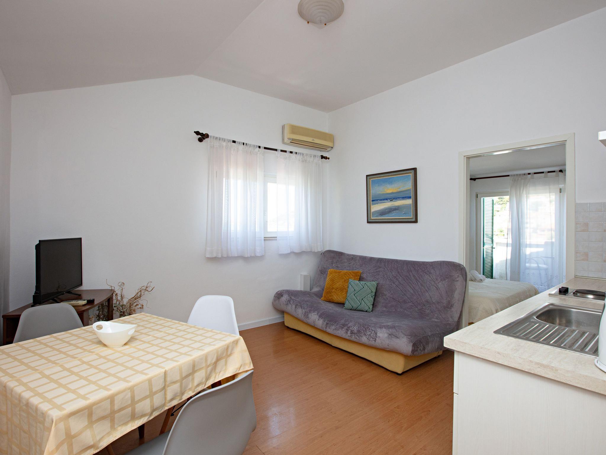 Ferienwohnung bietet Platz für 3 Gäste. Die Betten sind in Schlafzimmern, die es 1 gibt, und in Wohnzimmer, innerhalb einer Gesamtfläche von 34m2, angeordnet. Die Gäste haben einen eigenen Balkon zur Verfügung, auf der sie in warmen Sommernächten genießen können. Das Apartment bietet Meerblick. Es ist erlaubt, Speisen auf dem Gemeinschafts-Grill vorzubereiten. In der Unterkunftseinheit besteht die Möglichkeit des Mitbringens von Haustieren gegen Aufpreis. IM PREIS INBEGRIFFEN: Kurtaxe, Endreinigung, Klimatisierung, Internet, Kinderbett, Föhn. VERBINDLICHE ZUSÄTZLICHE KOSTEN: Aufzahlung für Kurzaufenthalte (prozentualer Zuschlag pro Nächtigungsanzahl: 30% - 1, 20% - 2, 10% - 3). UNVERBINDLICHE ZUSÄTZLICHE KOSTEN: Haustiere (5,00 € pro Nacht). Die Verfügbarkeit zusätzlicher Dienstleistungen in Ihrem reservierten Termin und die Preise derselben (falls nicht aufgeführt) müssen im Voraus überprüft werden. Zusätzliche Dienstleistungen die in der Zahlungsaufforderung nicht aufgeführt sind werden direkt beim Vermieter bezahlt, angenommen der Gast nutzt auch diese.