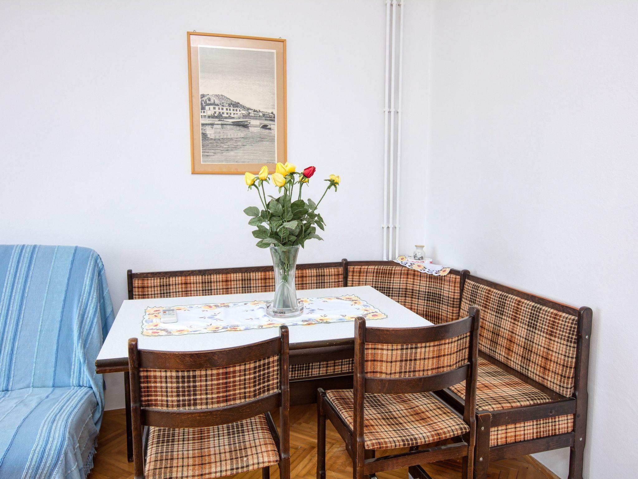Studio bietet Platz für 3 Gäste. Die Betten sind in Schlafzimmern, die es 1 gibt, und in Wohnzimmer, innerhalb einer Gesamtfläche von 28m2, angeordnet. Die Gäste haben einen eigenen Balkon zur Verfügung, auf der sie in warmen Sommernächten genießen können. Das Studio-Apartment bietet Meerblick. Es ist erlaubt, Speisen auf dem Gemeinschafts-Grill vorzubereiten. In der Unterkunftseinheit besteht die Möglichkeit des Mitbringens von Haustieren gegen Aufpreis. IM PREIS INBEGRIFFEN: Kurtaxe, Endreinigung, Klimatisierung, Parkplatz, Internet, Wäschewaschen, Bügeleisen, Bügelbrett, Föhn. VERBINDLICHE ZUSÄTZLICHE KOSTEN: Aufzahlung für Kurzaufenthalte (prozentualer Zuschlag pro Nächtigungsanzahl: 30% - 1, 20% - 2, 10% - 3). UNVERBINDLICHE ZUSÄTZLICHE KOSTEN: Haustiere (5,00 € pro Nacht), Zusatzbett (10,00 € pro Nacht). Die Verfügbarkeit zusätzlicher Dienstleistungen in Ihrem reservierten Termin und die Preise derselben (falls nicht aufgeführt) müssen im Voraus überprüft werden. Zusätzliche Dienstleistungen die in der Zahlungsaufforderung nicht aufgeführt sind werden direkt beim Vermieter bezahlt, angenommen der Gast nutzt auch diese.