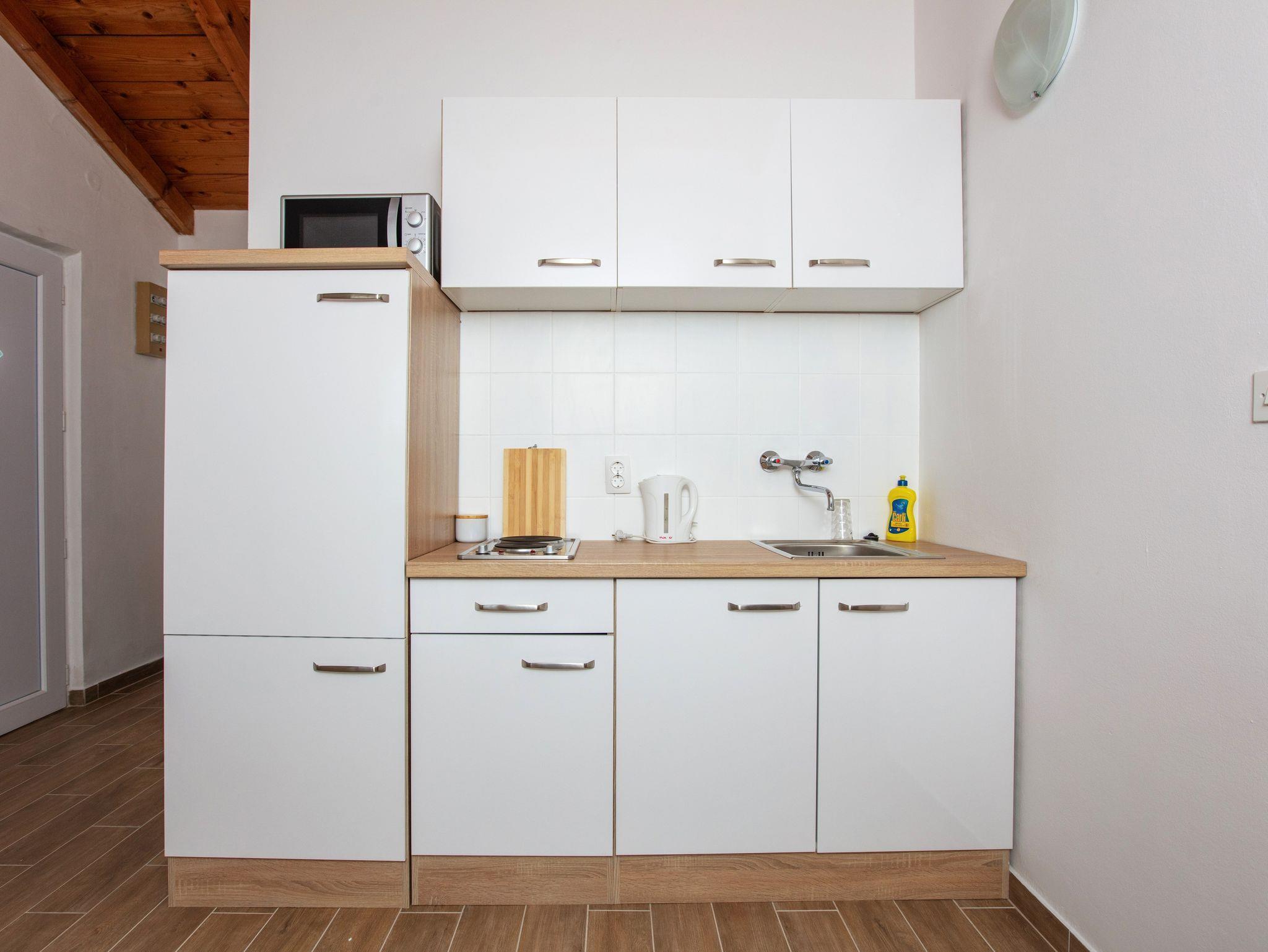 Ferienwohnung bietet Platz für 2 Gäste. Die Betten sind in Schlafzimmern, die es 1 gibt, innerhalb einer Gesamtfläche von 23m2, angeordnet. Die Gäste haben einen eigenen Balkon zur Verfügung, auf der sie in warmen Sommernächten genießen können. Das Apartment bietet Meerblick. Es ist erlaubt, Speisen auf dem Gemeinschafts-Grill vorzubereiten. In der Unterkunftseinheit besteht die Möglichkeit des Mitbringens von Haustieren gegen Aufpreis. IM PREIS INBEGRIFFEN: Kurtaxe, Endreinigung, Klimatisierung, Internet, Kinderbett, Föhn. VERBINDLICHE ZUSÄTZLICHE KOSTEN: Aufzahlung für Kurzaufenthalte (prozentualer Zuschlag pro Nächtigungsanzahl: 30% - 1, 20% - 2, 10% - 3). UNVERBINDLICHE ZUSÄTZLICHE KOSTEN: Haustiere (5,00 € pro Nacht). Die Verfügbarkeit zusätzlicher Dienstleistungen in Ihrem reservierten Termin und die Preise derselben (falls nicht aufgeführt) müssen im Voraus überprüft werden. Zusätzliche Dienstleistungen die in der Zahlungsaufforderung nicht aufgeführt sind werden direkt beim Vermieter bezahlt, angenommen der Gast nutzt auch diese.