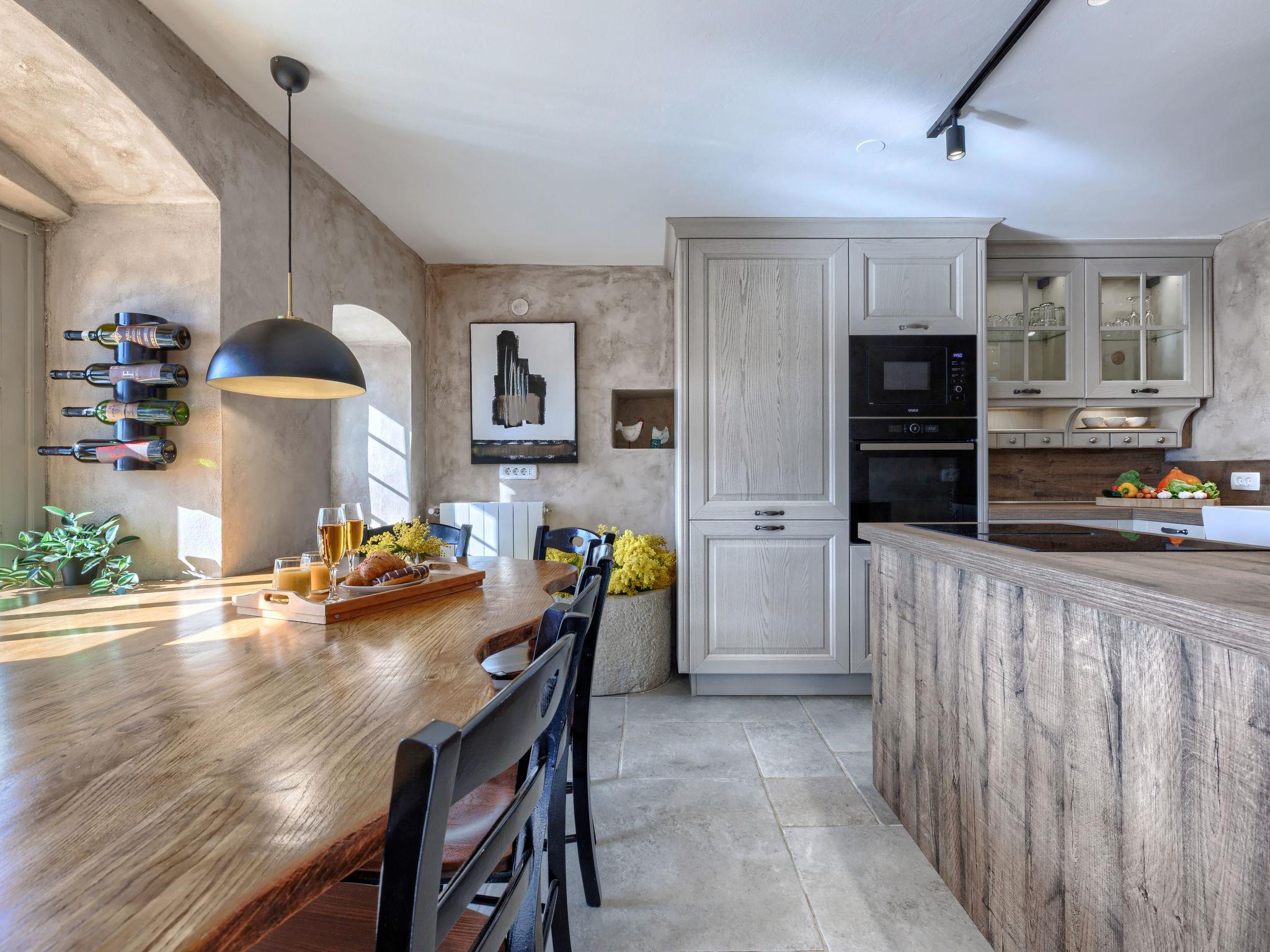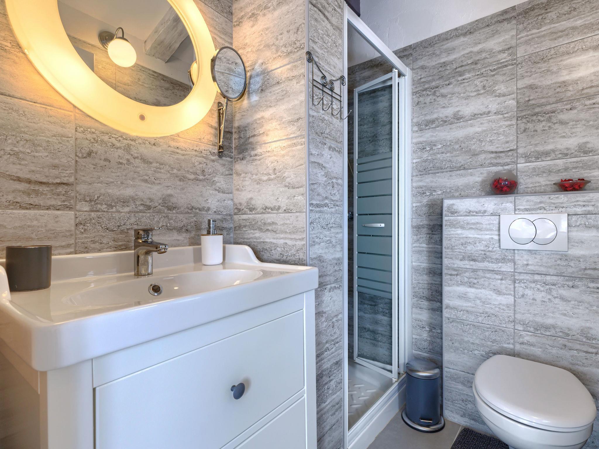 5-room semi-detached house 110 m2 on 2 levels. Stylish furnishings: living/dining room with satellite TV (flat screen), hi-fi system and air conditioning. 1 room with 1 french bed (160 cm, length 200 cm), bath/WC and satellite TV (flat screen), air conditioning. Exit to the terrace. Open kitchen (4 hot plates, oven, dishwasher, microwave, freezer, electric coffee machine). Sep. WC. Upper floor: (spiral staircase), 1 room with 1 french bed (160 cm, length 200 cm), satellite TV (flat screen), air conditioning. Walk-through room with 1 bed (90 cm, length 200 cm), satellite TV (flat screen). Exit to the balcony. 1 room with 1 french bed (160 cm, length 200 cm), shower/WC and satellite TV (flat screen), air conditioning. Shower/WC. Balcony 6 m2, terrace 10 m2, roofed. Terrace furniture, deck chairs. Marvellous view of the sea and the countryside. Facilities: safe, children's high chair, baby cot, hair dryer. Internet (WiFi, free). Maximum 1 pet/ dog allowed.