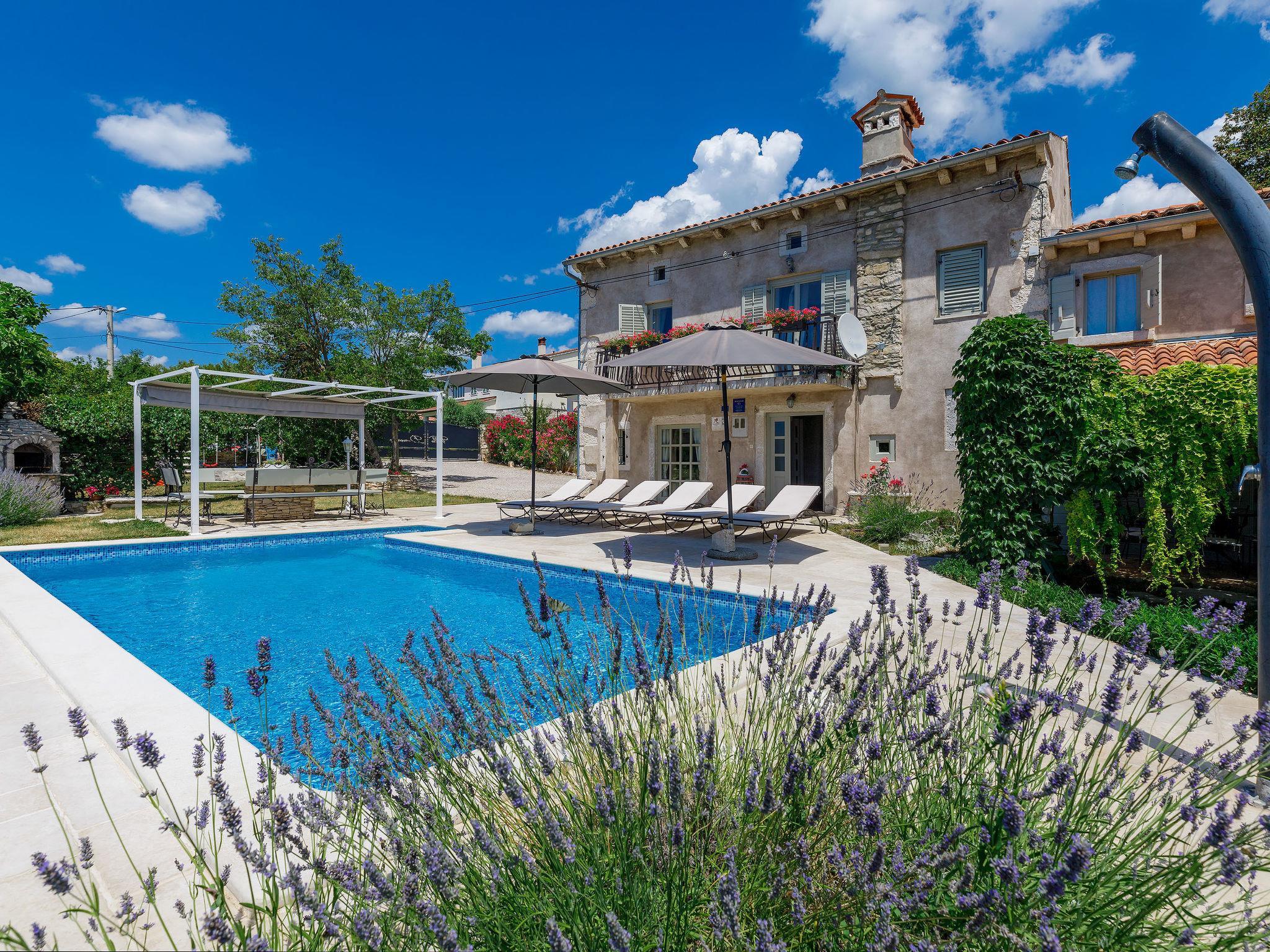Semi-detached house "Villa Domenica", 2 storeys, from the 18th century, renovated. 1.1 km from the centre of Trget, outside the resort, in a quiet, sunny, elevated position, 900 m from the sea, 900 m from the beach, in a cul-de-sac. Private: property 700 m2, garden with wildlife garden, swimming pool angular (8 x 3 m, depth 140 cm, seasonal availability: 11.Apr. - 24.Oct.) with internal staircase. Outdoor shower, terrace (10 m2), garden furniture, barbecue, children's playground (swing). In the house: internet access, washing machine. Parking (for 3 cars) at the house on the premises. Shop 1.1 km, restaurant 600 m, bus stop 6.6 km, pebble beach 900 m. Available: box for dogs (included in the price).