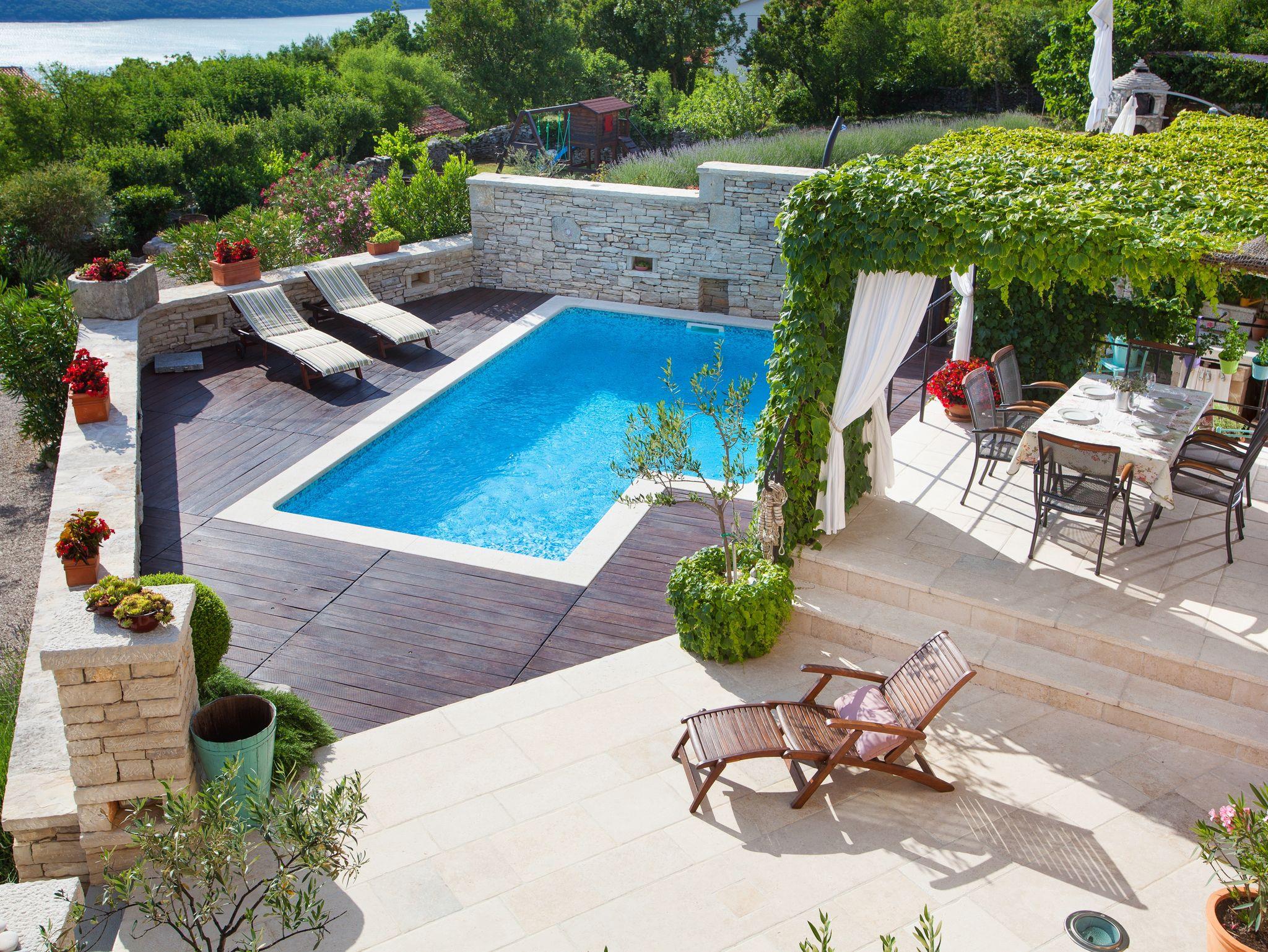 Haus bietet Platz für 6 Gäste. Die Betten sind in Schlafzimmern, die es 3 gibt, innerhalb einer Gesamtfläche von 112m2, angeordnet. Die Gäste haben eine eigene Terrasse zur Verfügung, auf der sie in warmen Sommernächten genießen können. Das Haus bietet Meerblick. Für vollen Genuss und Entspannung gibt es einen privaten Grill für Gäste dieser Unterkunft. Während ihres Aufenthalts können sich Gäste im privaten Schwimmbad entspannen. In der Unterkunftseinheit besteht die Möglichkeit des Mitbringens von Haustieren gegen Aufpreis. In der gebuchten Unterkunftseinheit zahlt man am Ort ein Depositum ( der Preis ist an der Internetseite angeführt ). IM PREIS INBEGRIFFEN: Kurtaxe, Endreinigung, Klimatisierung, Zentralheizung, Pool, Parkplatz, Internet, Bootsanlegeplatz, Fahrrad, Kinderbett, Zusatzbett, Bügeleisen, Bügelbrett, Föhn, tragbarer Grill, Sonnenschirm, 2 Kinderbettchen (im Preis enthalten). VERBINDLICHE ZUSÄTZLICHE KOSTEN: Kaution (300,00 € Einmalzahlung). UNVERBINDLICHE ZUSÄTZLICHE KOSTEN: Boot (70,00 € pro Nacht), Haustiere (15,00 € pro Nacht). Die Verfügbarkeit zusätzlicher Dienstleistungen in Ihrem reservierten Termin und die Preise derselben (falls nicht aufgeführt) müssen im Voraus überprüft werden. Zusätzliche Dienstleistungen die in der Zahlungsaufforderung nicht aufgeführt sind werden direkt beim Vermieter bezahlt, angenommen der Gast nutzt auch diese.