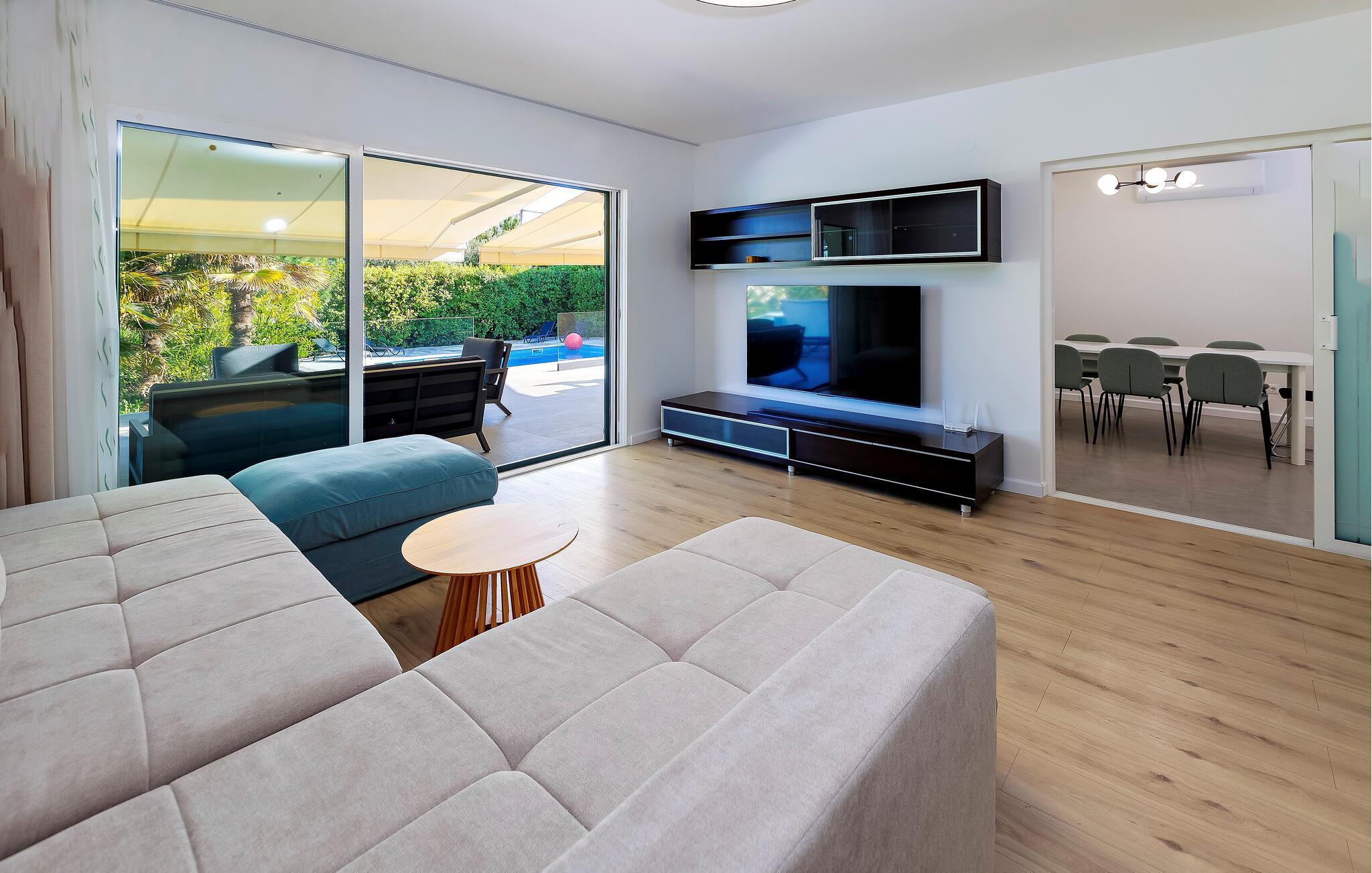 Der gepflegte Außenbereich ist wie geschaffen, um das herrliche Mittelmeerklima in vollen Zügen zu genießen. Erfrischen Sie sich im Pool und lassen Sie auf der Liege die Seele baumeln. Entfachen Sie den Grill und entspannen Sie mit einem erfrischenden Getränk auf den komfortablen Sitzmöglichkeiten im Schatten der Markise.
