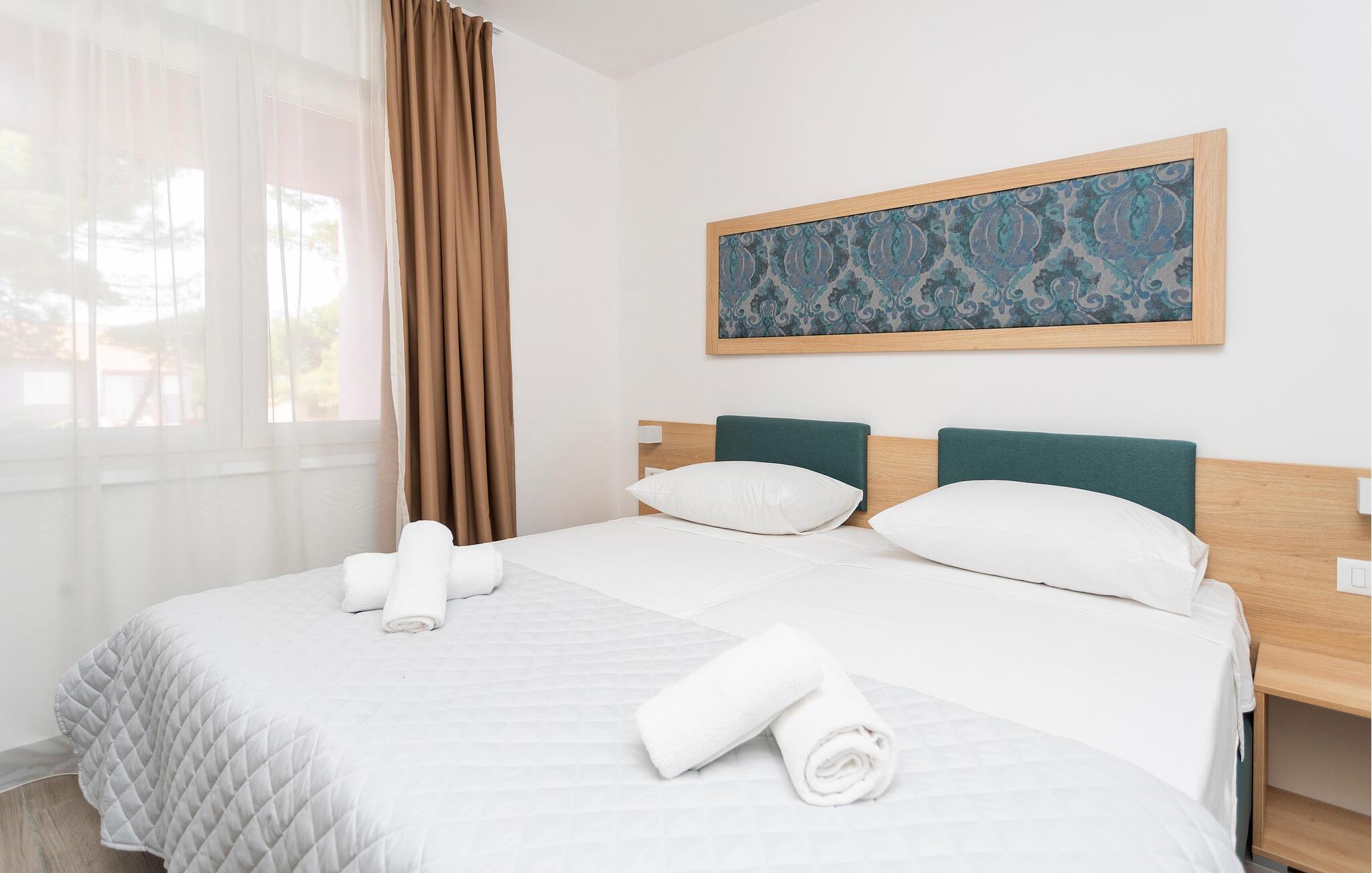 Genießen Sie den Urlaub in dieser strandnahen Ferienwohnung mit Poolzugang.