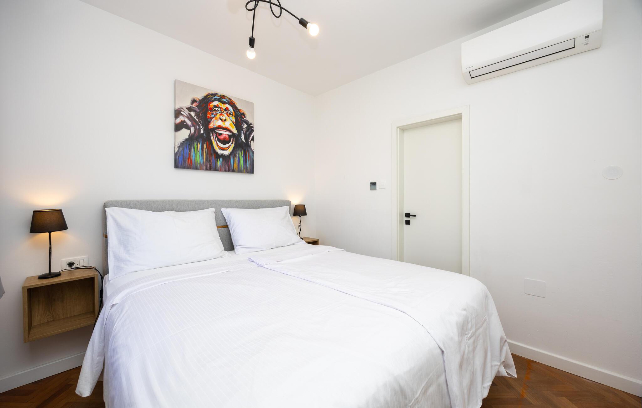Dieses moderne und komfortable Feriendomizil mit Pool befindet sich in exklusiver Lage und ist ganz nah am Yachthafen und den Stränden. Das Haus besteht aus vielen Wohneinheiten, die durch Außentreppen miteinander verbunden sind, weshalb es sich besonders für einen gemeinsamen Urlaub von Freundesgruppen oder Familien eignet. Die niedrigste Deckenhöhe im Dachgeschoss beträgt 120 cm. An der großen, offenen Terrasse befindet sich der beheizte Swimmingpool mit Gegenstromanlage, wo Sie auch an kühleren Tagen das Baden genießen können. In unmittelbarer Nähe befindet sich die Stadtmitte, in der sich viele Restaurants und weitere Geschäfte befinden. In der Nähe des Hauses gibt es einen Segelclub für Segler. In den Städten Trogir und Split werden auch die Wünsche der Anspruchsvollsten erfüllt, unter anderem können Sie die reiche Kultur kennenlernen. Fahrräder, SUP und Kajak stehen Ihnen zur Verfügung, die zusammen mit CDF972 und CDF075 benutzt werden. Frühstück mit Zuzahlung kann vor Ort mit dem Vermieter vereinbart werden.